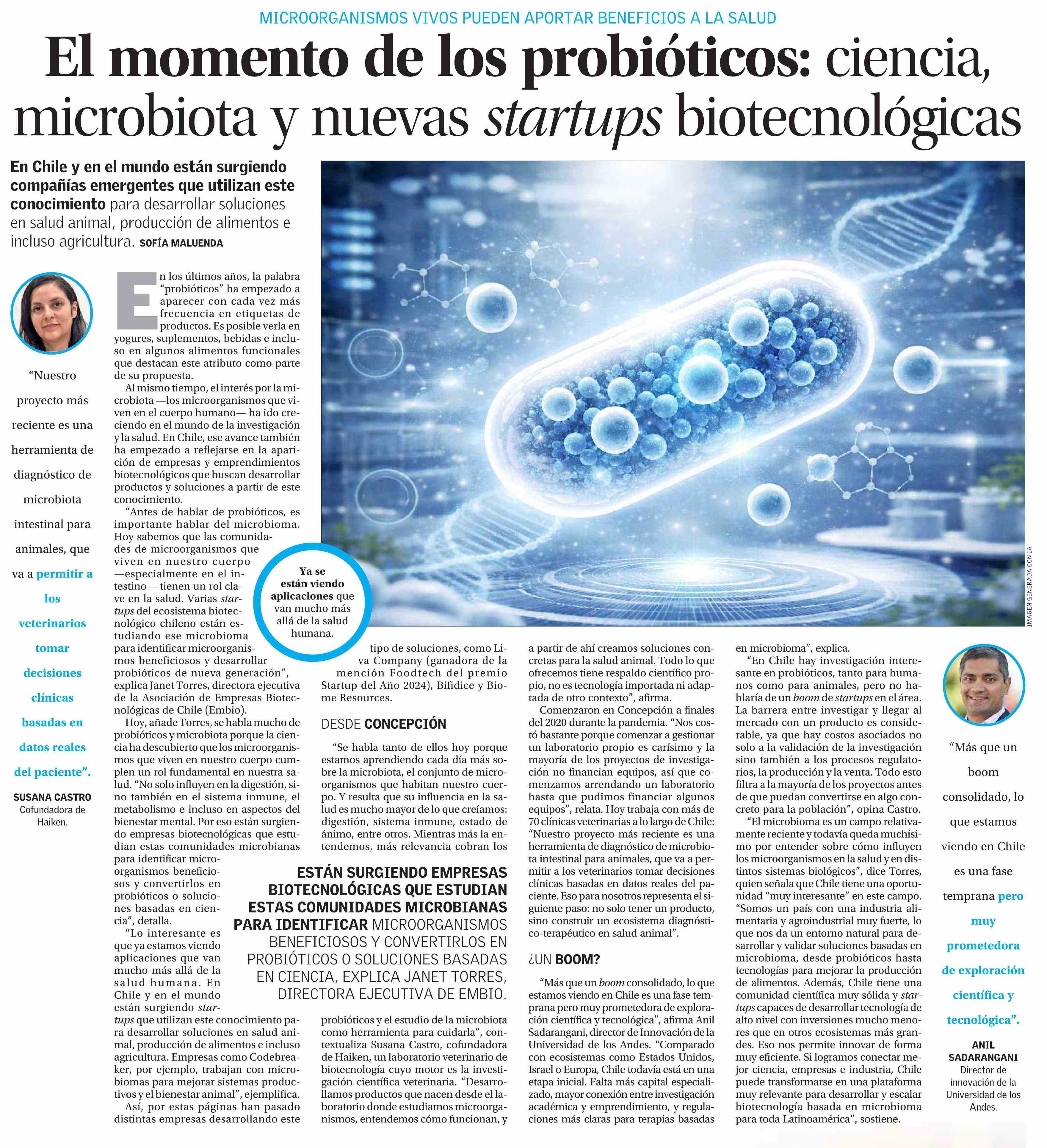 El momento de los probióticos: ciencia, microbiota y nuevas startups biotecnológicas 12-03-2026 El Mercurio |