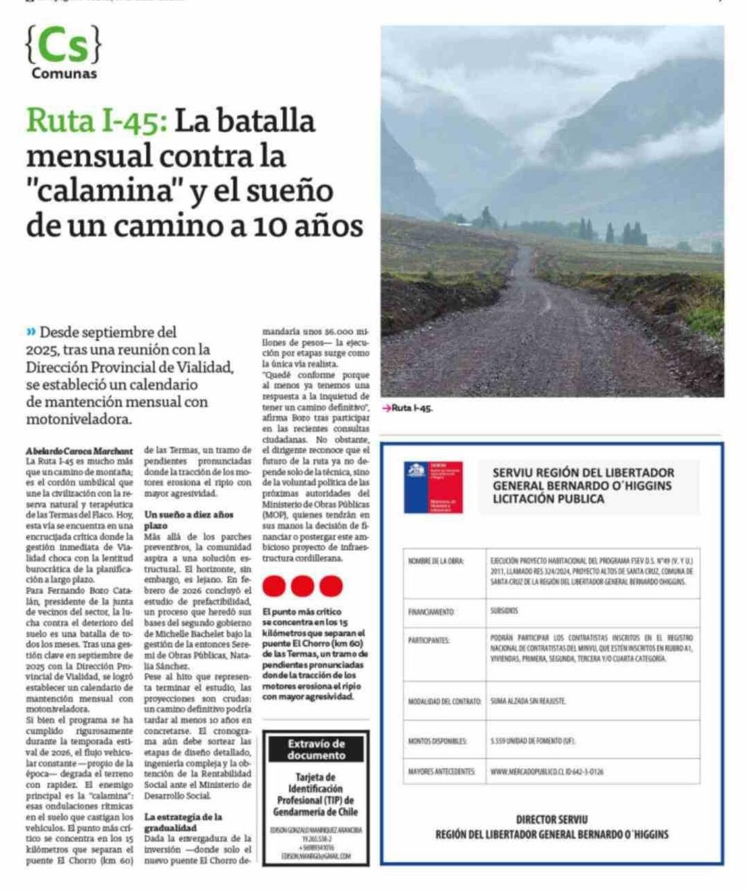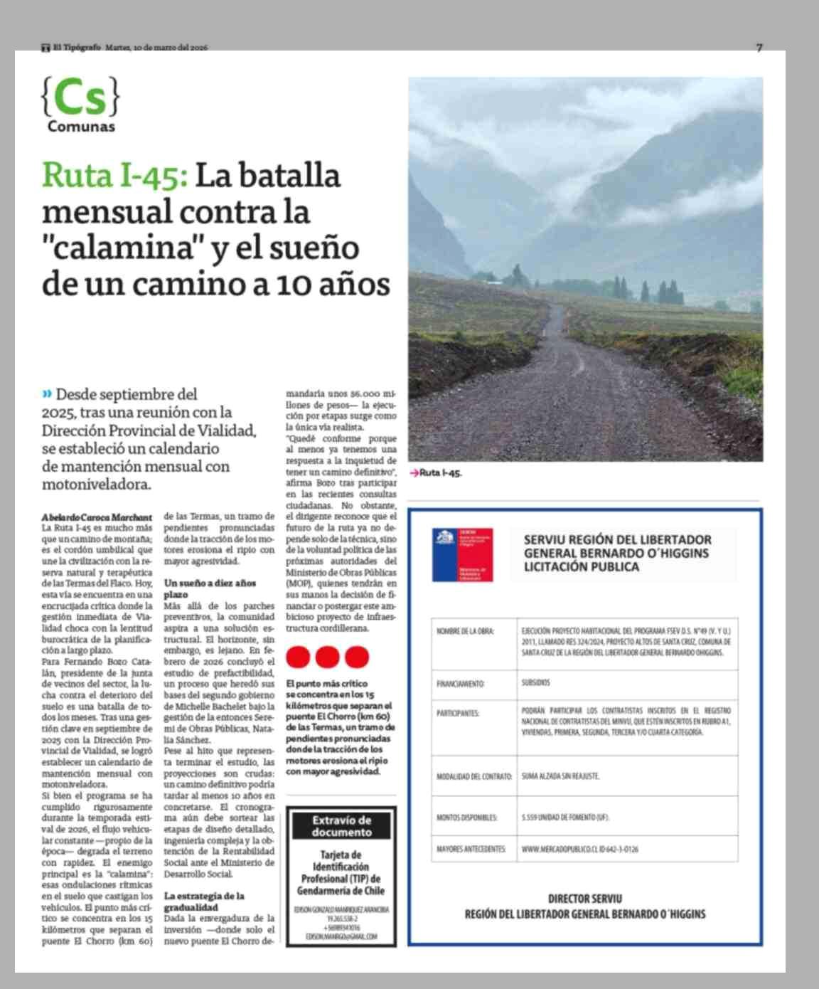 Ruta I-45: La batalla mensual contra la "calamina" y el sueño de un camino a 10 años 10-03-2026 El Tipógrafo |