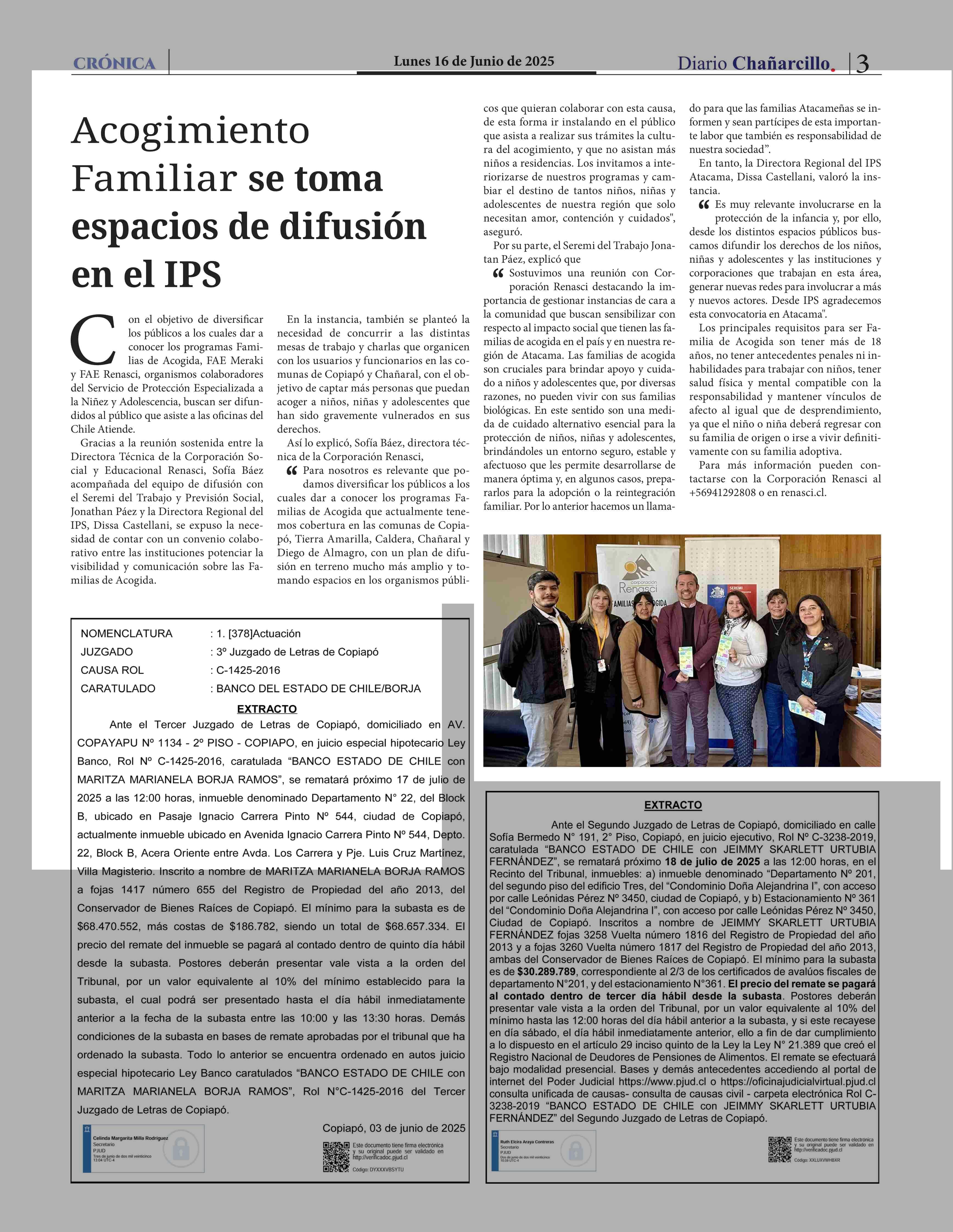 Acogimiento Familiar se toma espacios de difusión en el IPS 16-06-2025 Diario Chañarcillo |