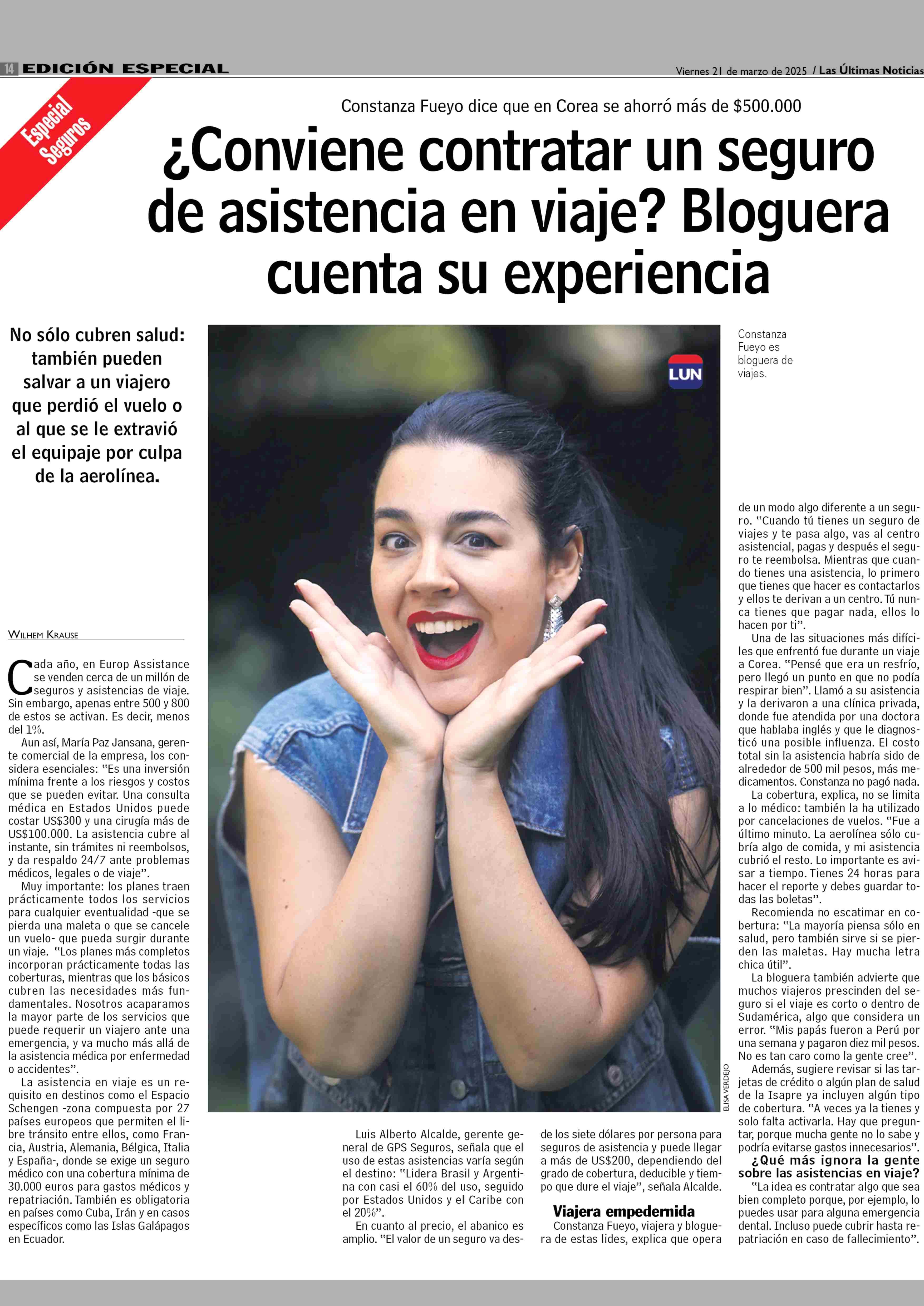 ¿Conviene contratar un seguro de asistencia en viaje? Bloguera cuenta su experiencia 21-03-2025 Las Últimas Noticias |