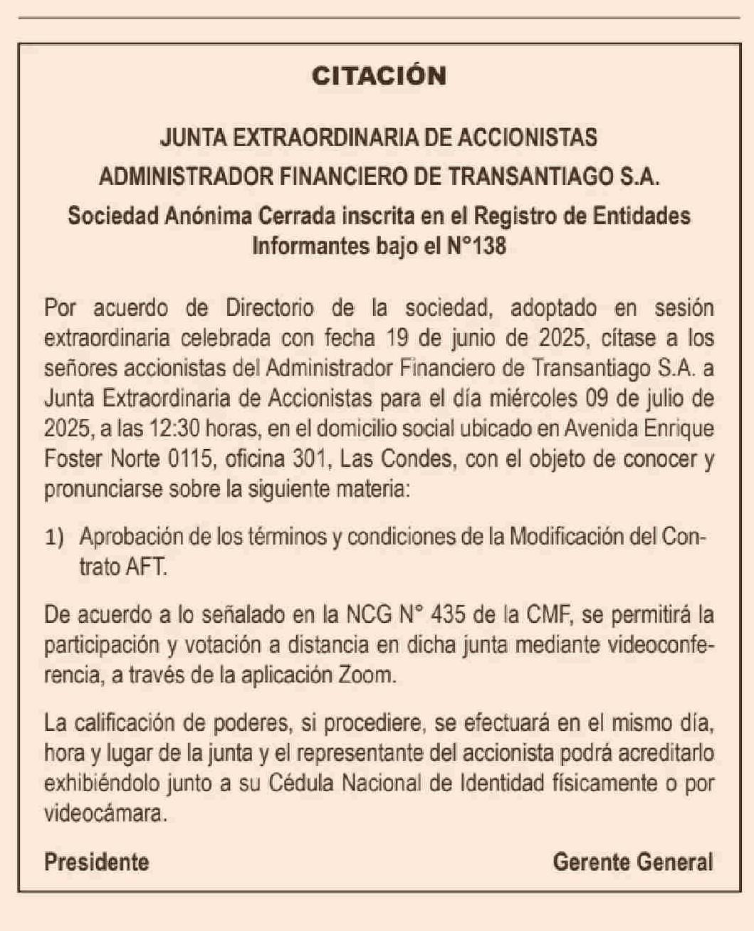 Fecha: 27-06-2025 Sector: Extractos Región: Región Metropolitana de Santiago