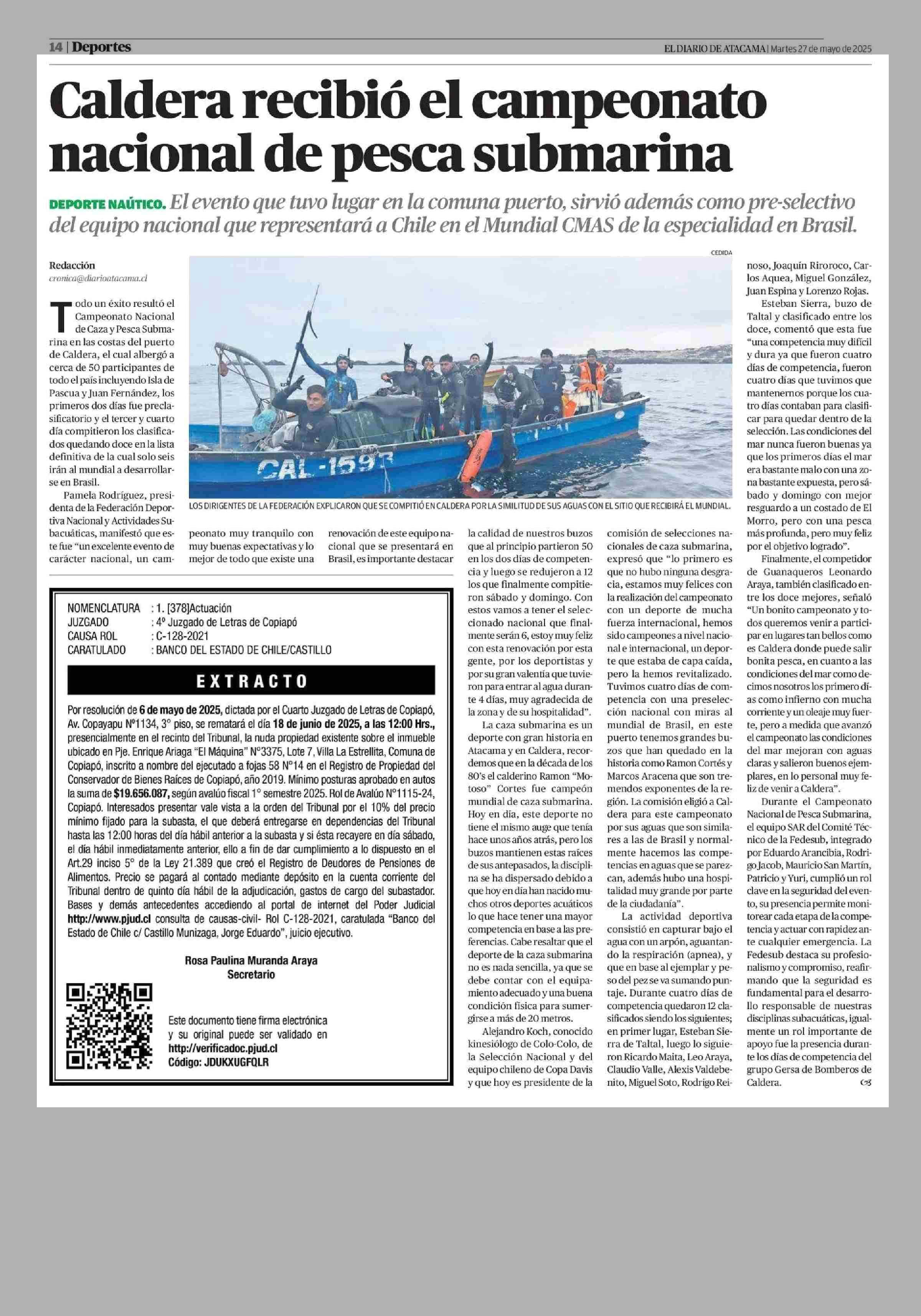 Caldera recibió el campeonato nacional de pesca submarina 27-05-2025 El Diario de Atacama |