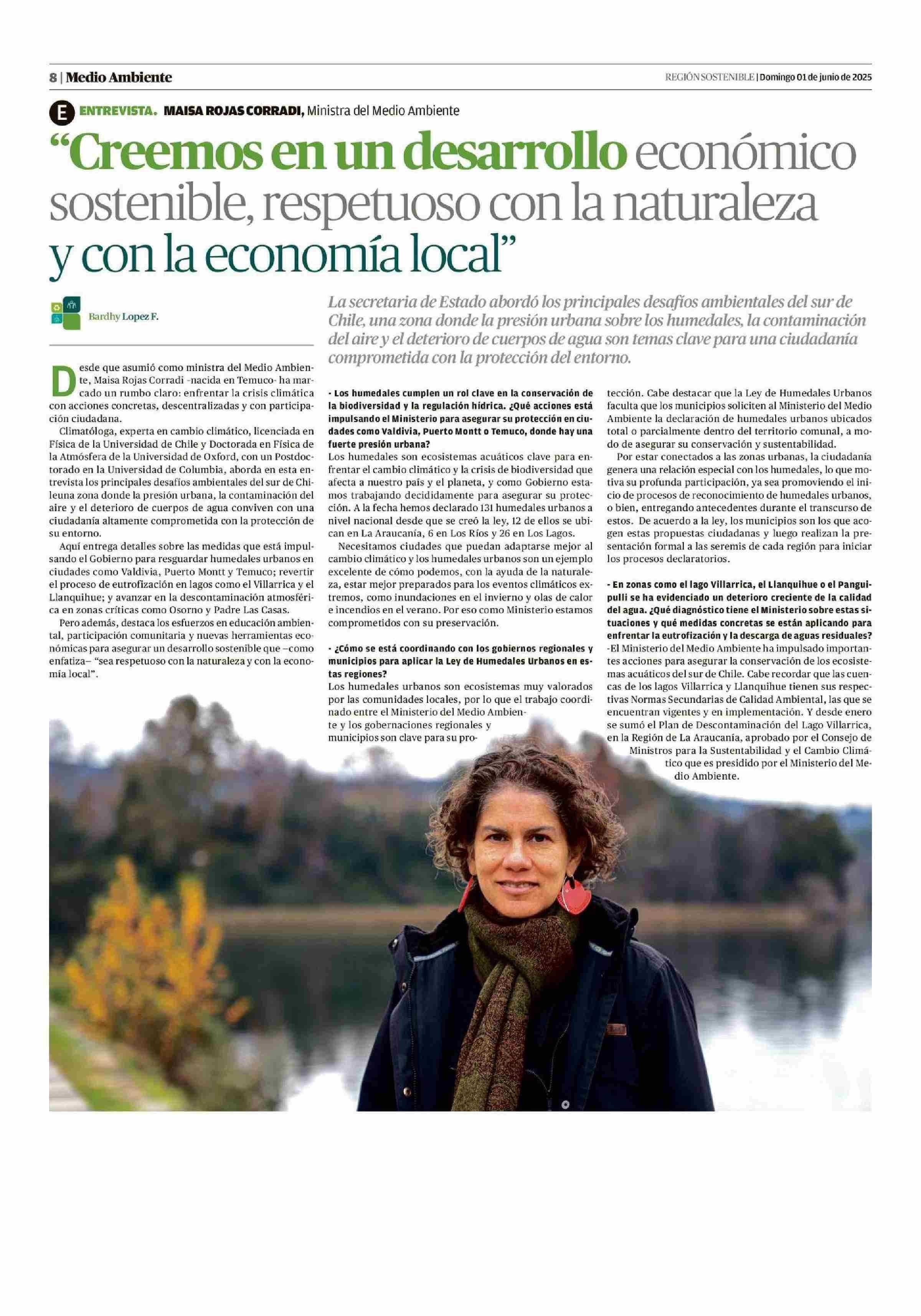 “Creemos en un desarrollo económico sostenible, respetuoso con la naturaleza v con la economía local” 01-06-2025 El Llanquihue |
