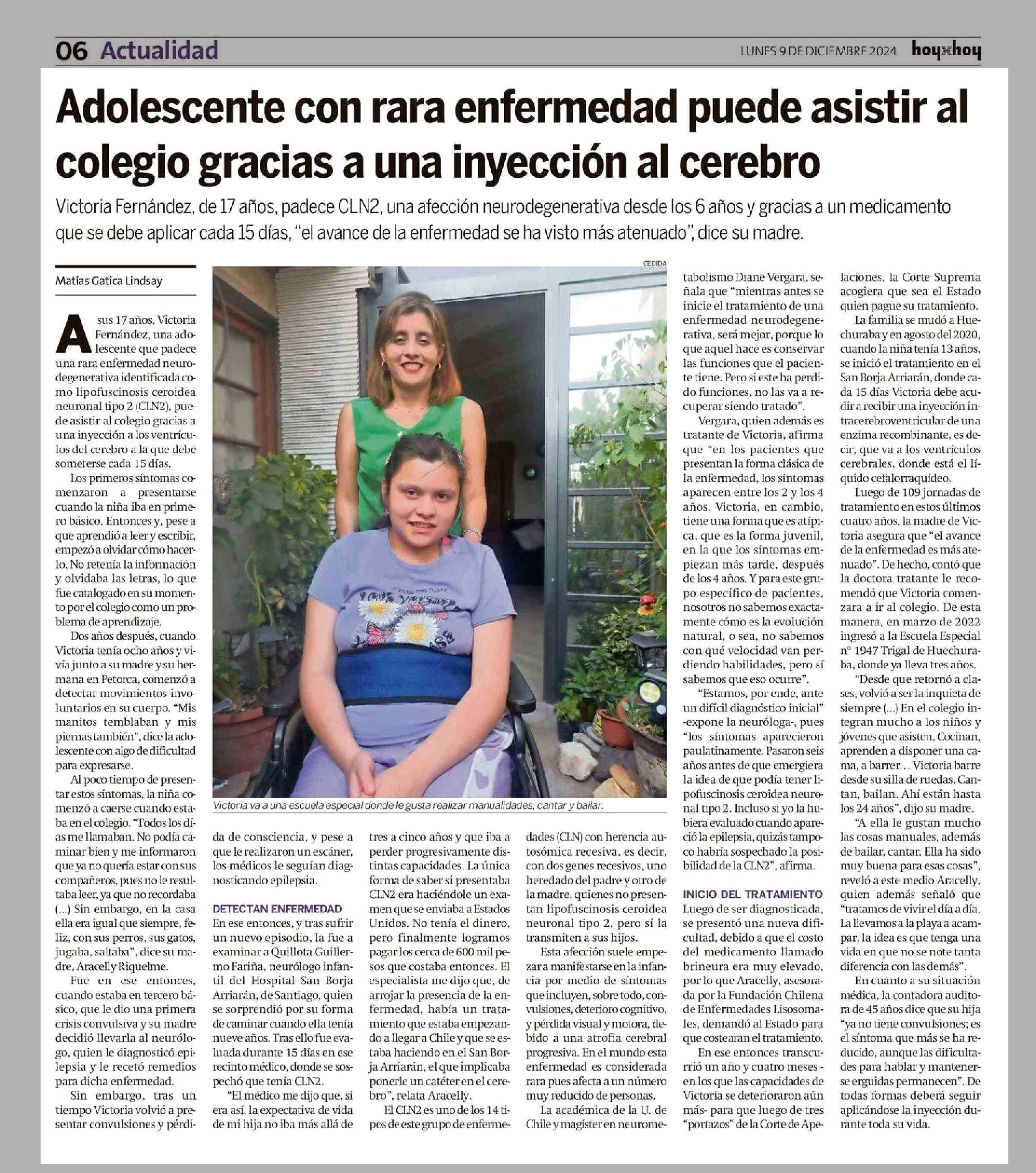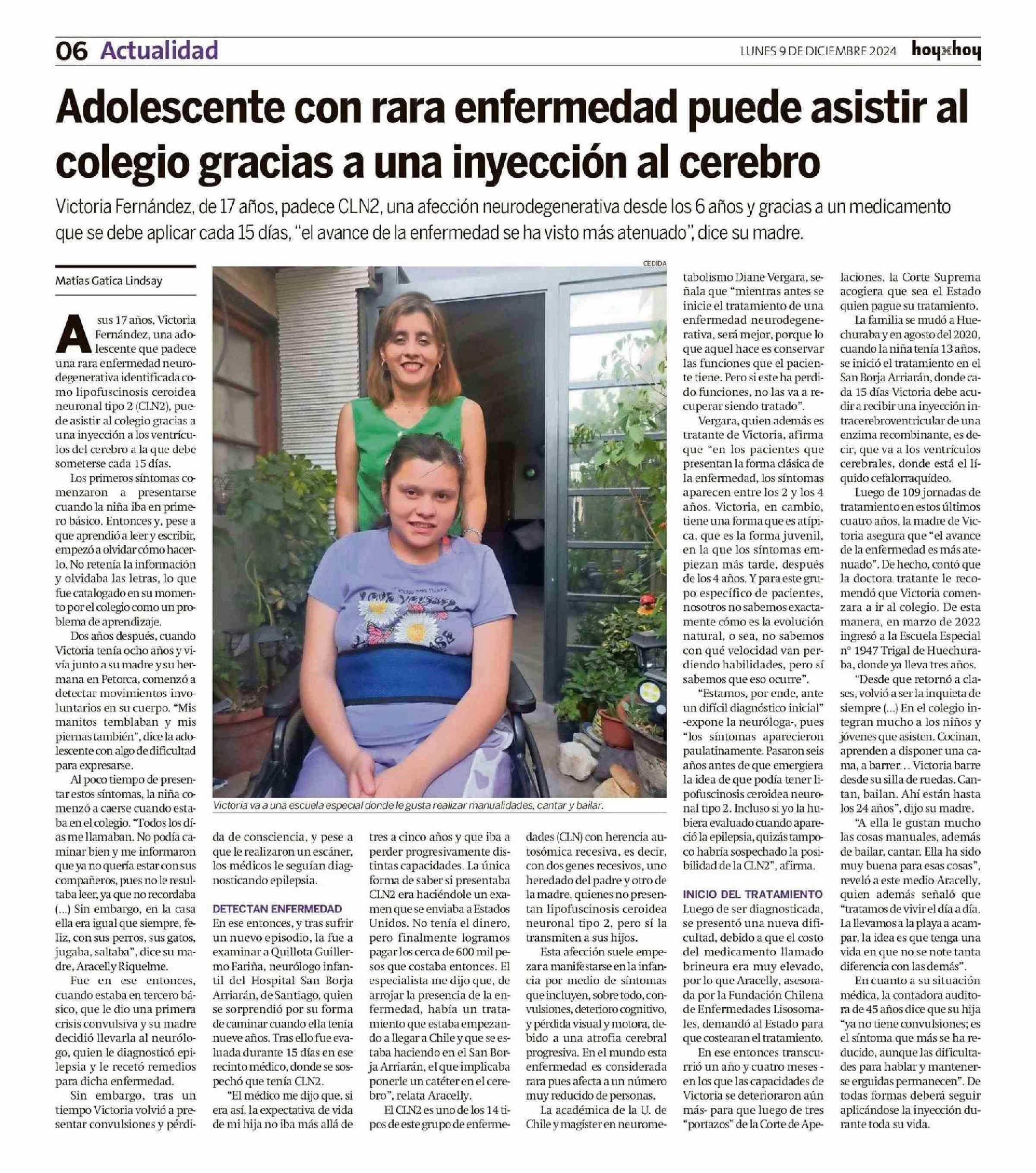 Adolescente con rara enfermedad puede asistir al colegio gracias a una inyección al cerebro 09-12-2024 Hoy x Hoy Concepción |