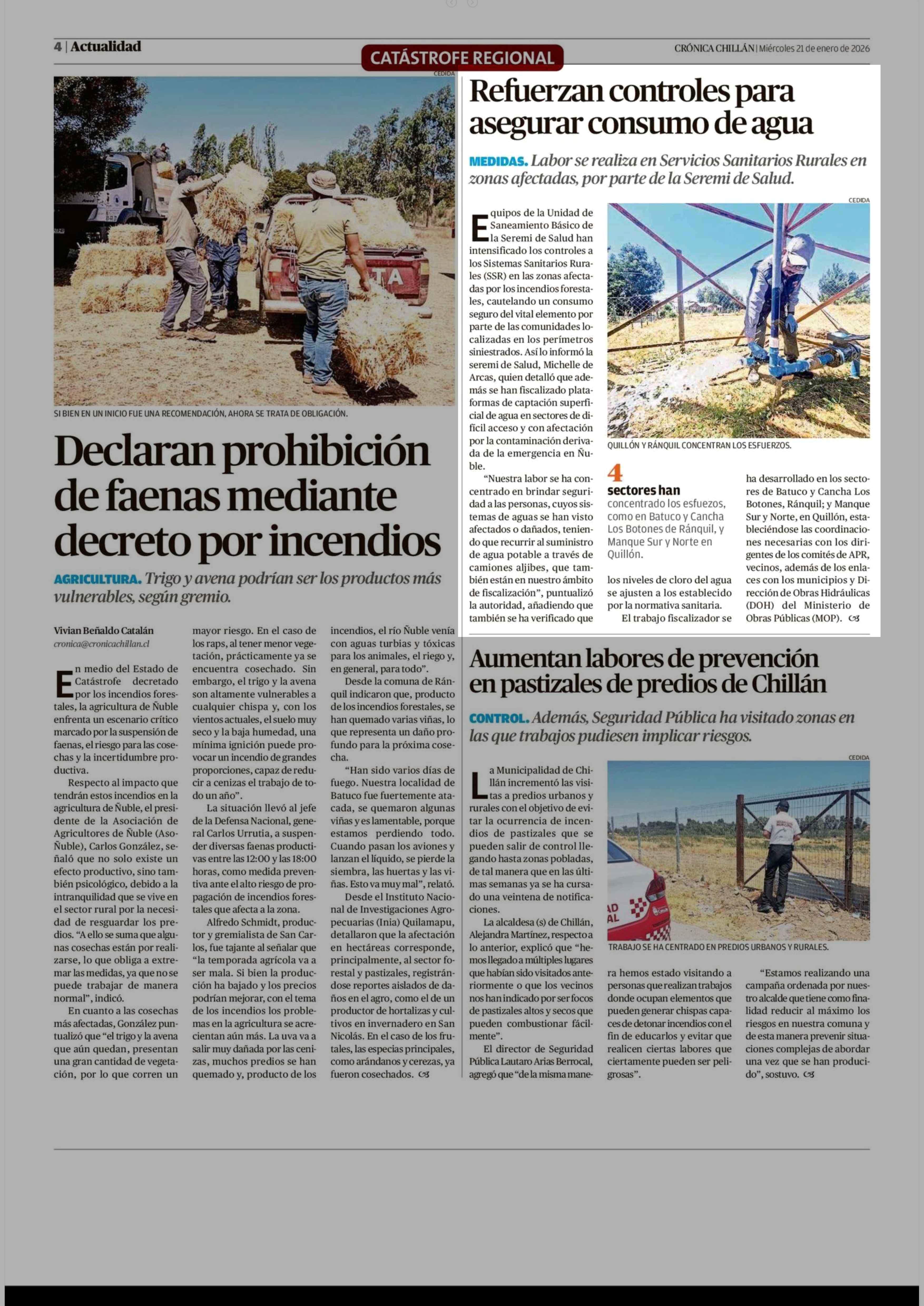 Fecha: 21-01-2026 Sector: Noticia general Región: Región del Ñuble