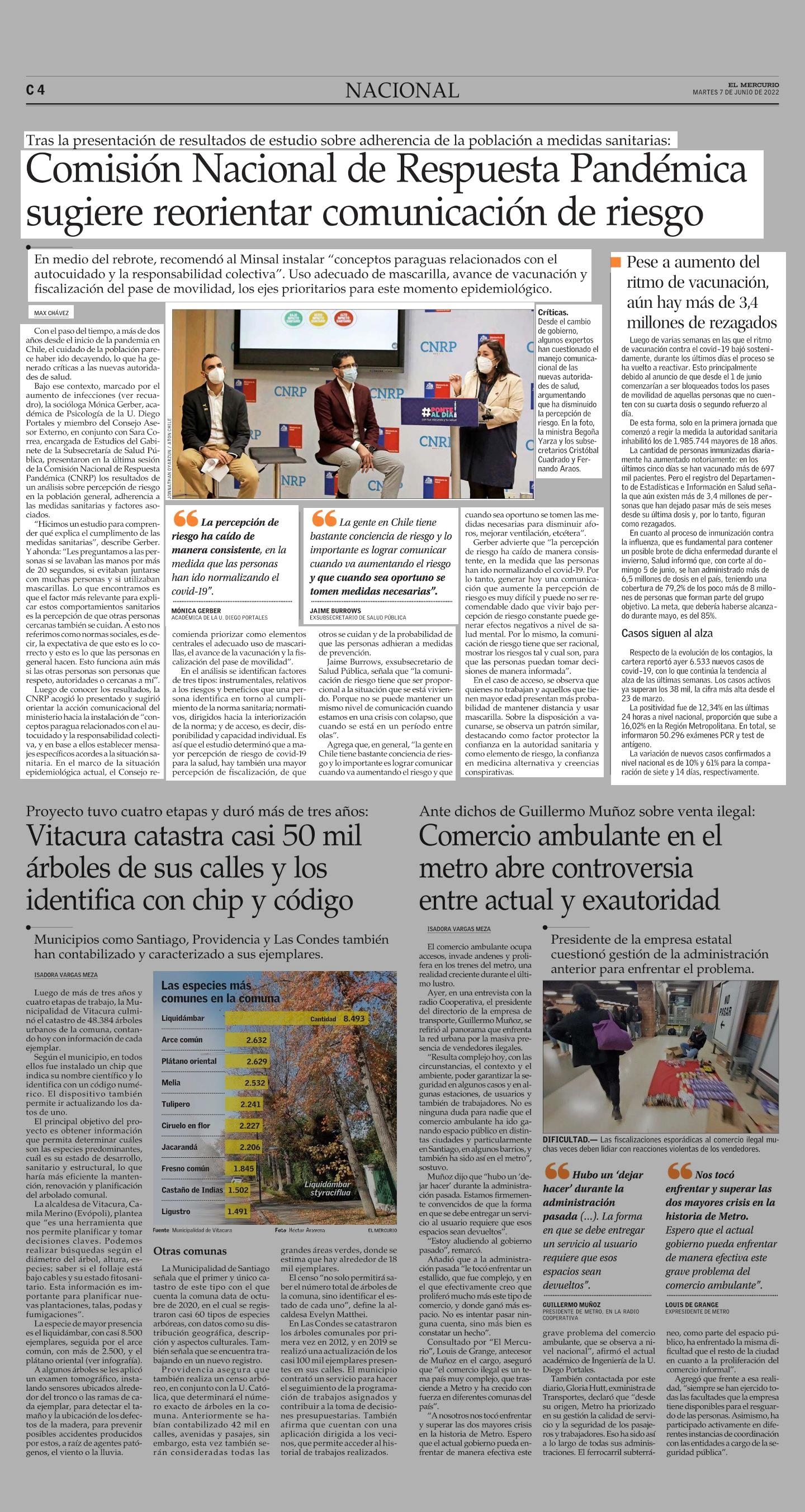 Comisión Nacional de Respuesta Pandémica sugiere reorientar comunicación de riesgo 07-06-2022 El Mercurio |