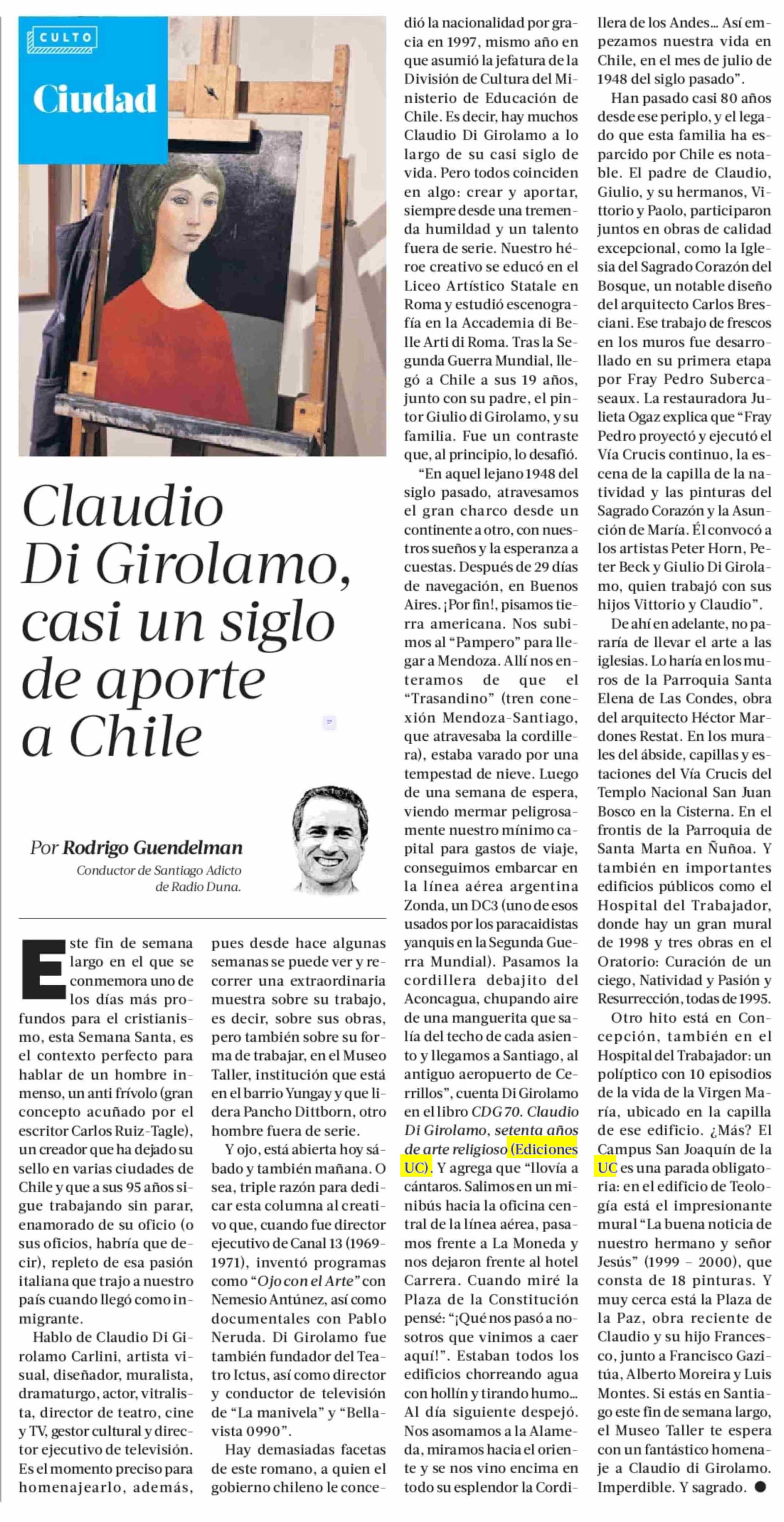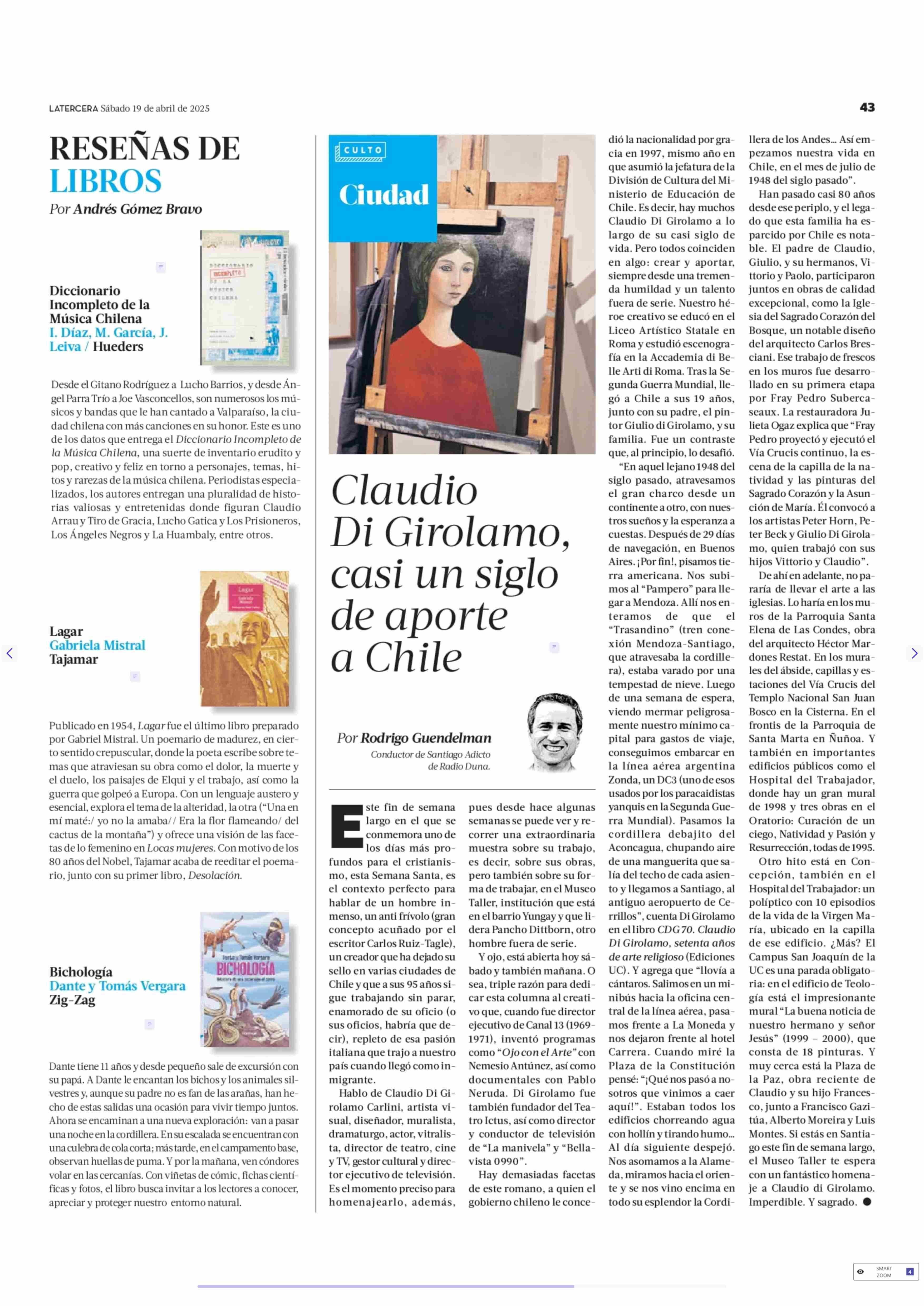 Claudio Di Girolamo, casi un siglo de aporte a Chile 19-04-2025 La Tercera |