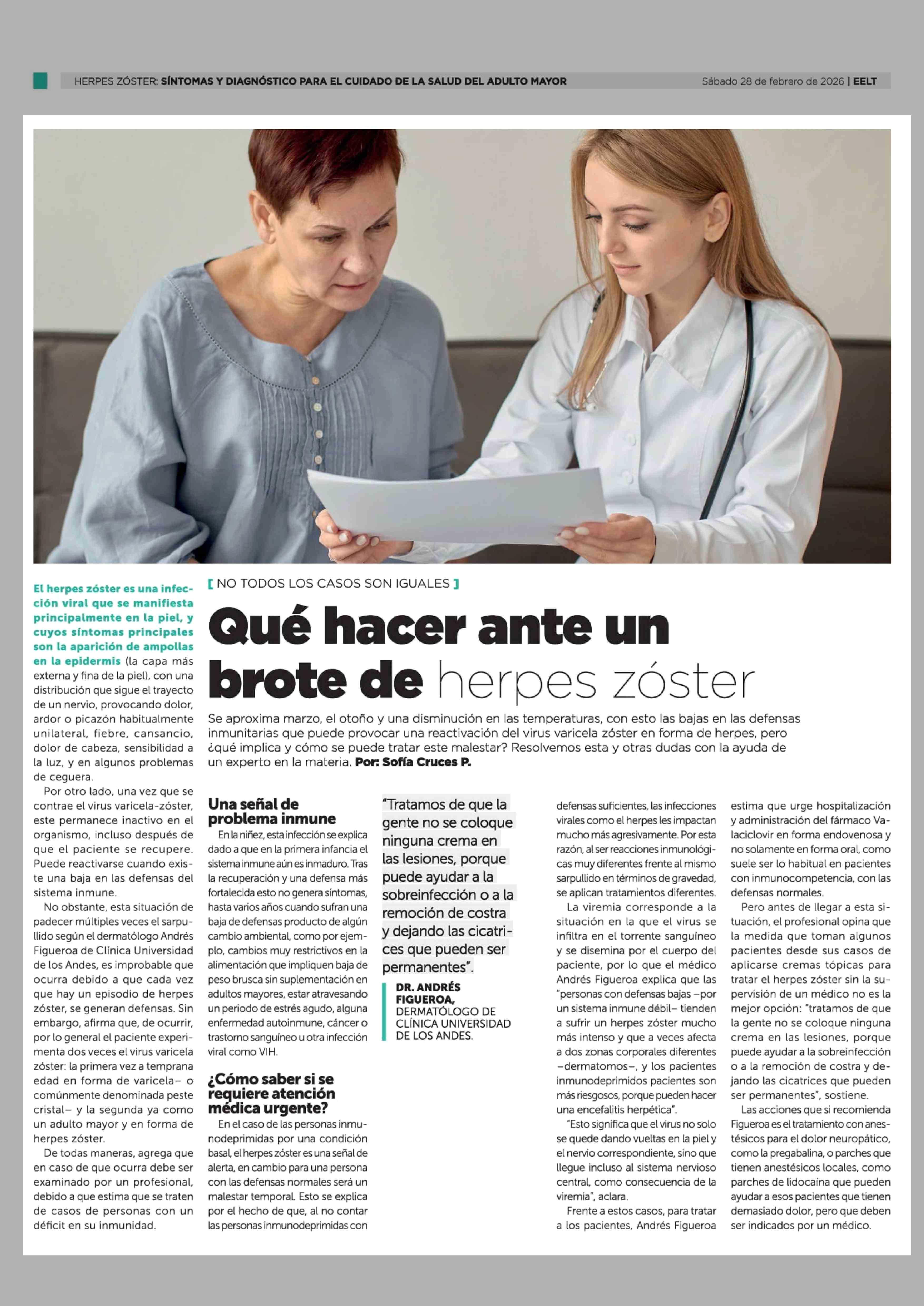 Qué hacer ante un brote de herpes zoster 28-02-2026 La Tercera |