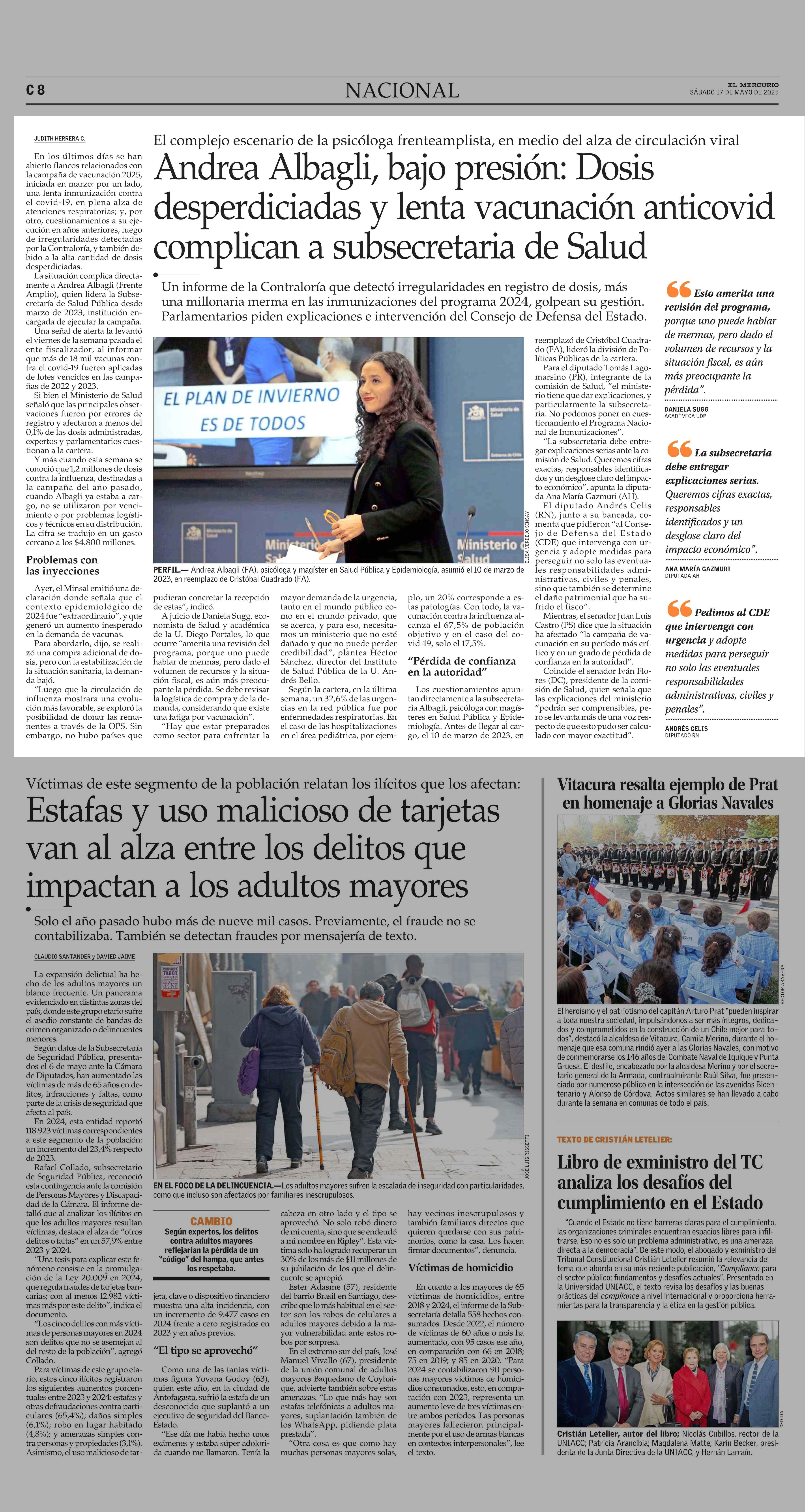 Andrea Albagli, bajo presión: Dosis desperdiciadas y lenta vacunación anticovid complican a subsecretaria de Salud 17-05-2025 El Mercurio |