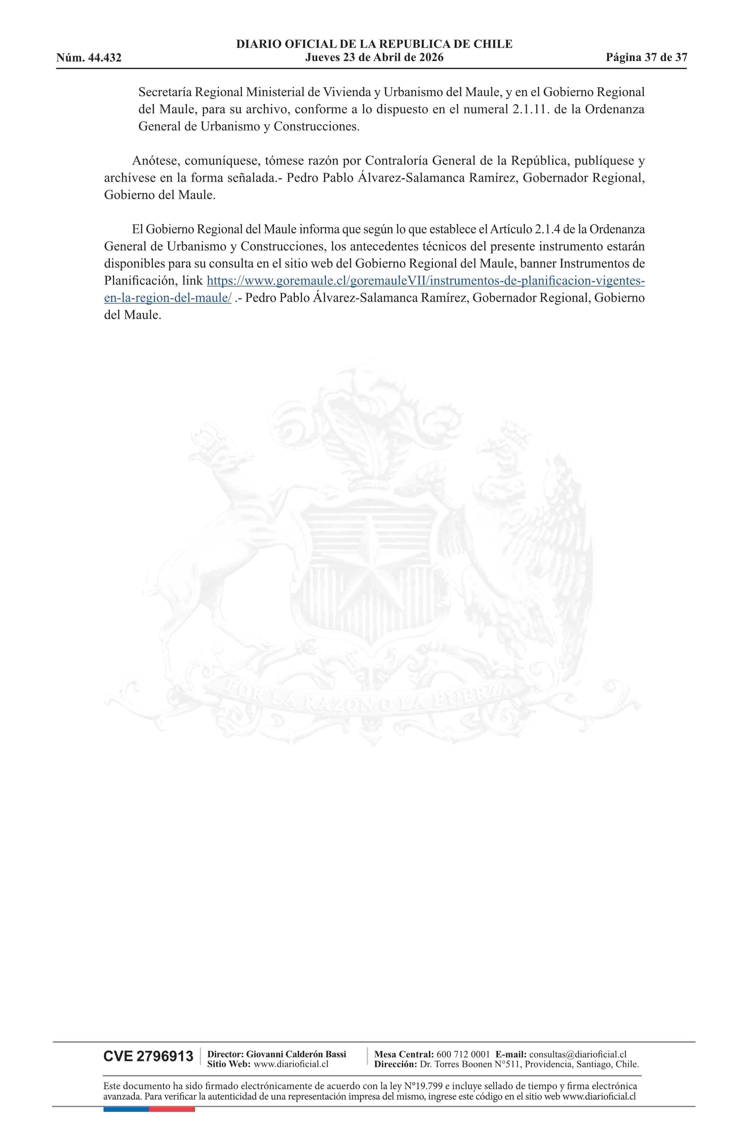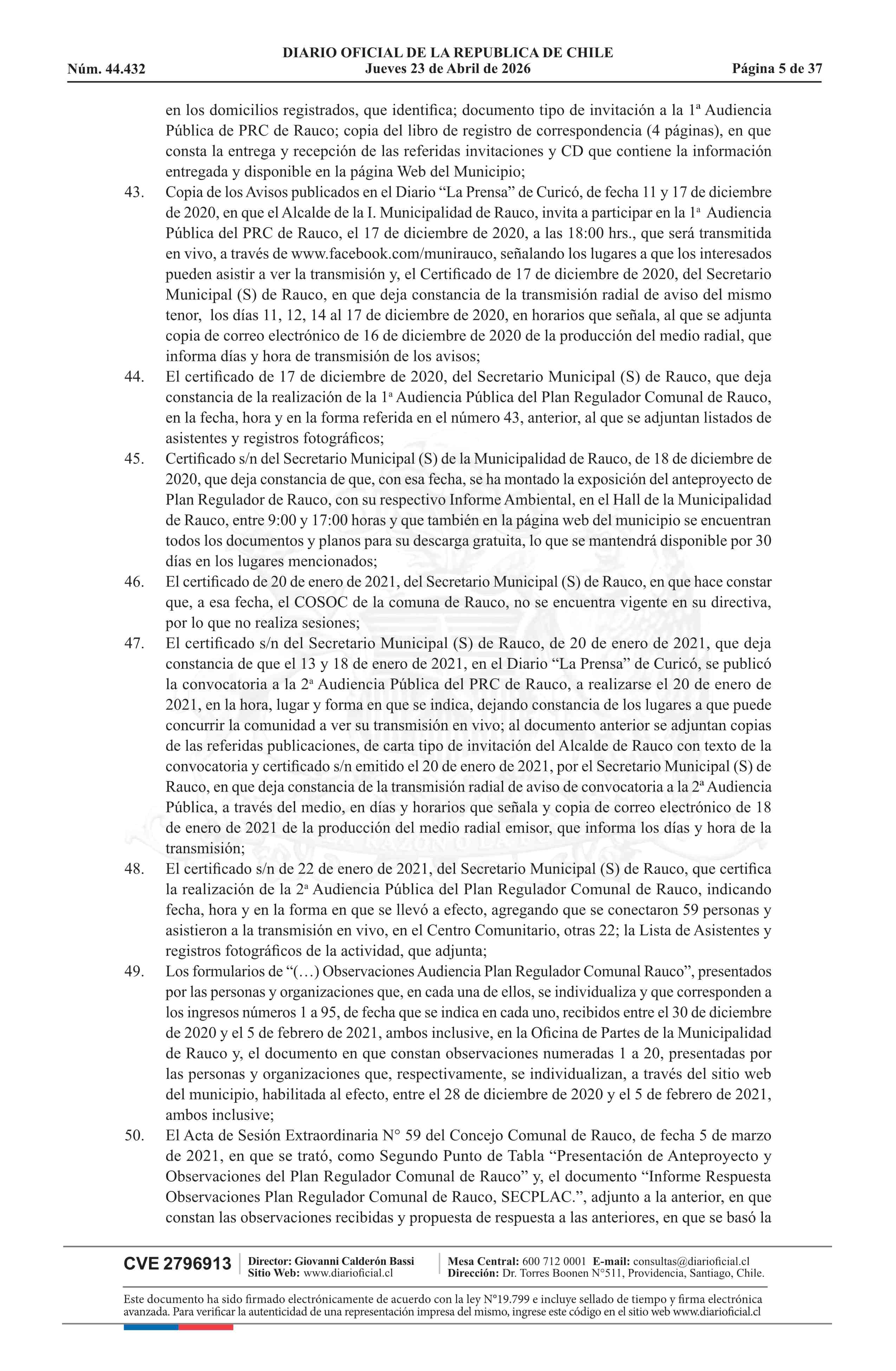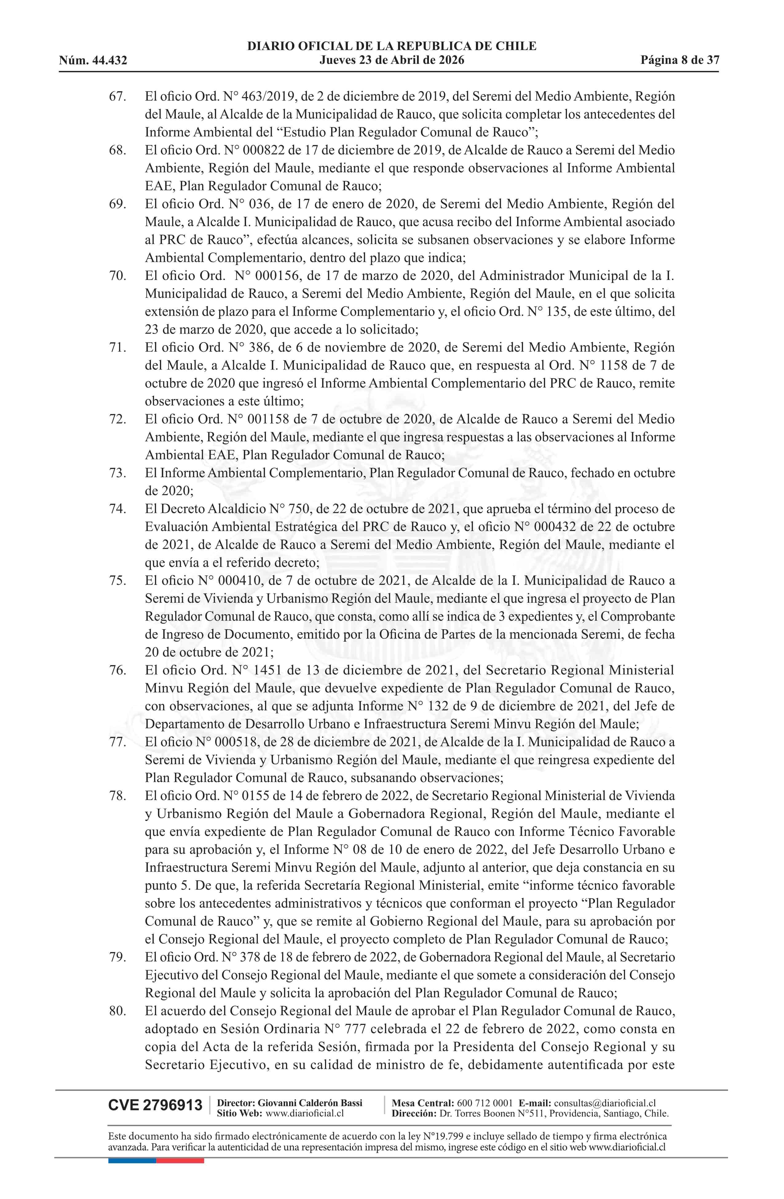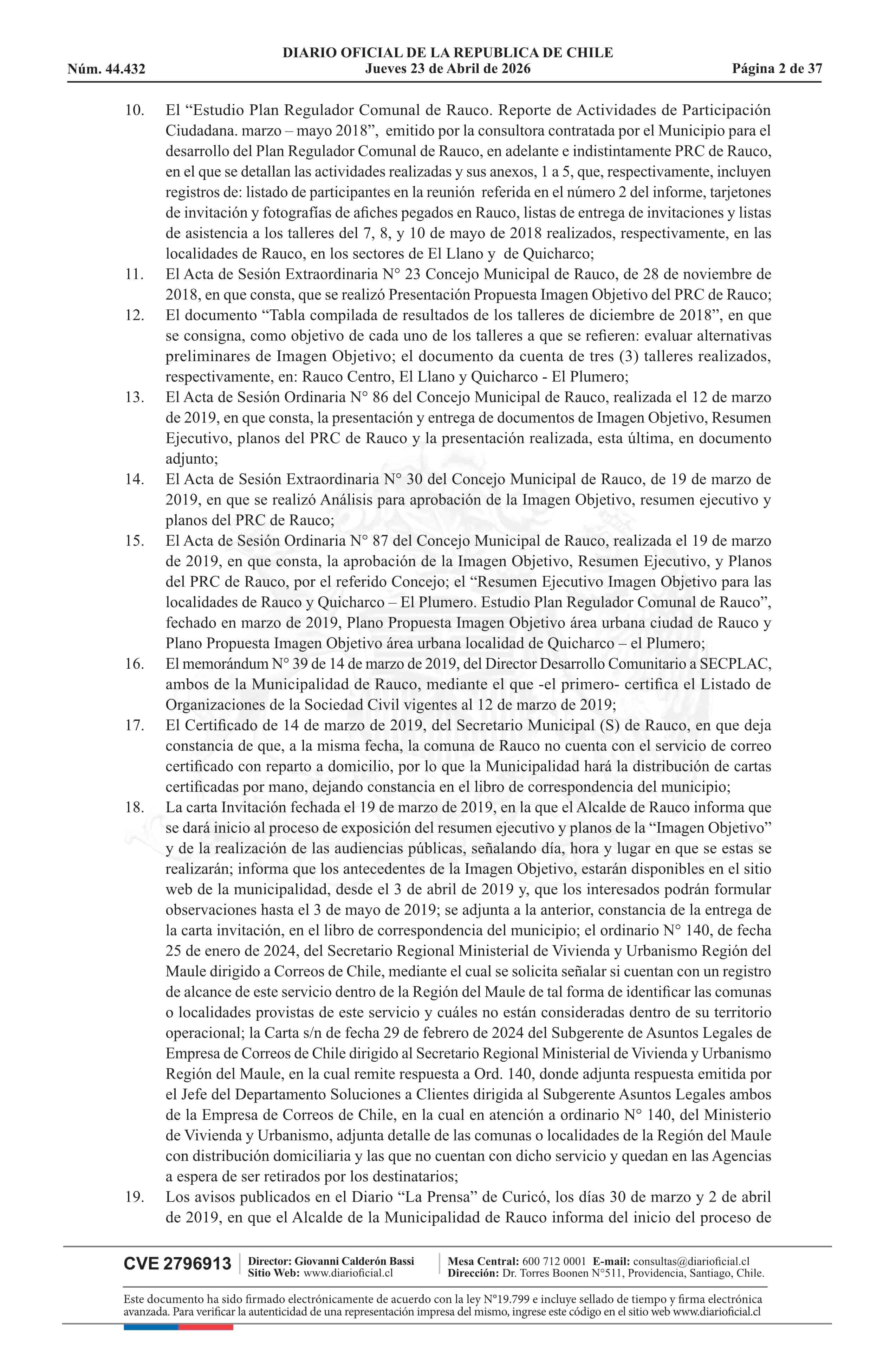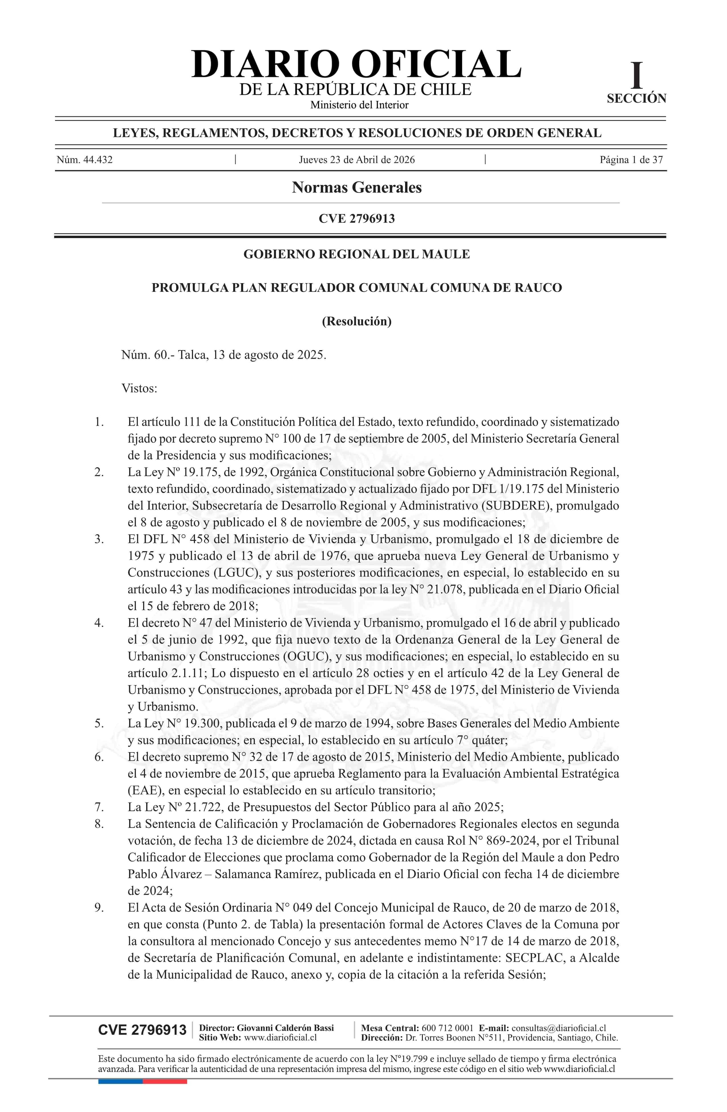 Resolución número 60, de 2025.- Promulga Plan Regulador Comunal de Rauco 23-04-2026 Diario Oficial Edición Electrónica |