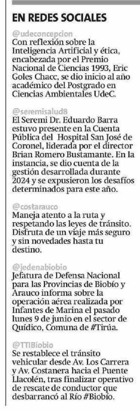 EN REDES SOCIALES 12-06-2025 La Estrella de Concepción |