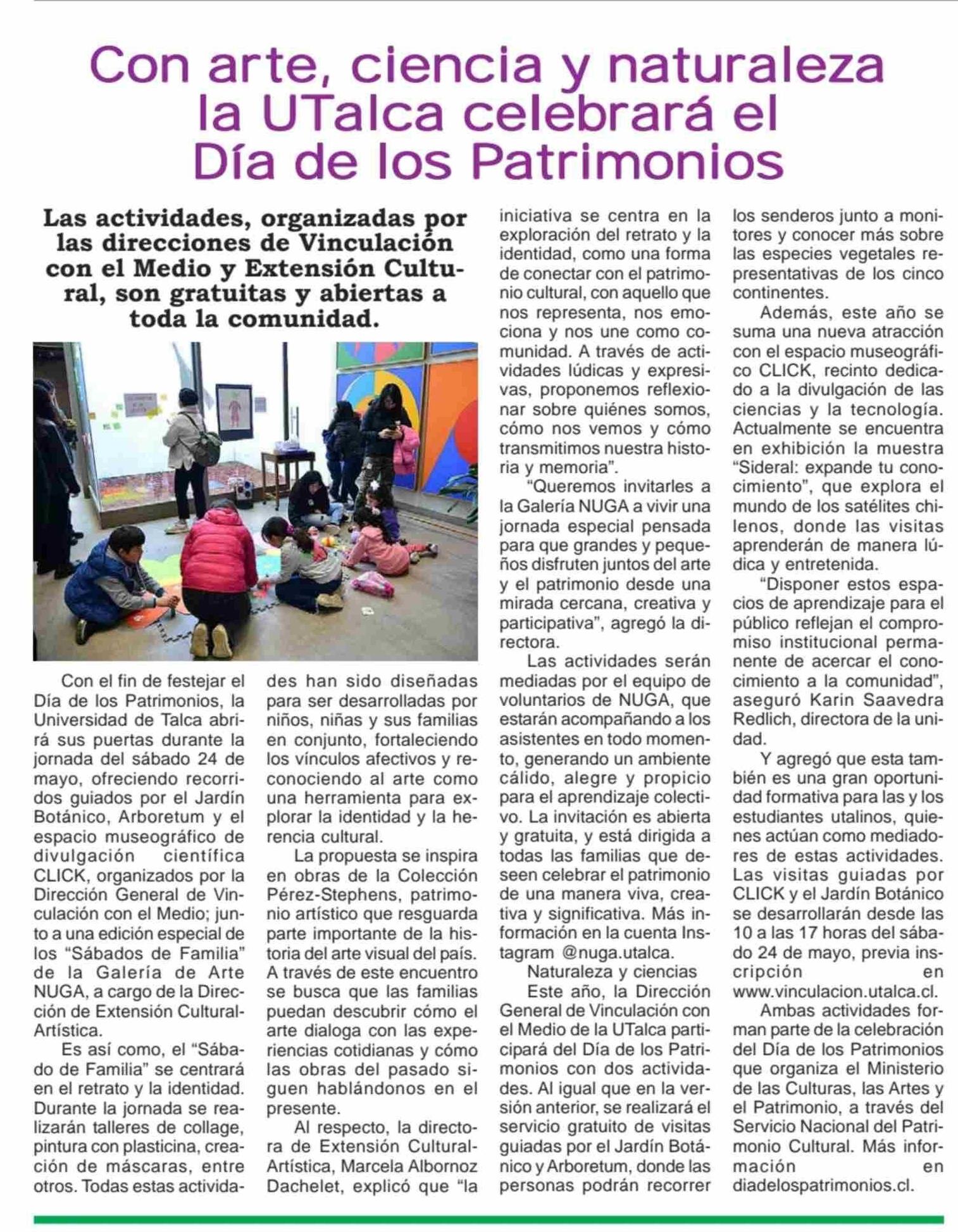 Título: Con arte, ciencia y naturaleza la UTalca celebrará el Día de los Patrimonios