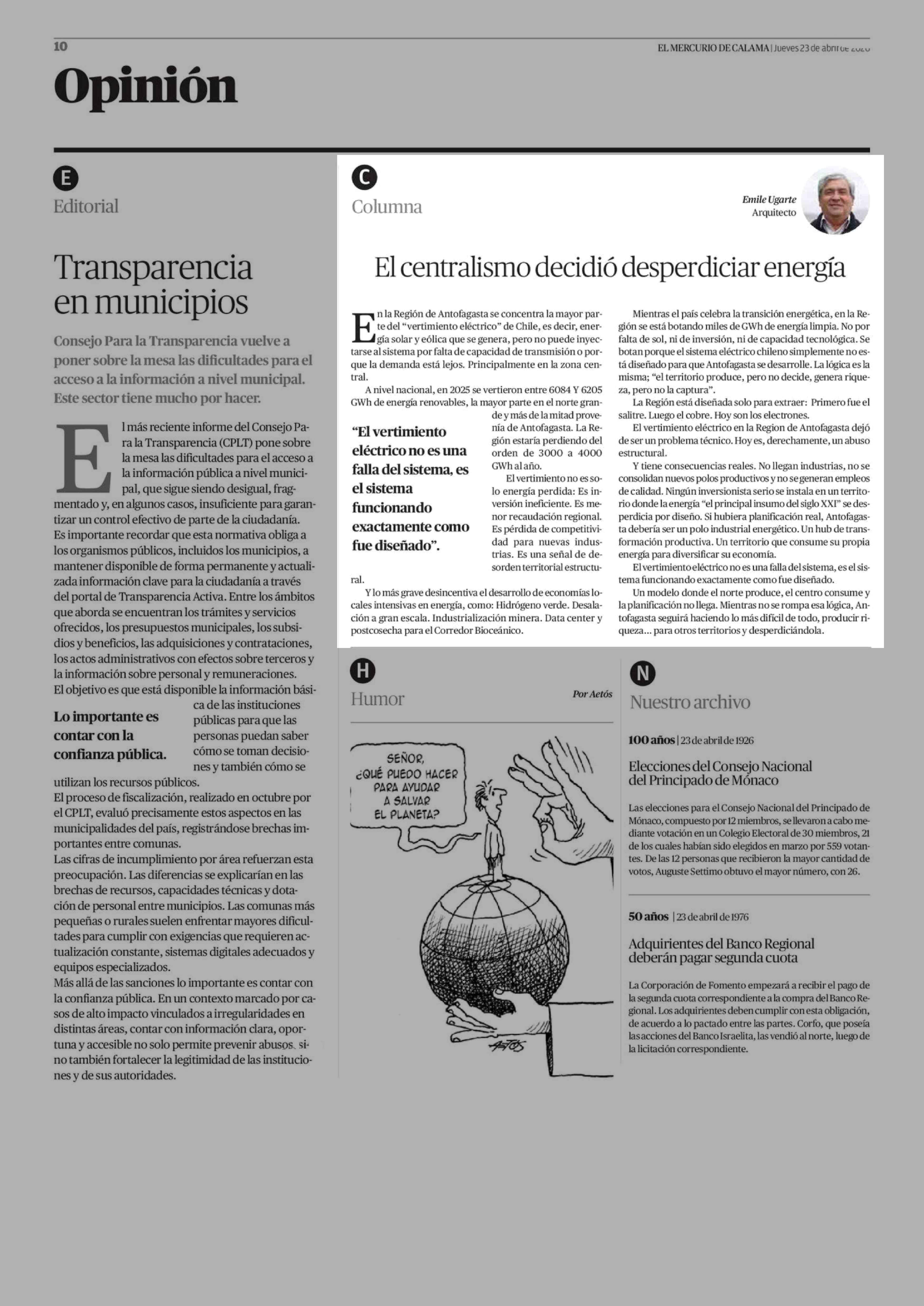 Fecha: 23-04-2026 Sector: Columnas de Opinión Región: Región de Antofagasta