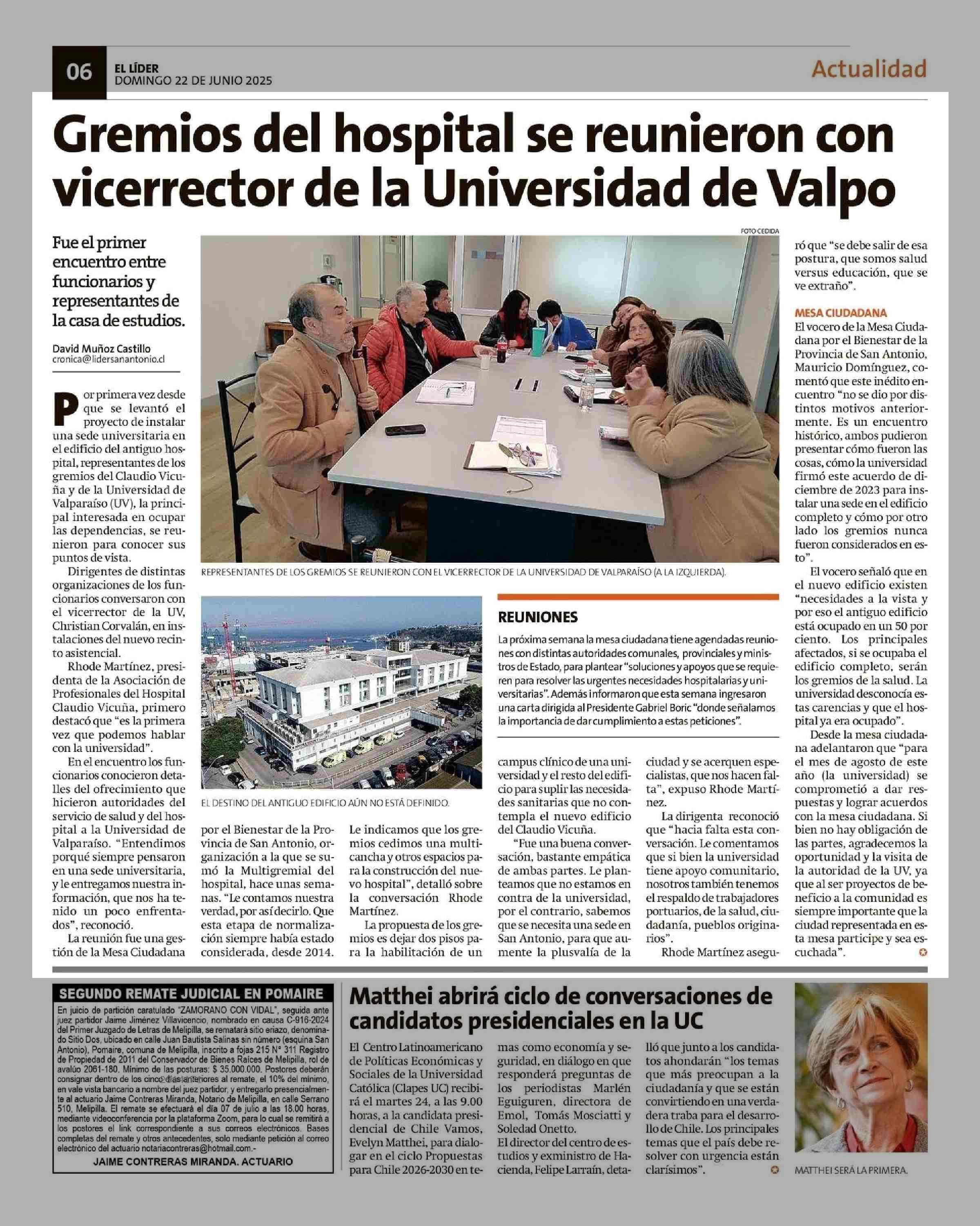 Gremios del hospital se reunieron con vicerrector de la Universidad de Valpo 22-06-2025 El Líder |