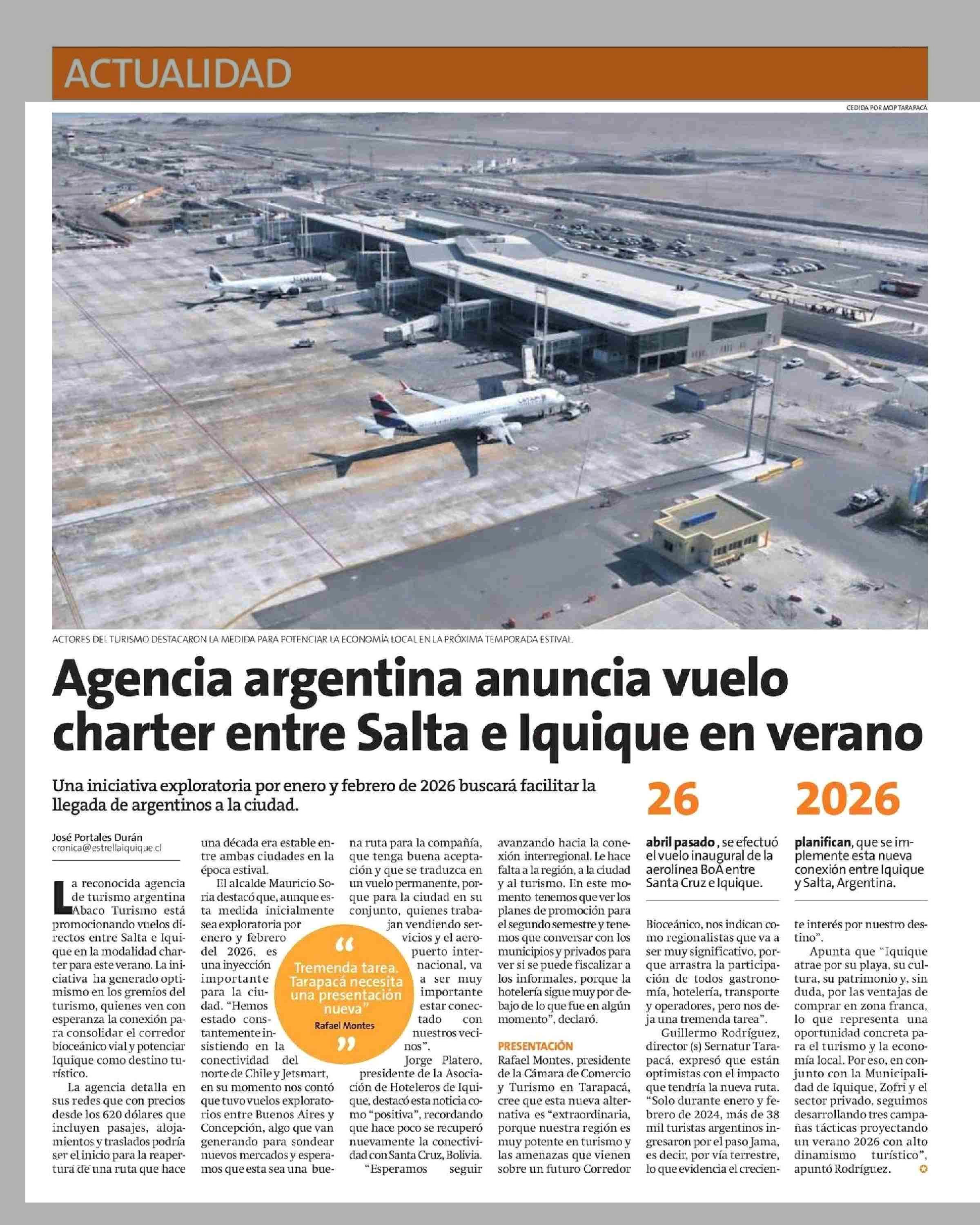 Agencia argentina anuncia vuelo charter entre Salta e Iquique en verano 14-06-2025 La Estrella de Iquique |