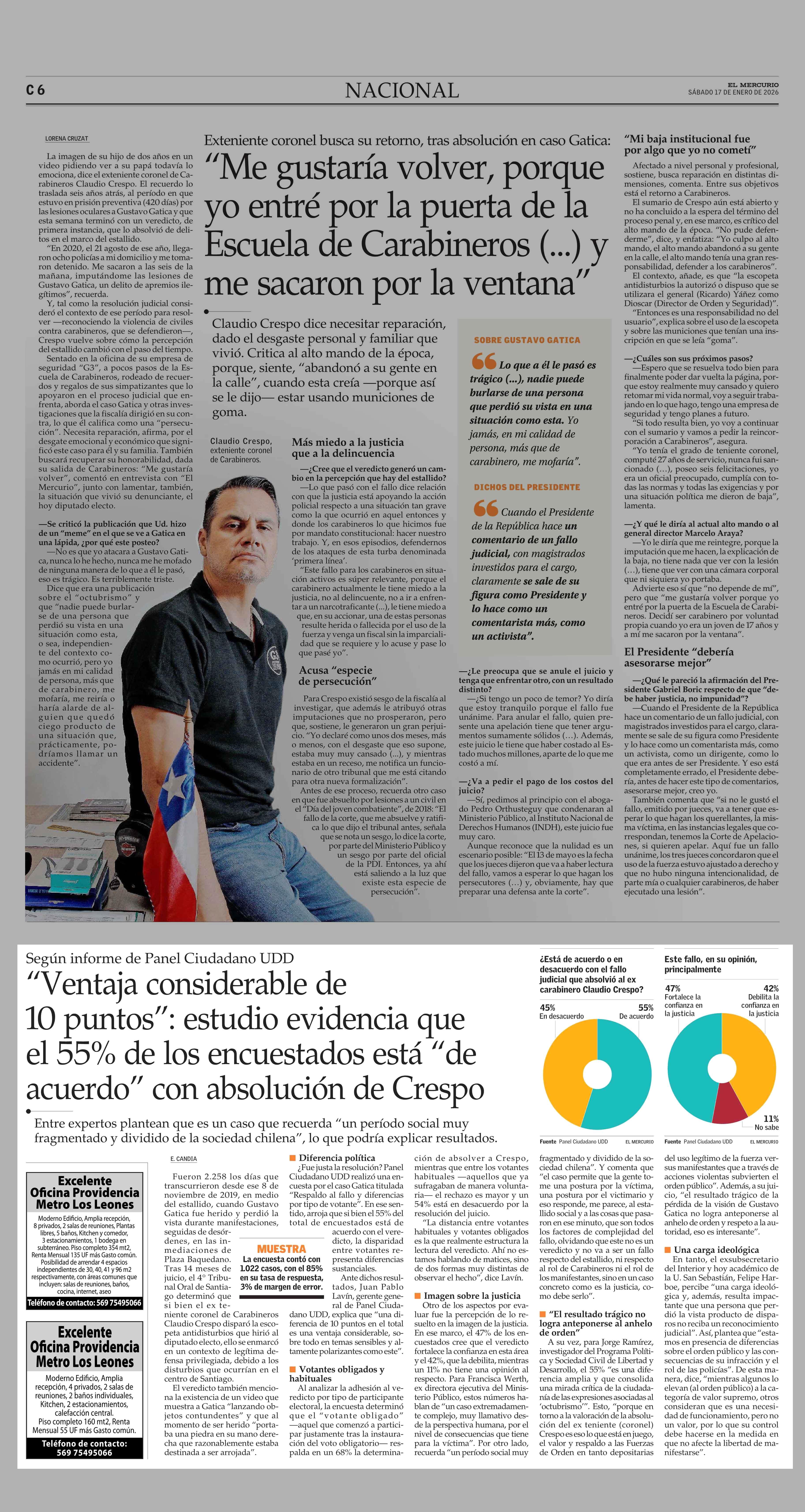“Ventaja considerable de 10 puntos”: estudio evidencia que el 55% de los encuestados está “de acuerdo” con absolución de Crespo 17-01-2026 El Mercurio |