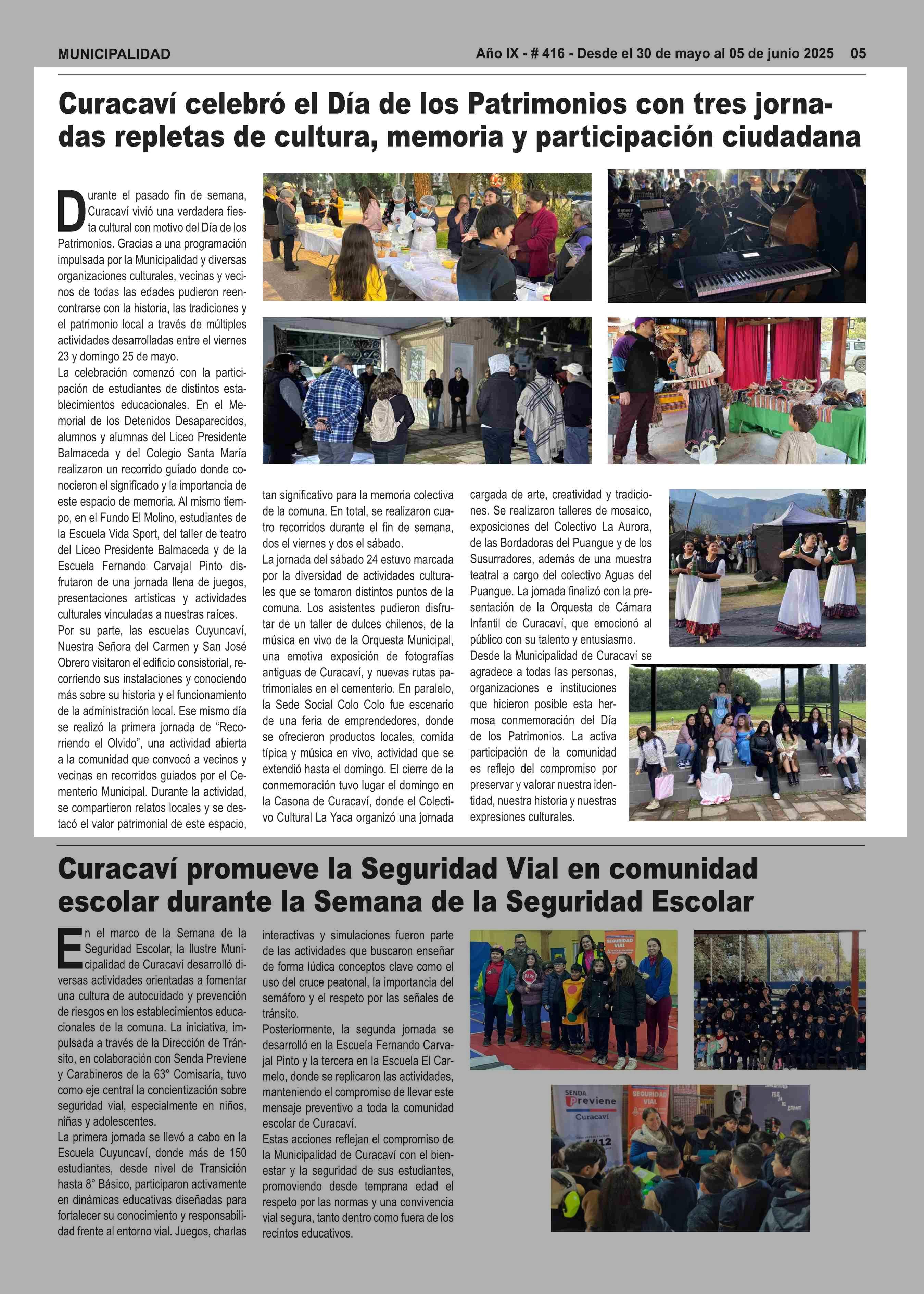 Curacaví celebró el Día de los Patrimonios con tres jorna- das repletas de cultura, memoria y participación ciudadana 30-05-2025 Buenos Días Curacaví |