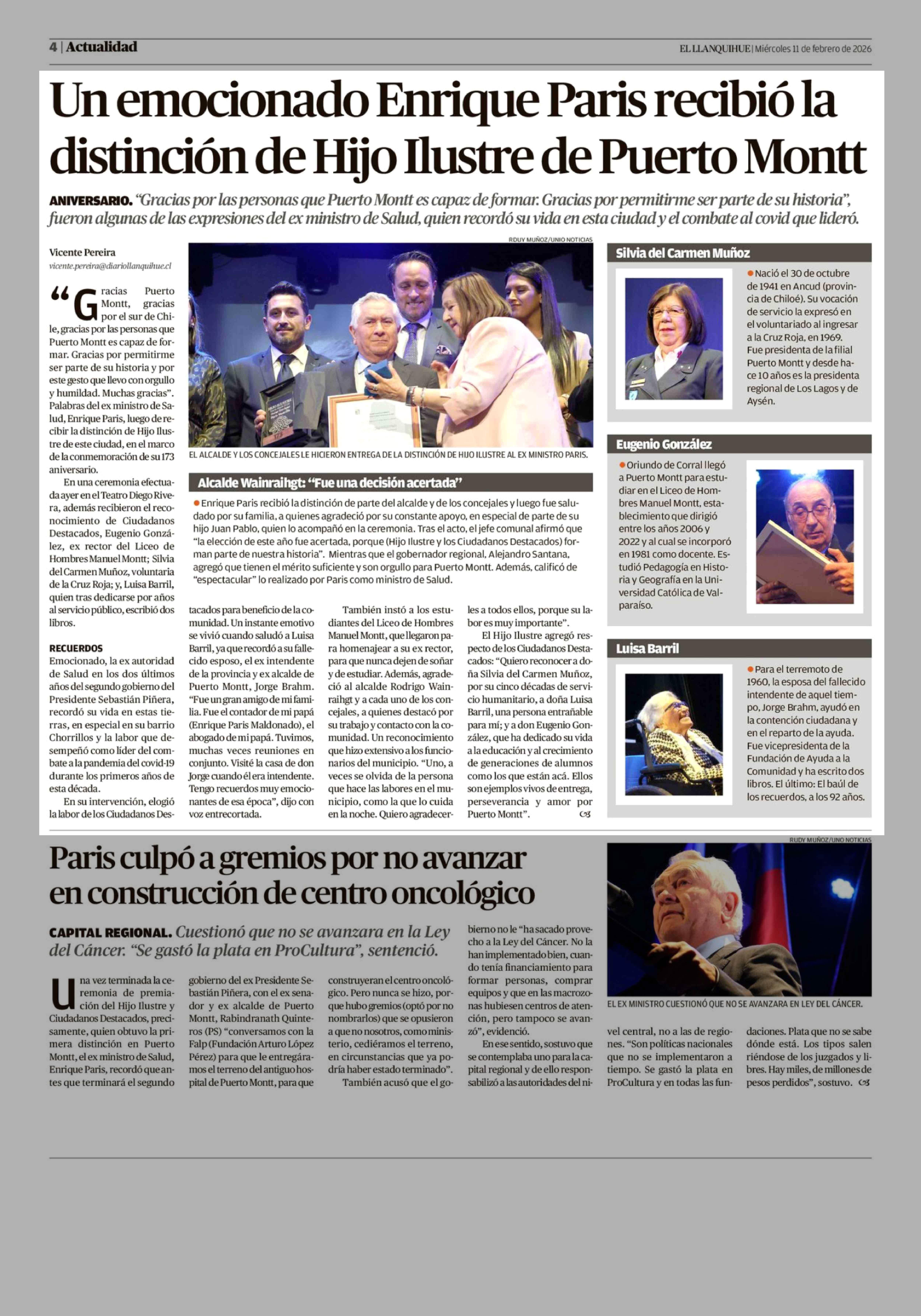 Título: Un emocionado Enrique Paris recibió la distinción de Hijo Ilustre de Puerto Montt
