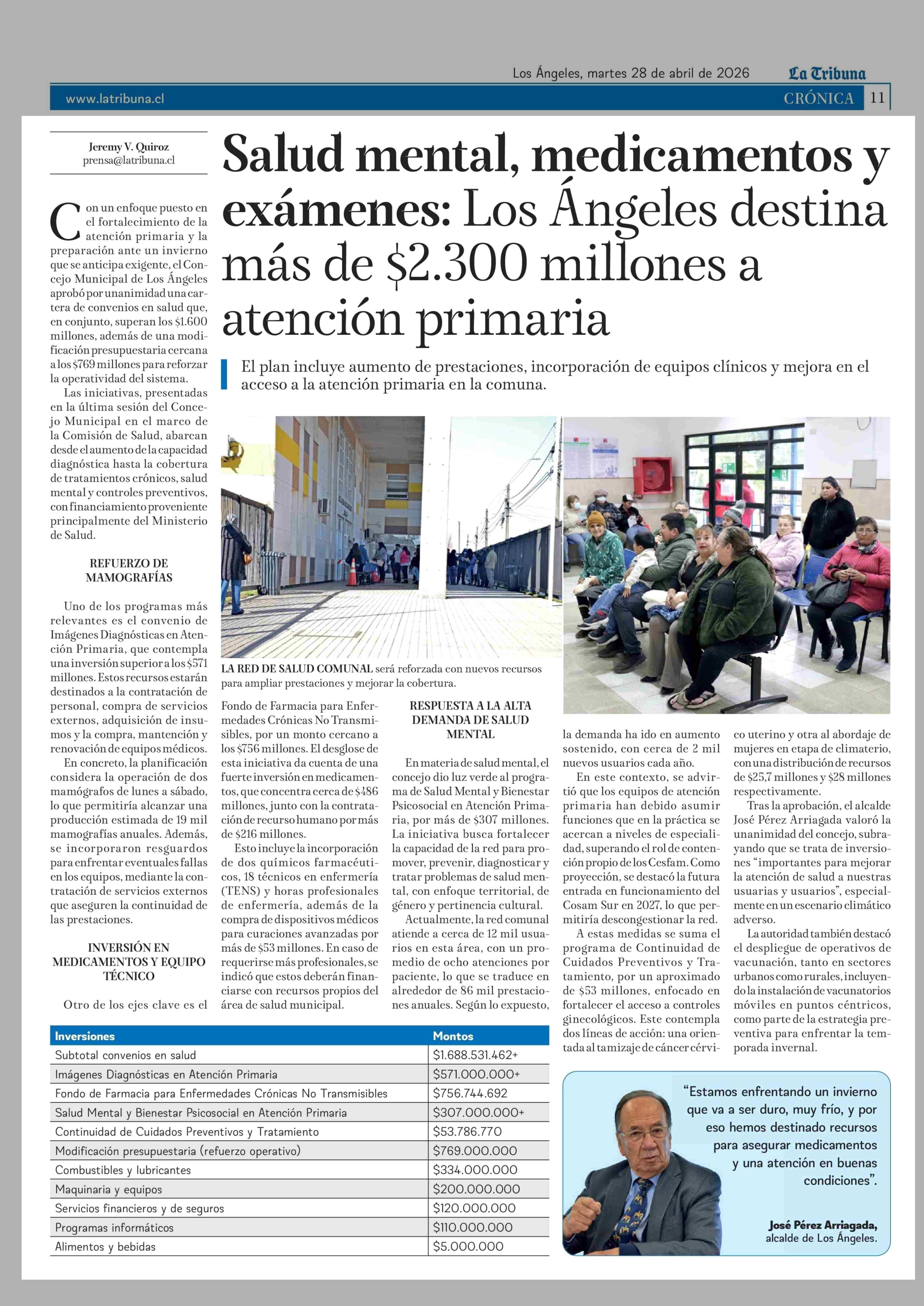Título: Salud mental, medicamentos exámenes: Los Angeles destina más de $2.300 millones a atención primaria
