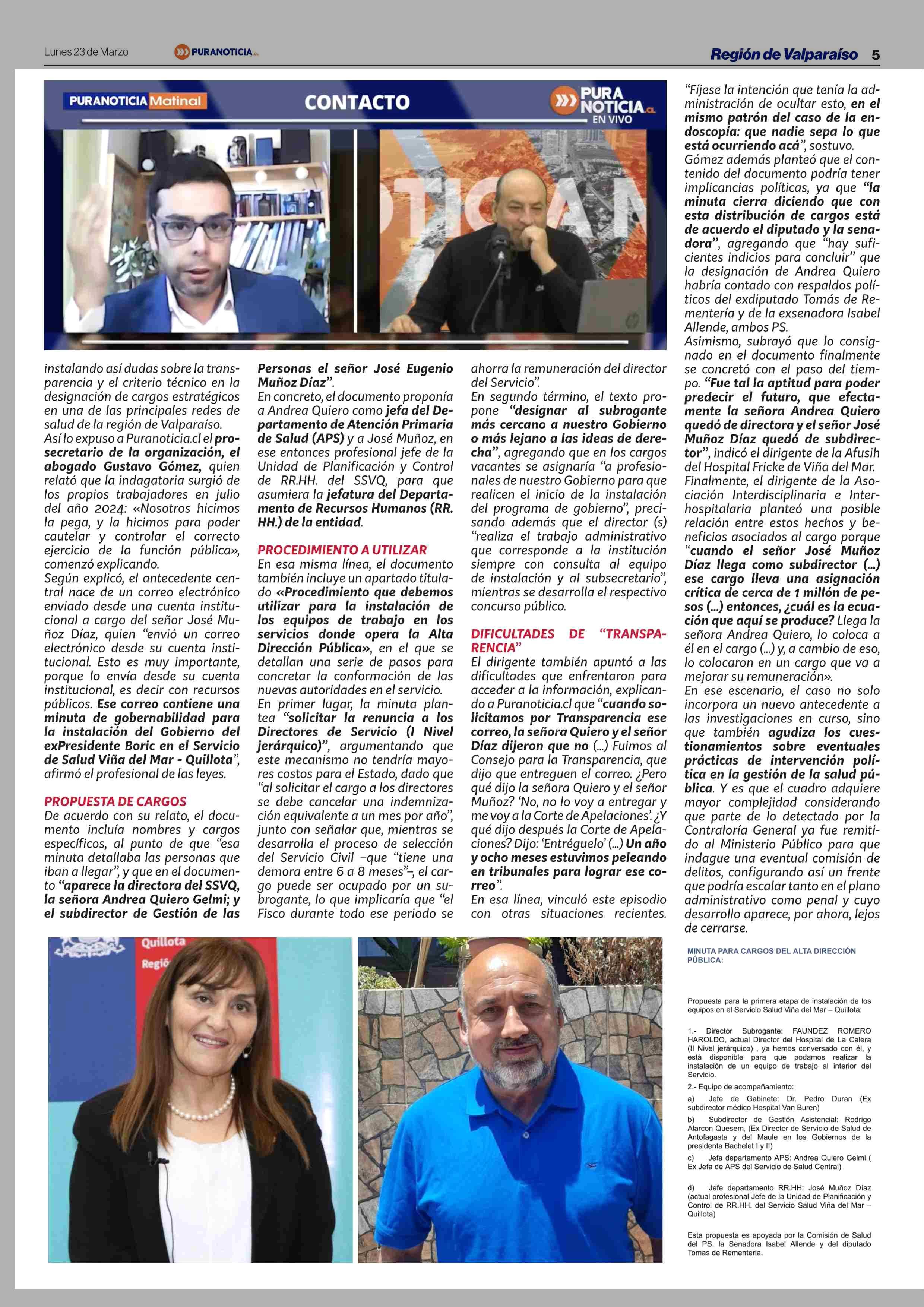 Título: Escala la crisis en el SSVQ: minuta del 2022 revela designaciones previamente acordadas y con la venia de parlamentarios socialistas