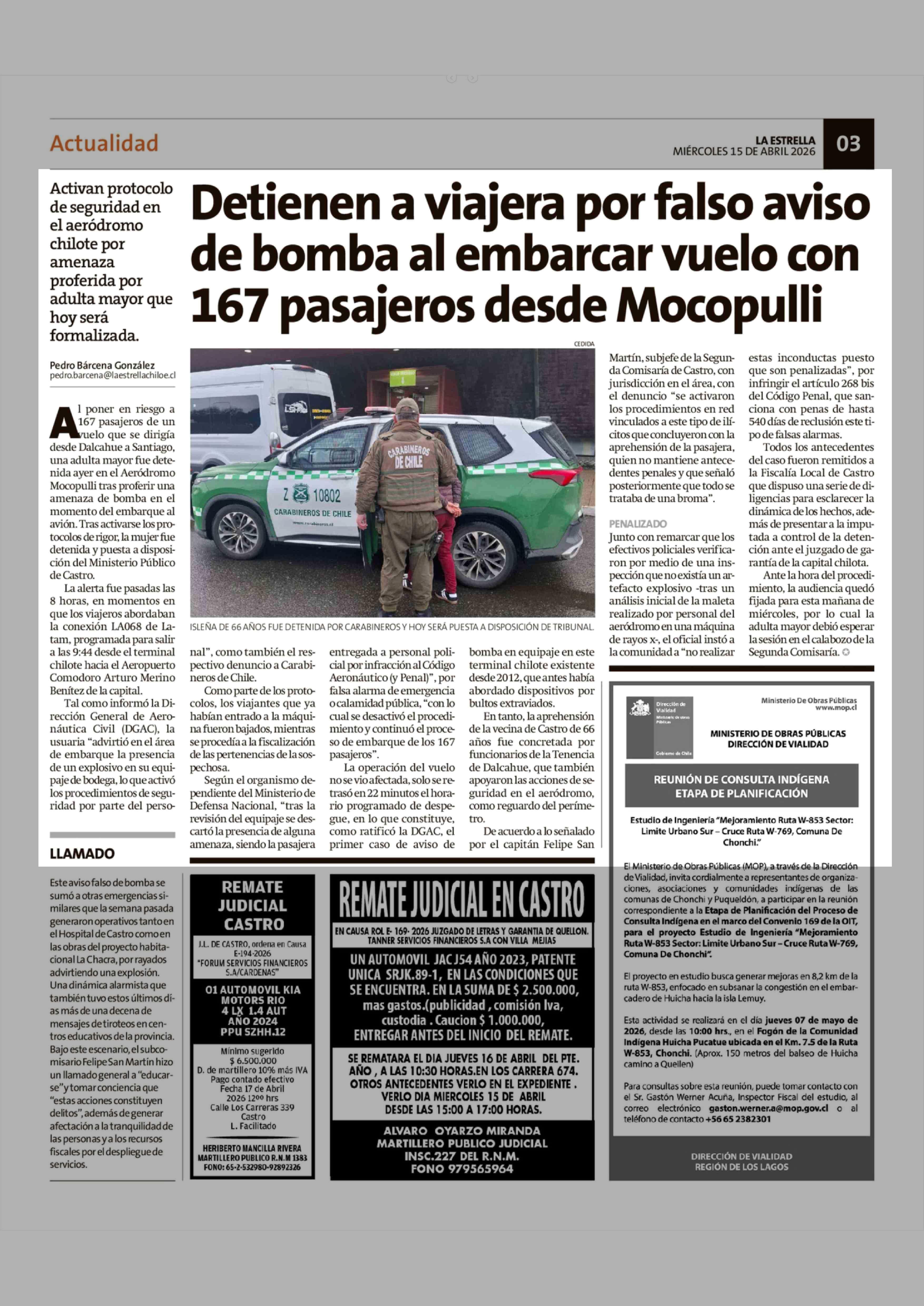 Fuente: La Estrella de Chiloé (La Estrella de Chiloé) Página(s): 3