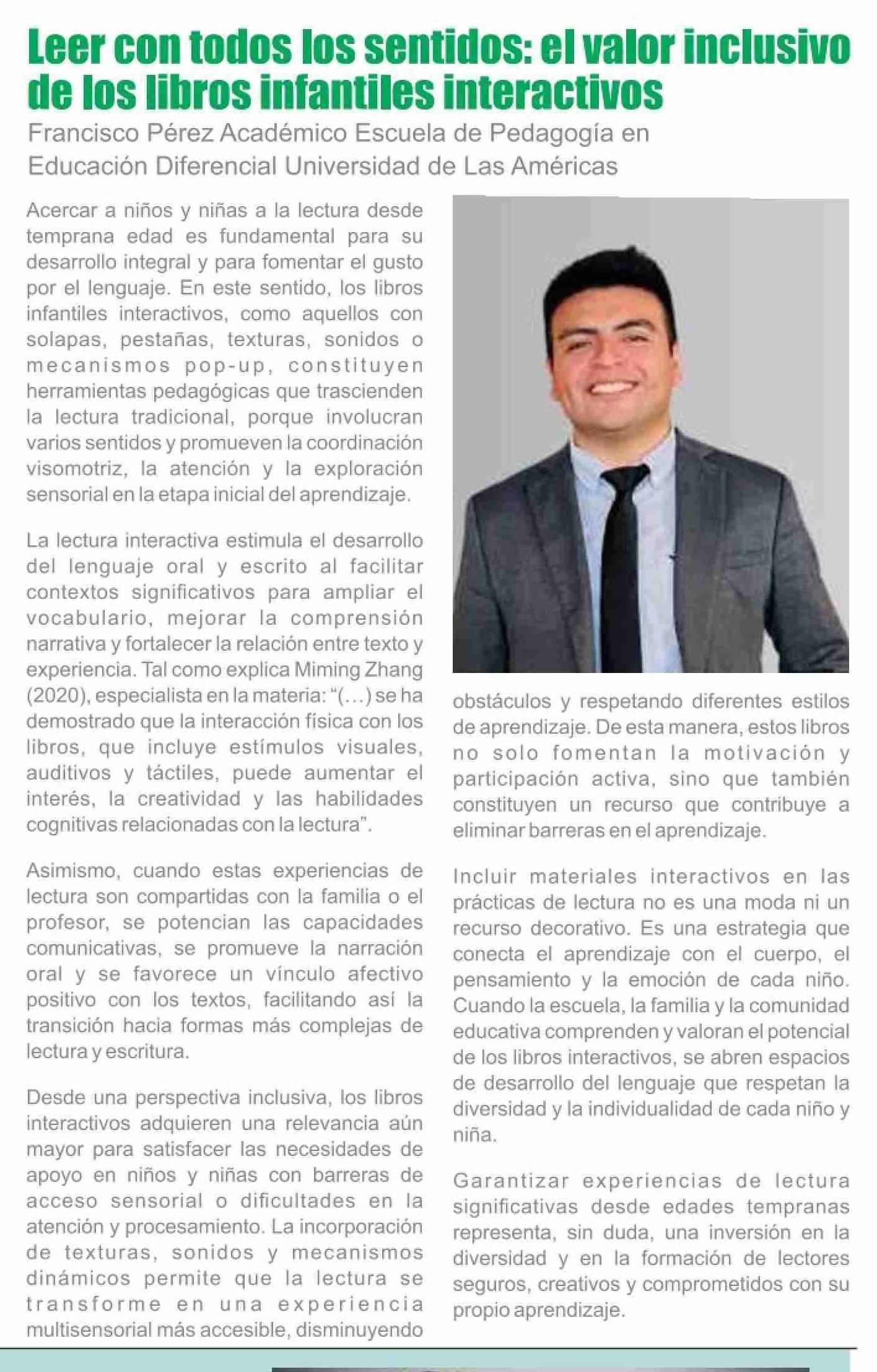 | Título: | Columnas de Opinión: Leer con todos los sentidos: el valor inclusivo de los libros infantiles interactivos |