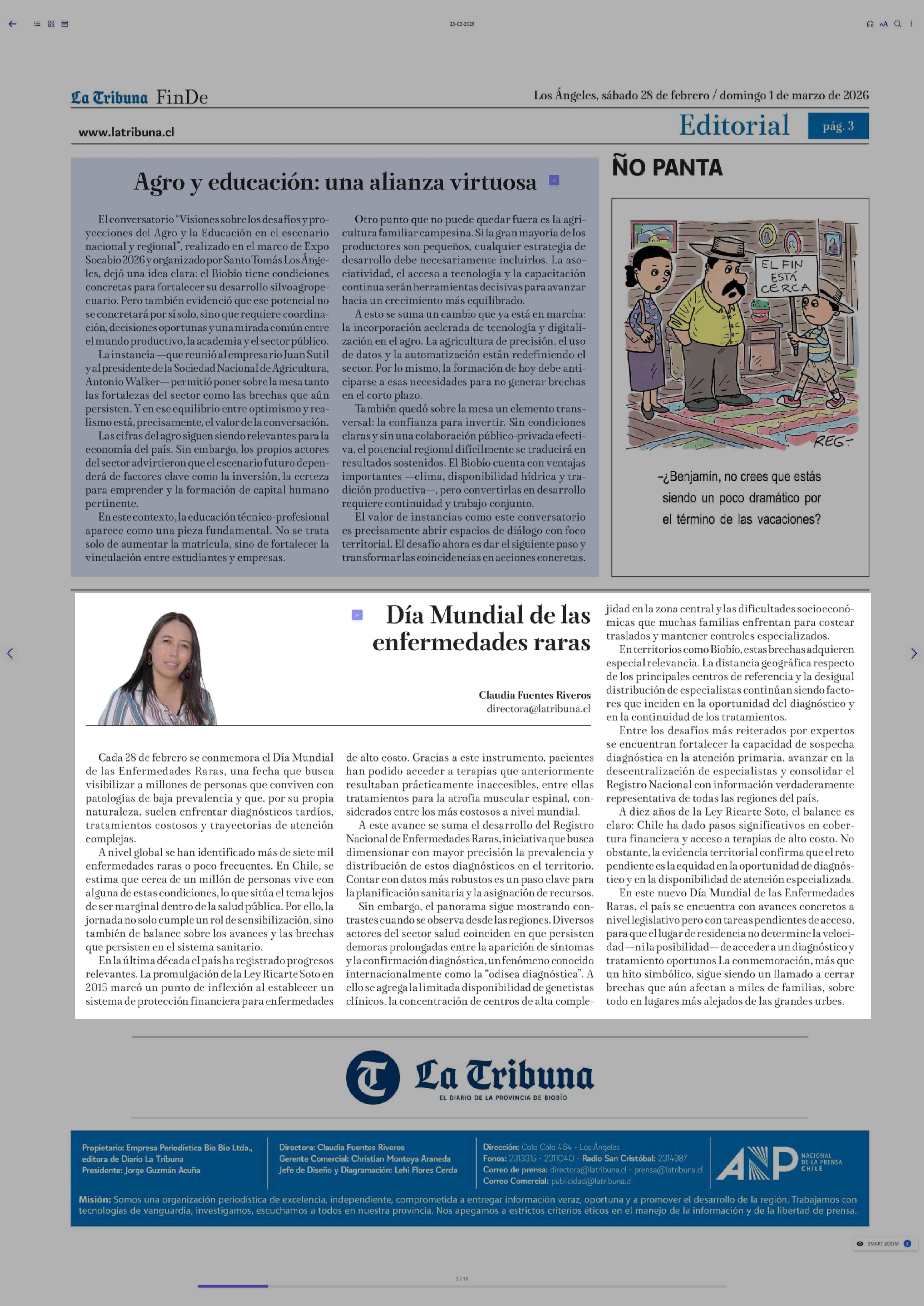Columnas de Opinión: Día Mundial de las enfermedades raras 28-02-2026 La Tribuna |