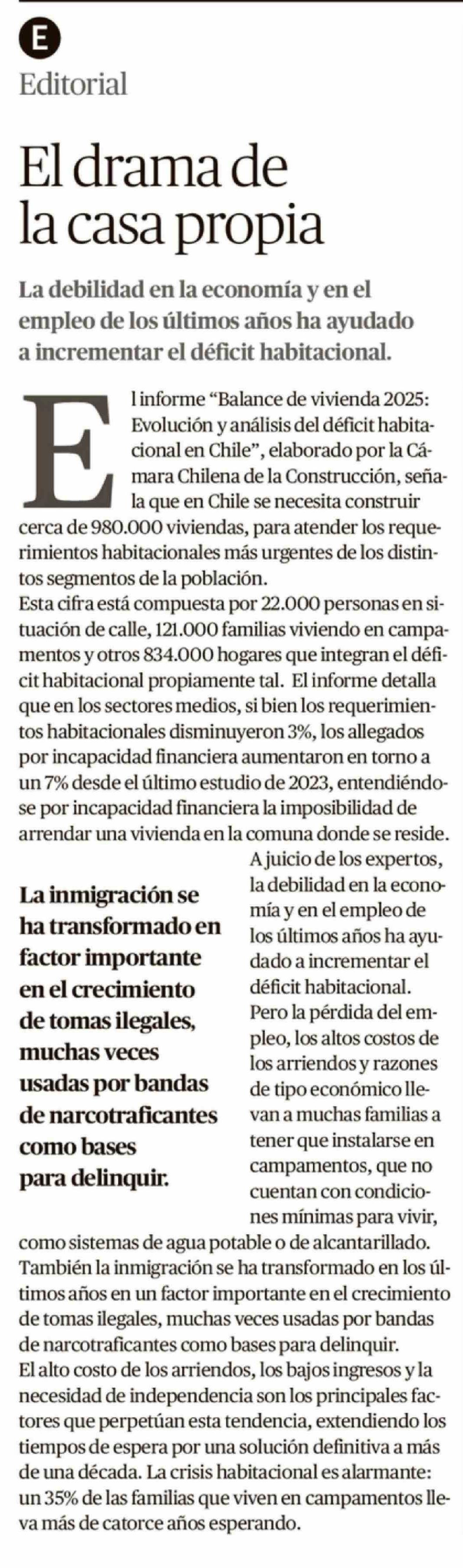 Editorial: El drama de la casa propia 26-02-2026 El Austral de Osorno |