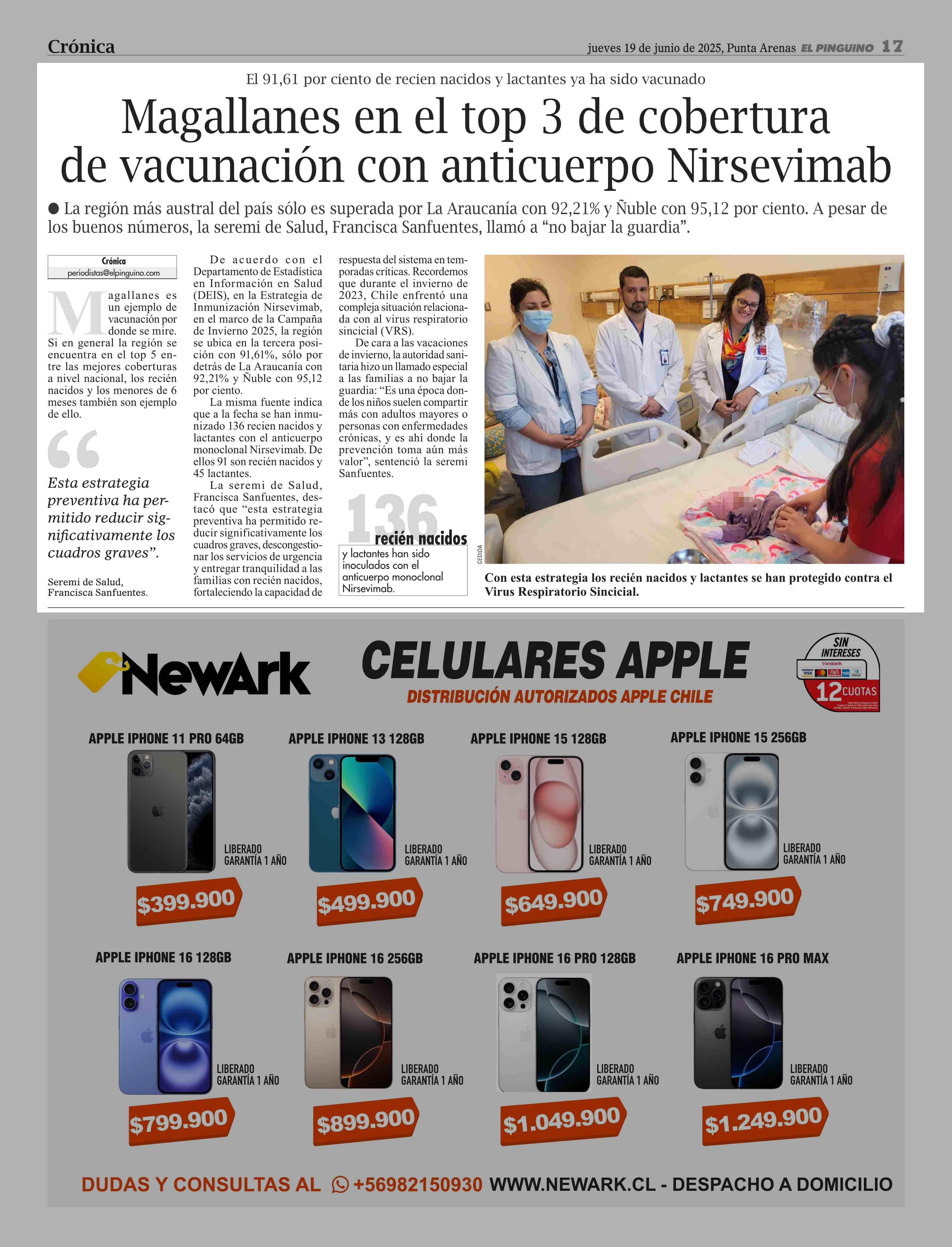 Magallanes en el top 3 de cobertura de vacunación con anticuerpo Nirsevimab 19-06-2025 El Pingüino |