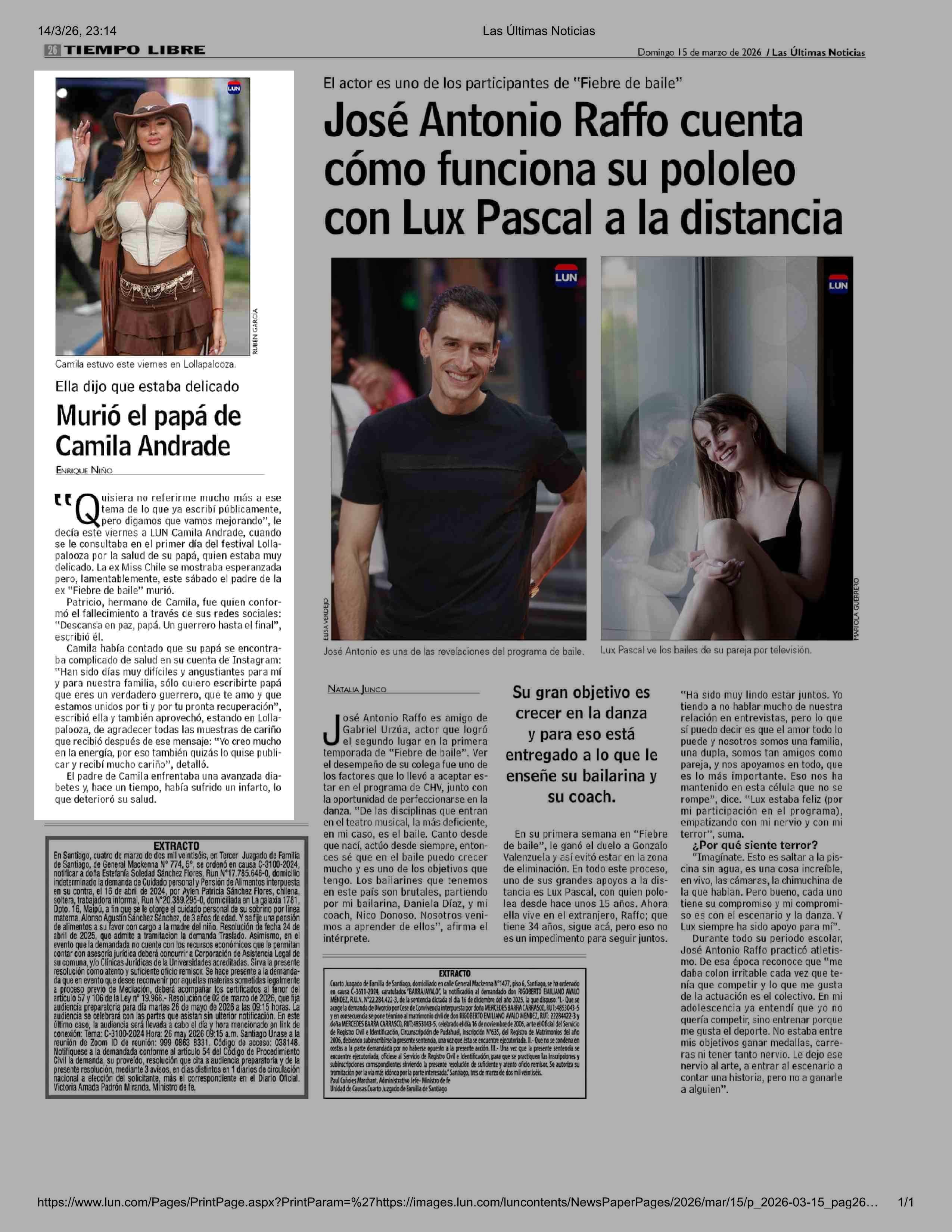 Murió el papá de Camila Andrade 15-03-2026 Las Últimas Noticias |