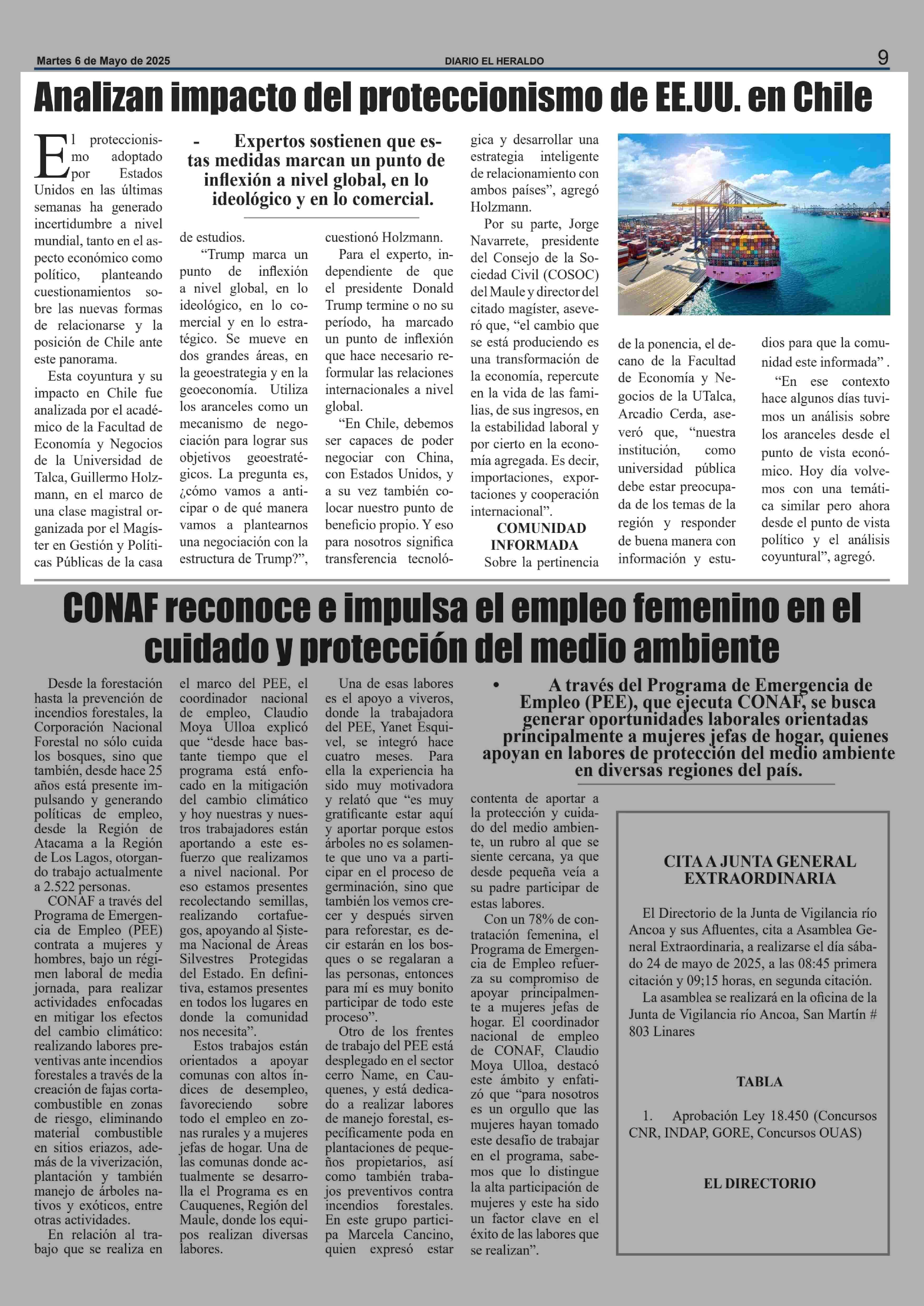 Analizan impacto del proteccionismo de EE.UU. en Chile 06-05-2025 El Heraldo |