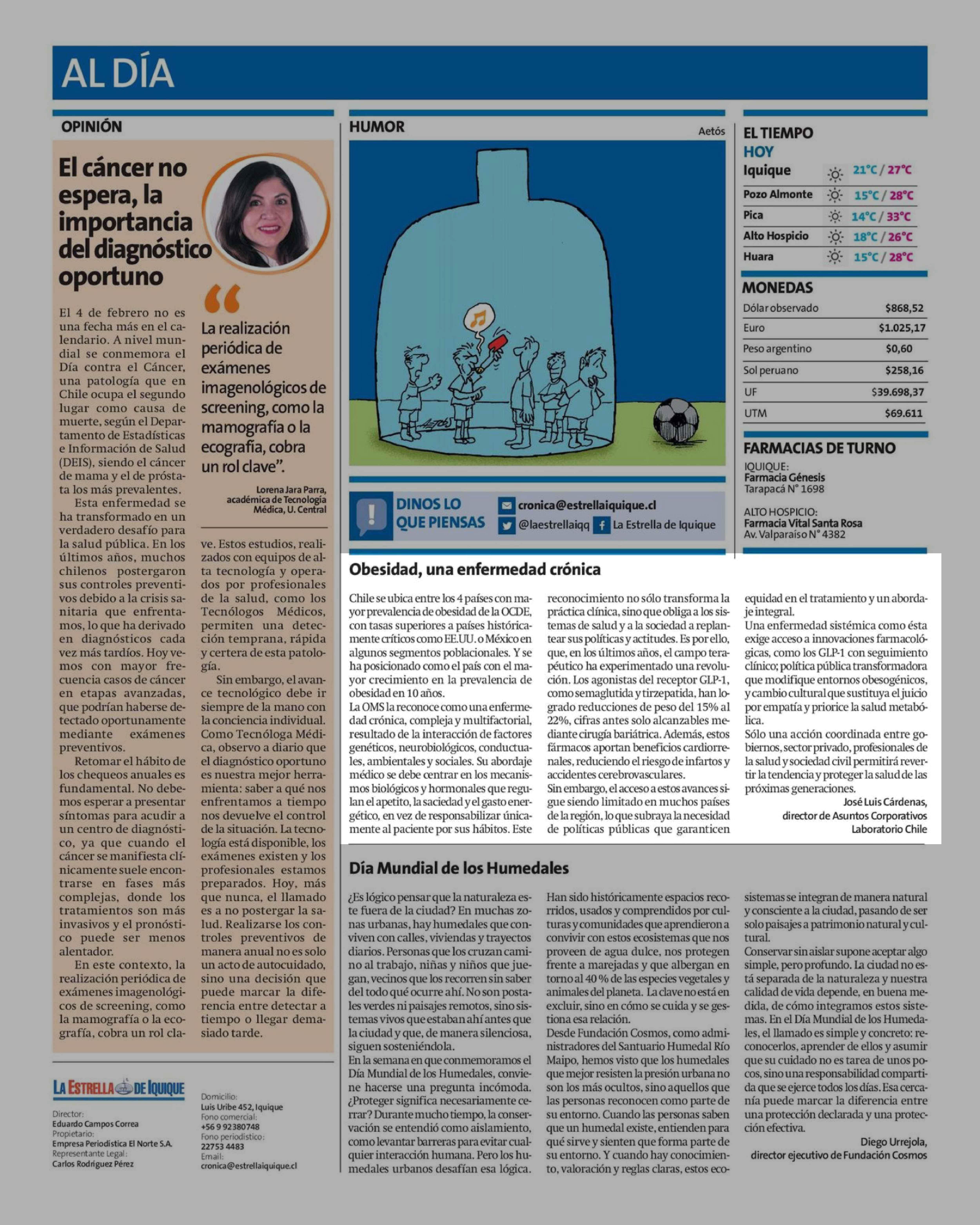 Cartas: Obesidad, una enfermedad crónica 03-02-2026 La Estrella de Iquique |