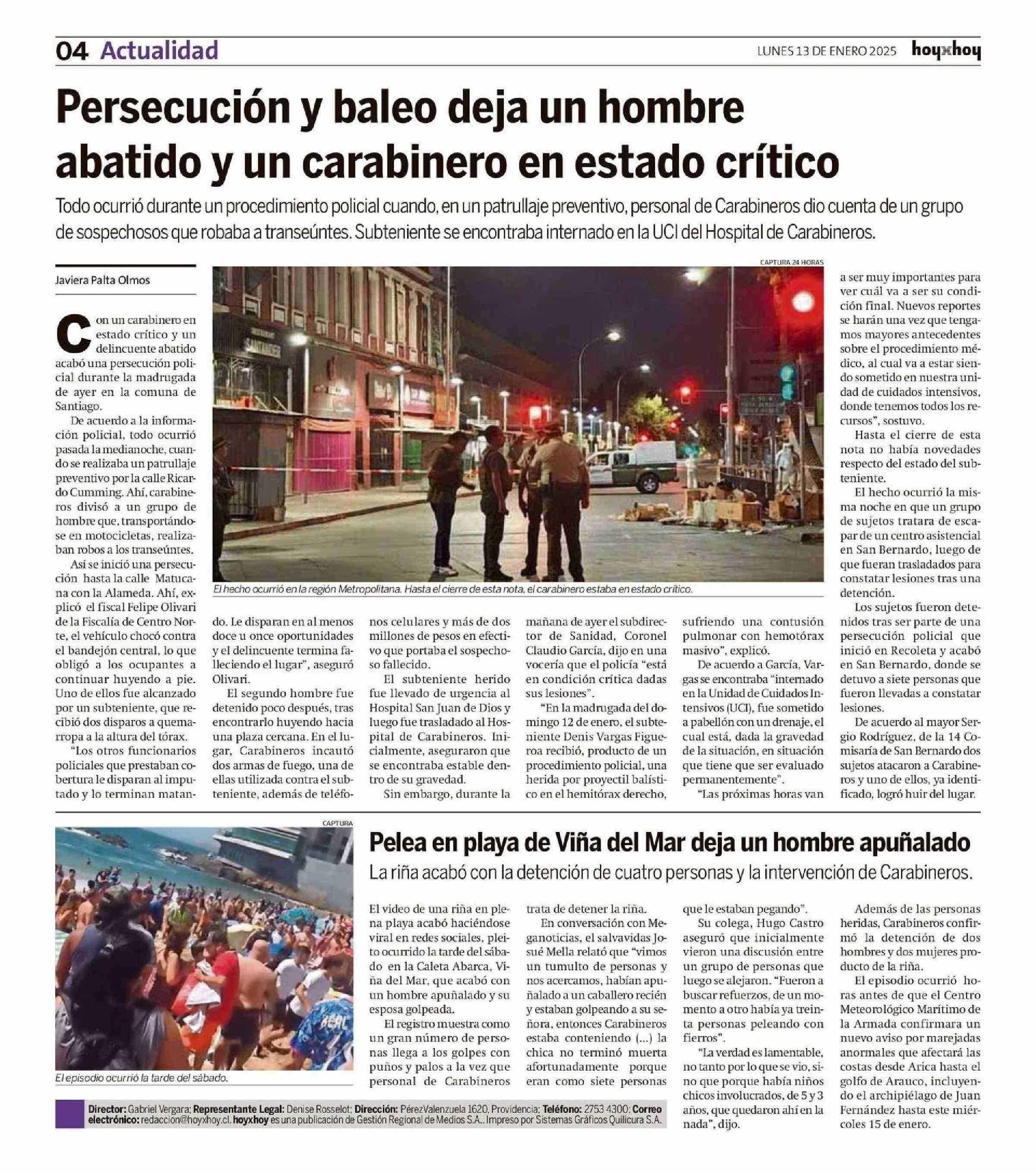 | Fecha: | 13-01-2025 | Sector: | Noticia general | Región: | Región Metropolitana de Santiago |