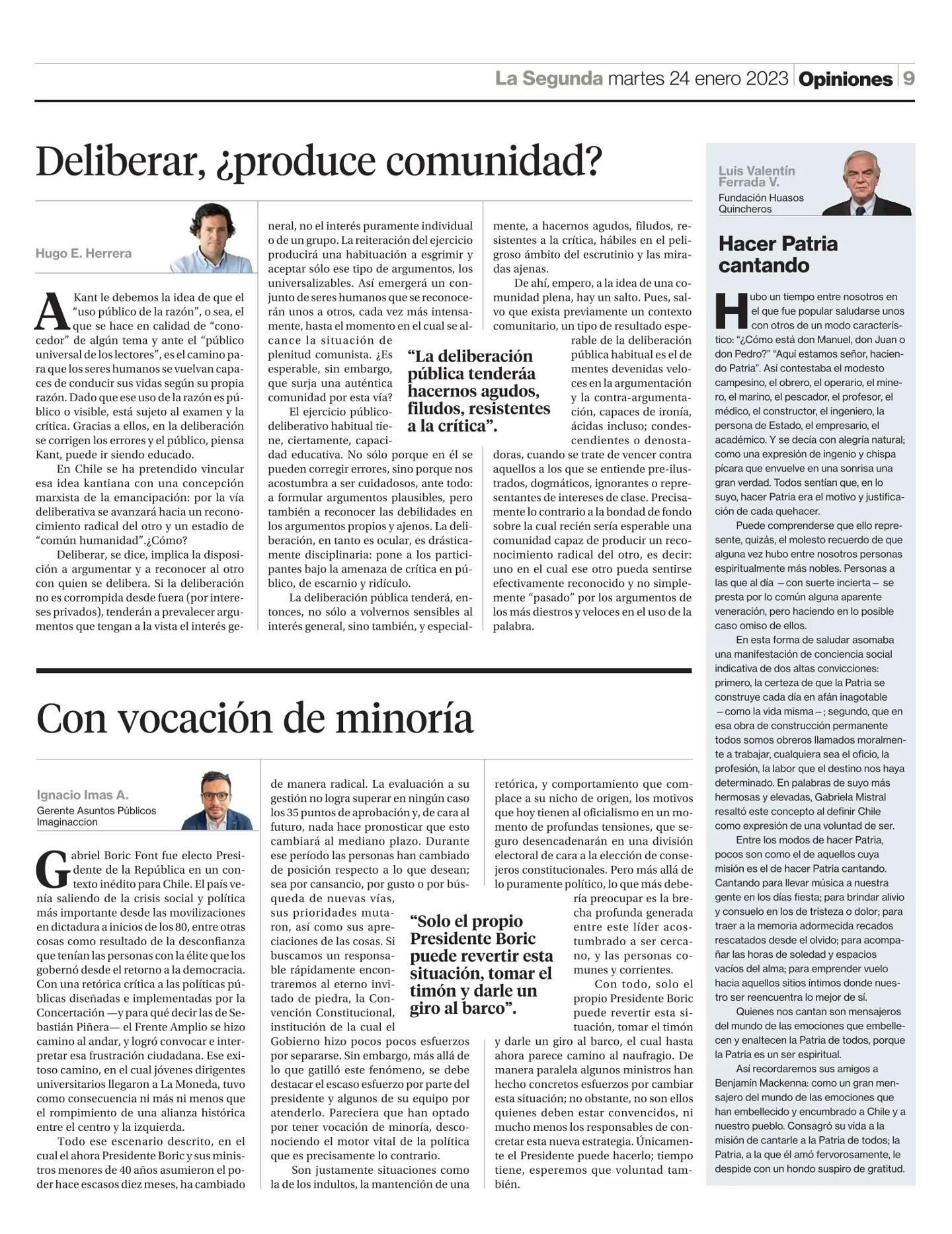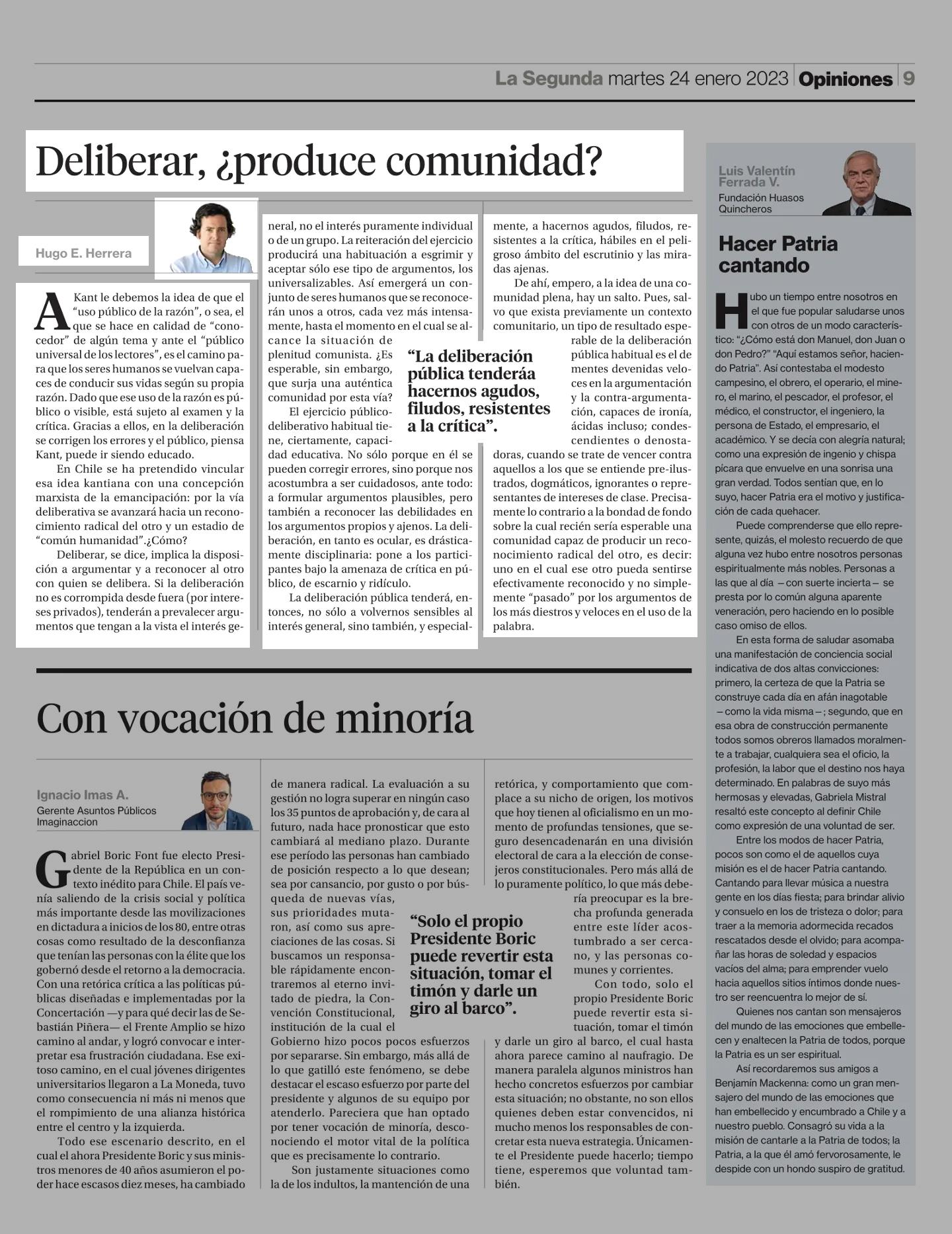 Deliberar, ¿produce comunidad? 24-01-2023 La Segunda |