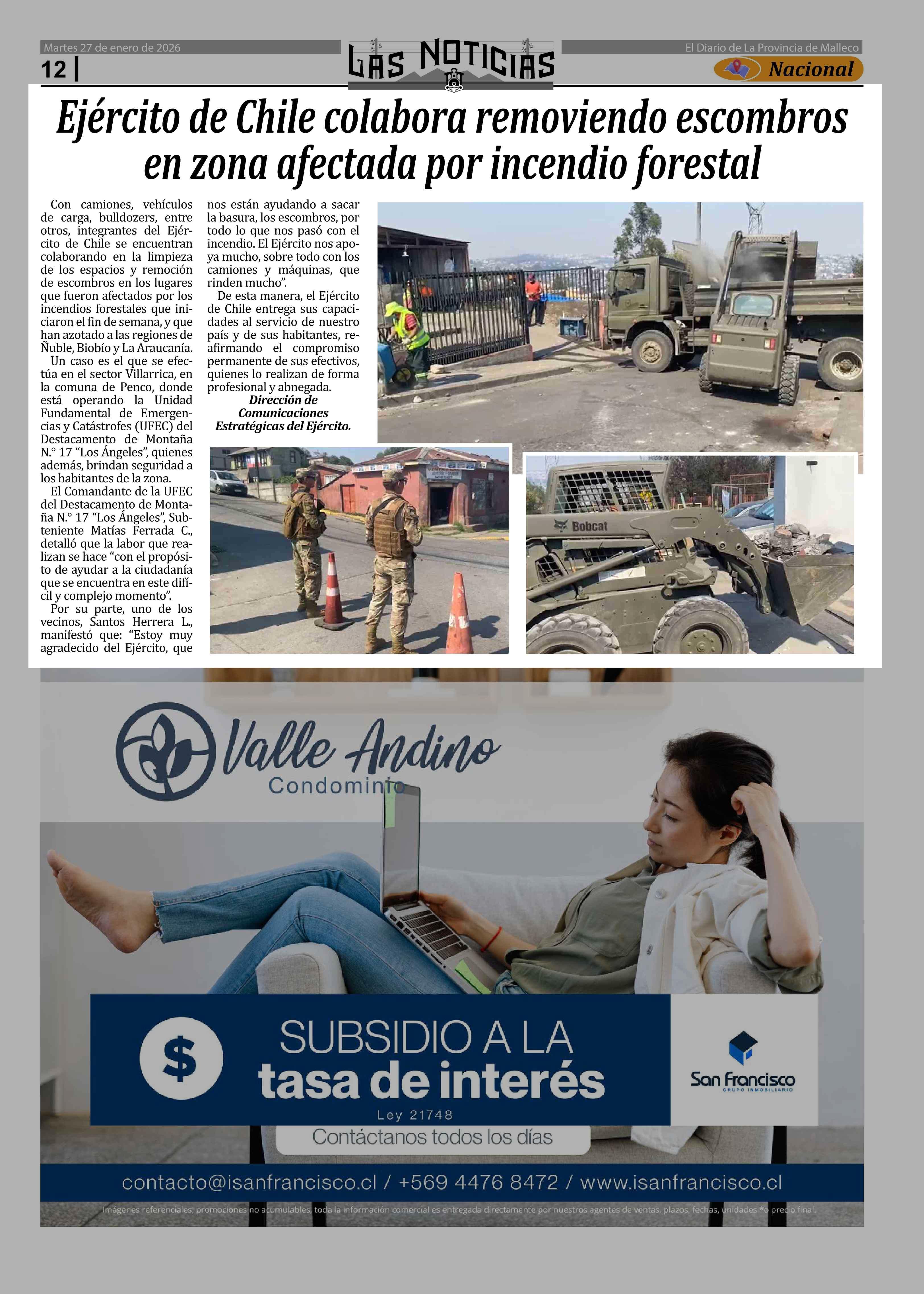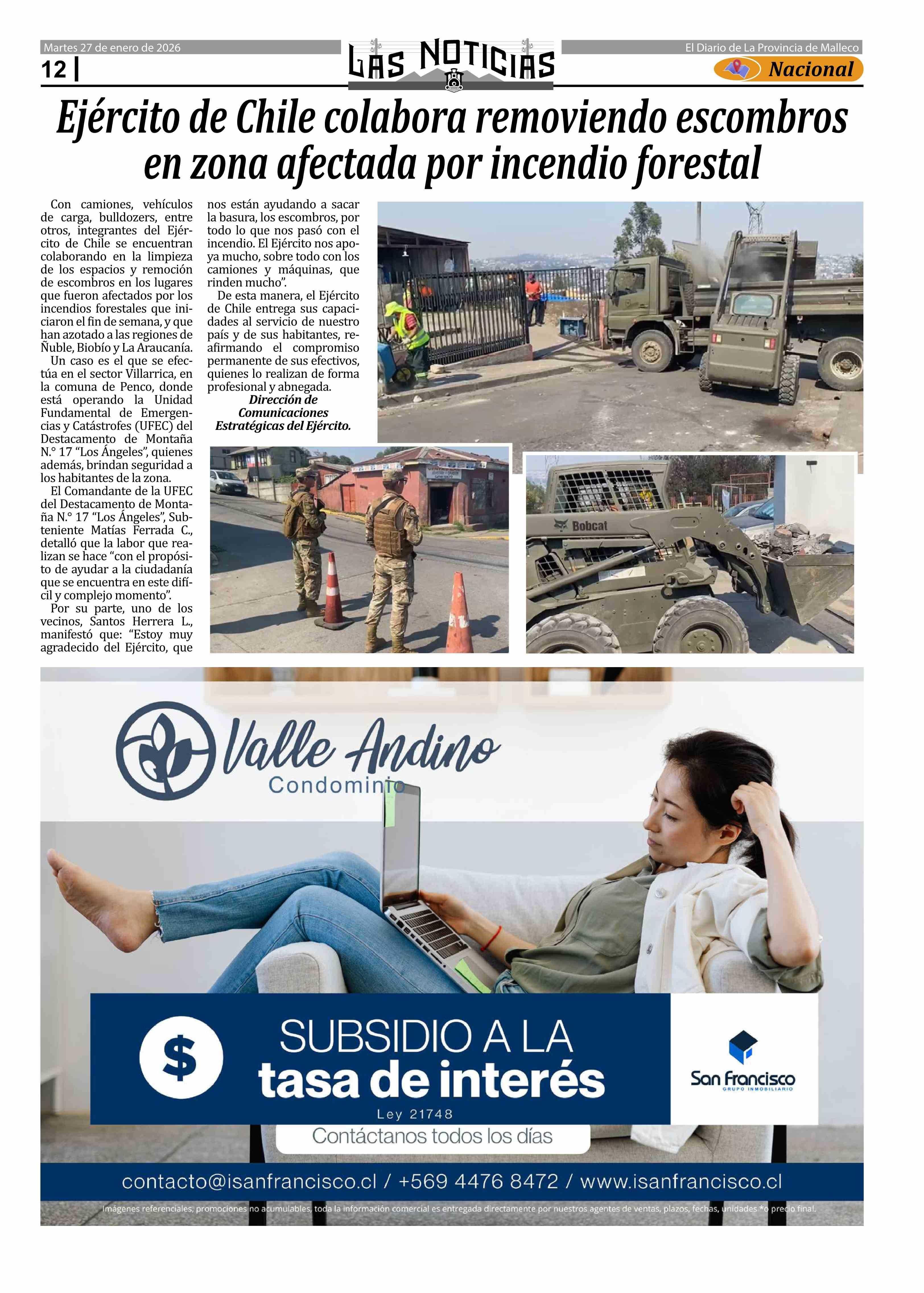 Fecha: 27-01-2026 Sector: Noticia general Región: Región de la Araucanía