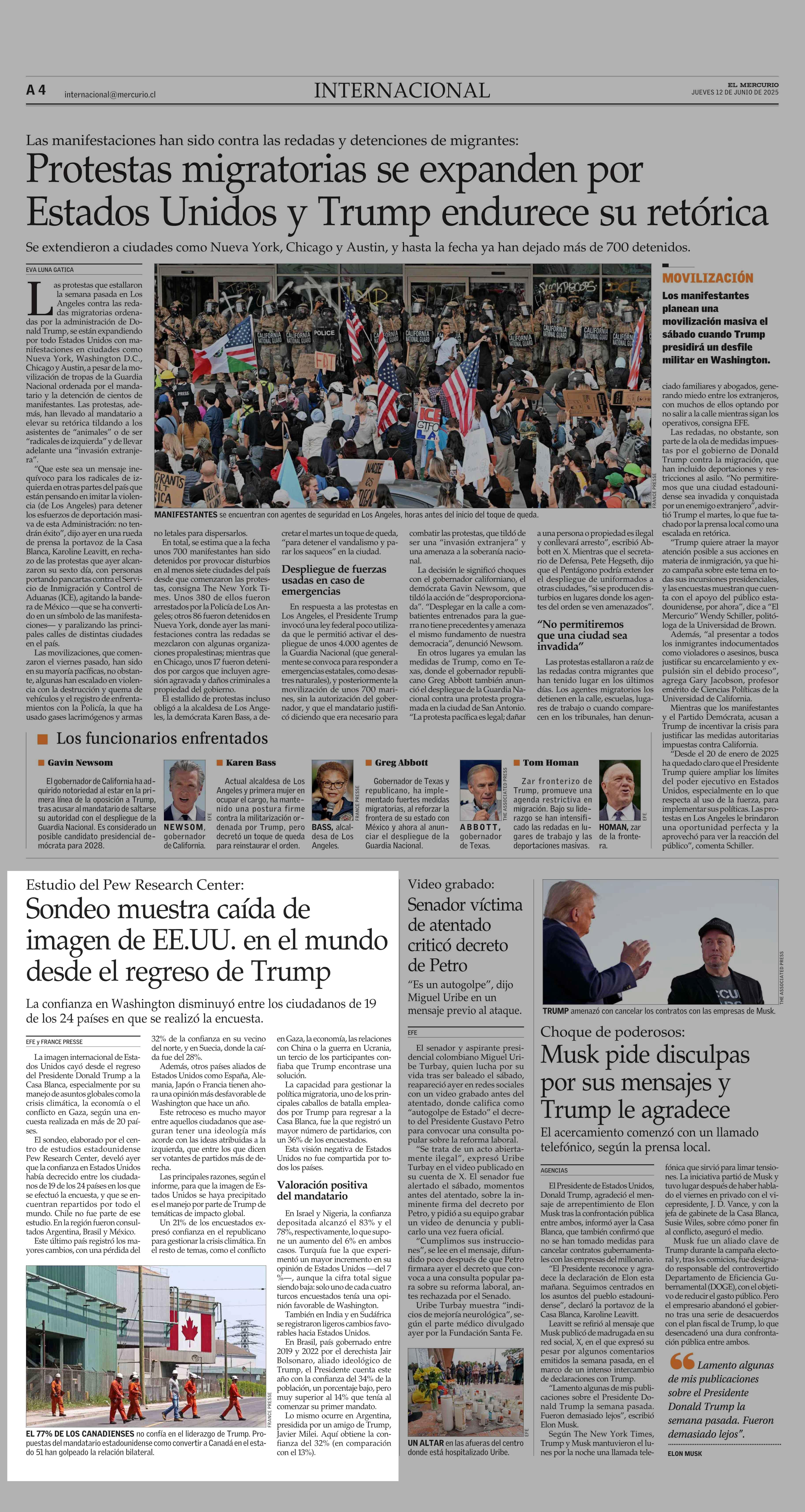 Sondeo muestra caída de imagen de EE.UU. en el mundo desde el regreso de Trump 12-06-2025 El Mercurio |