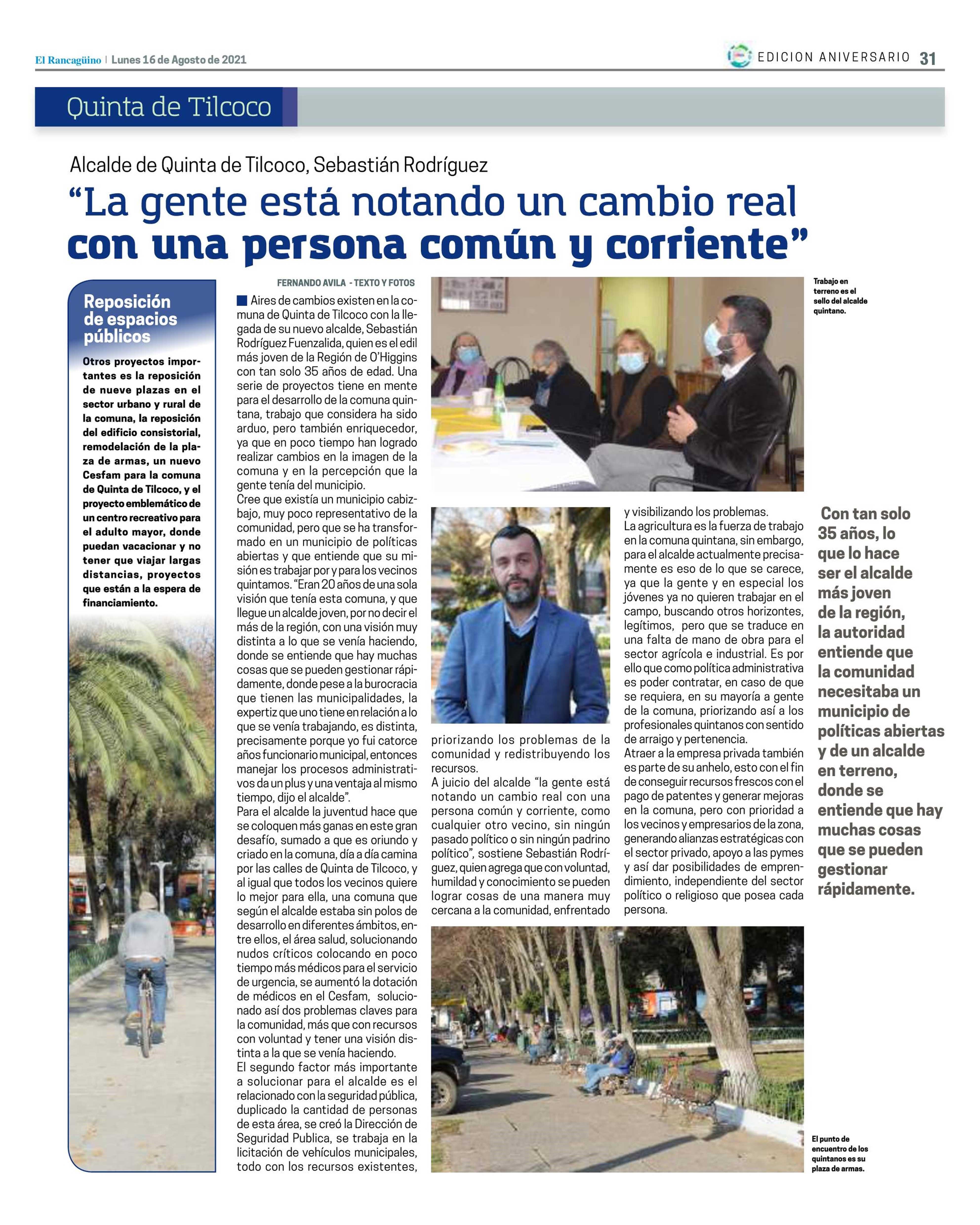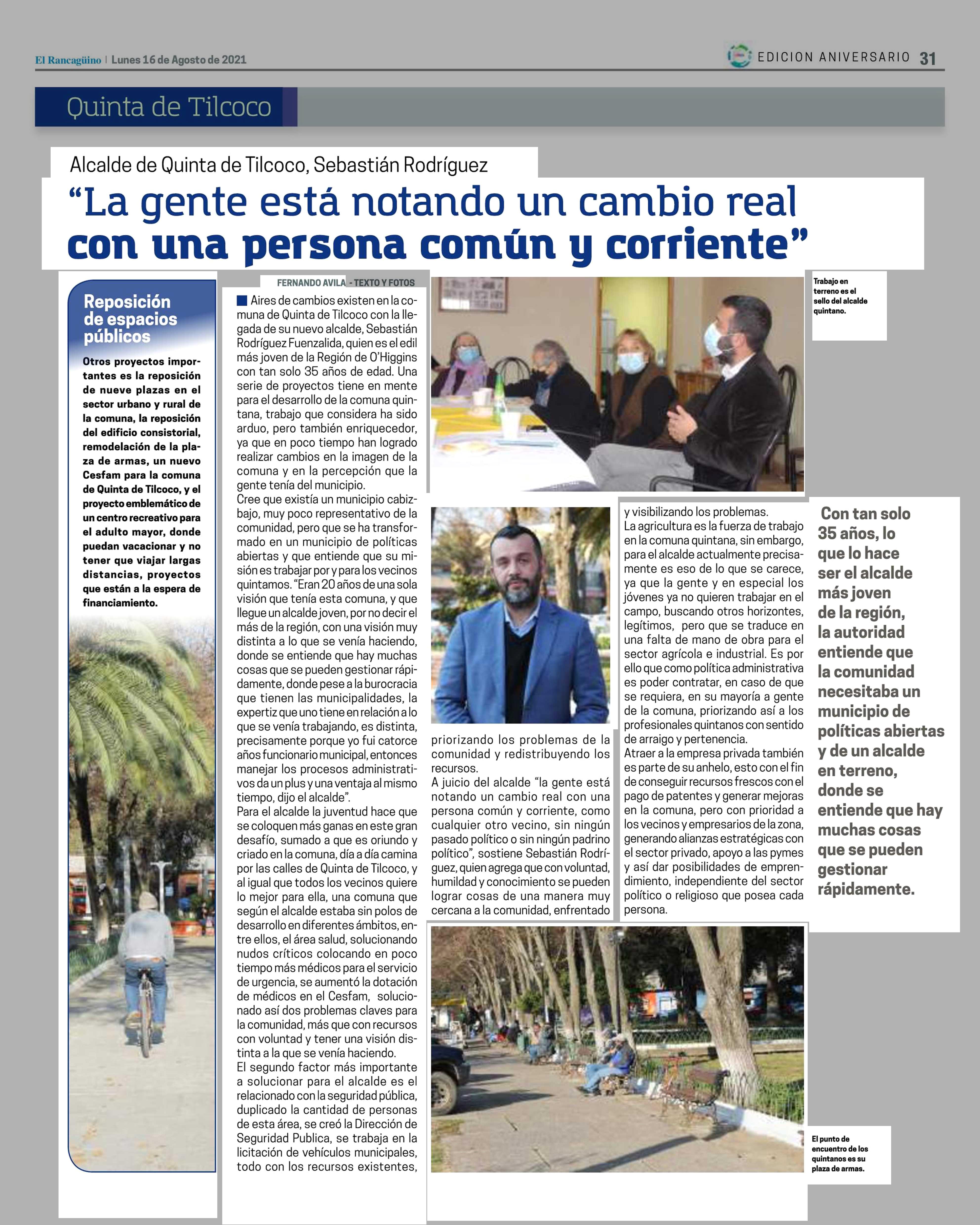 “La gente está notando un cambio real con una persona común y corriente” 16-08-2021 El Rancagüino |