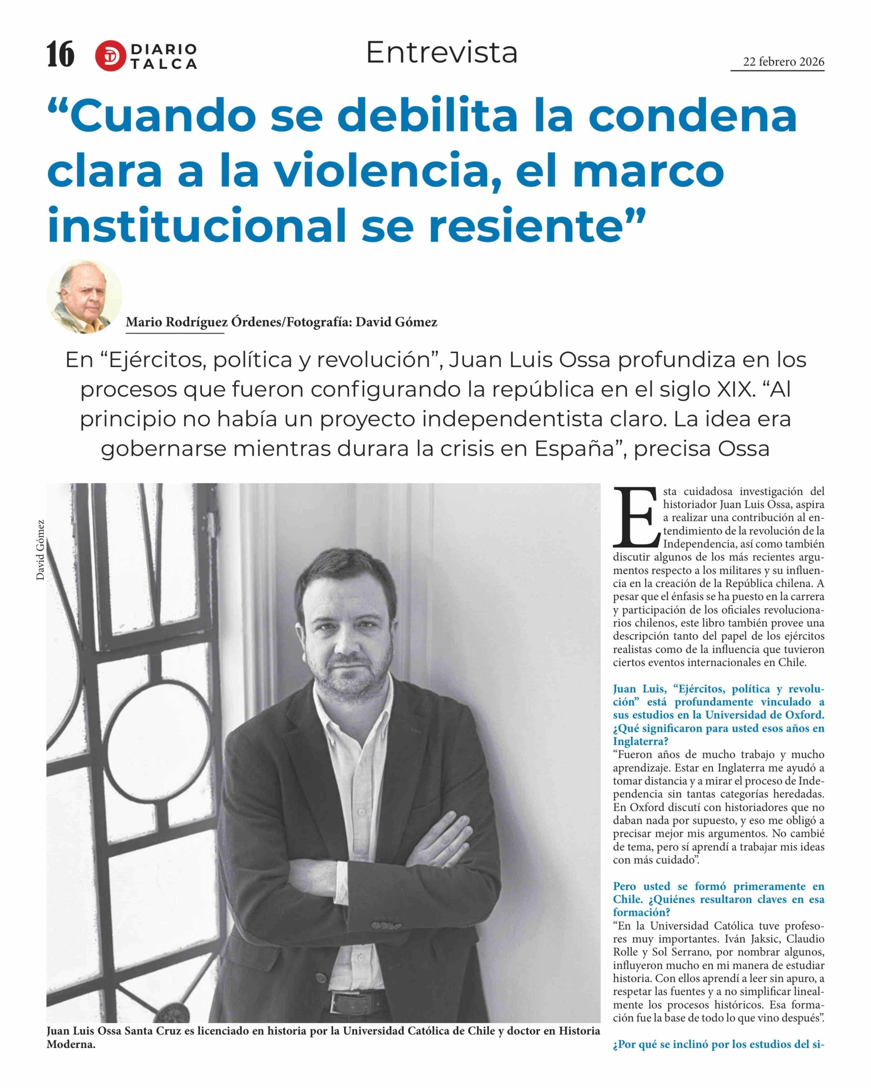 "Cuando se debilita la condena clara a la violencia, el marco institucional se resiente" 22-02-2026 Diario Talca |
