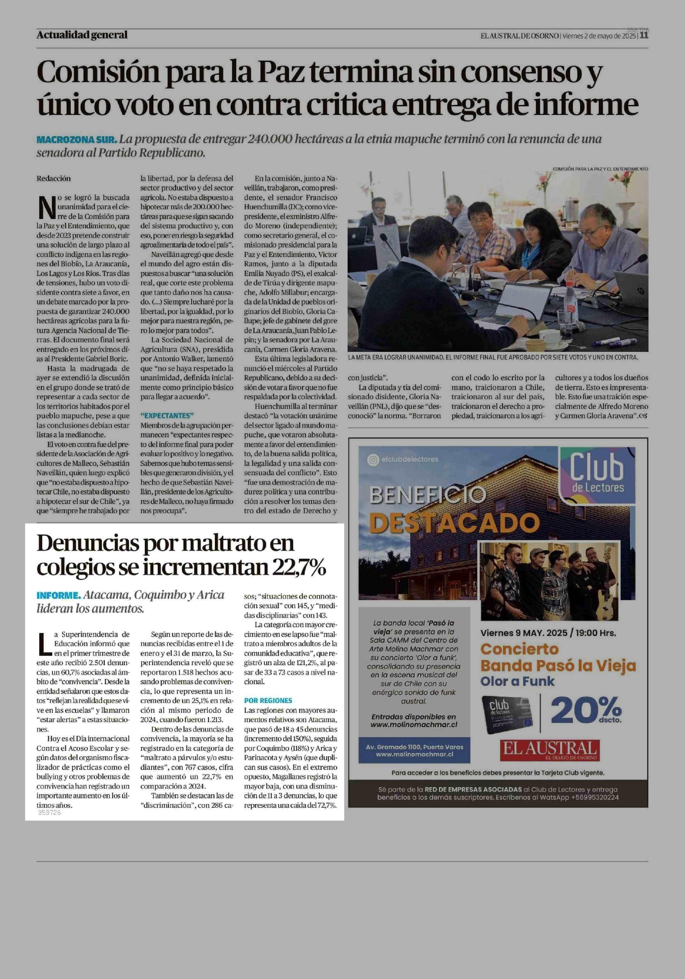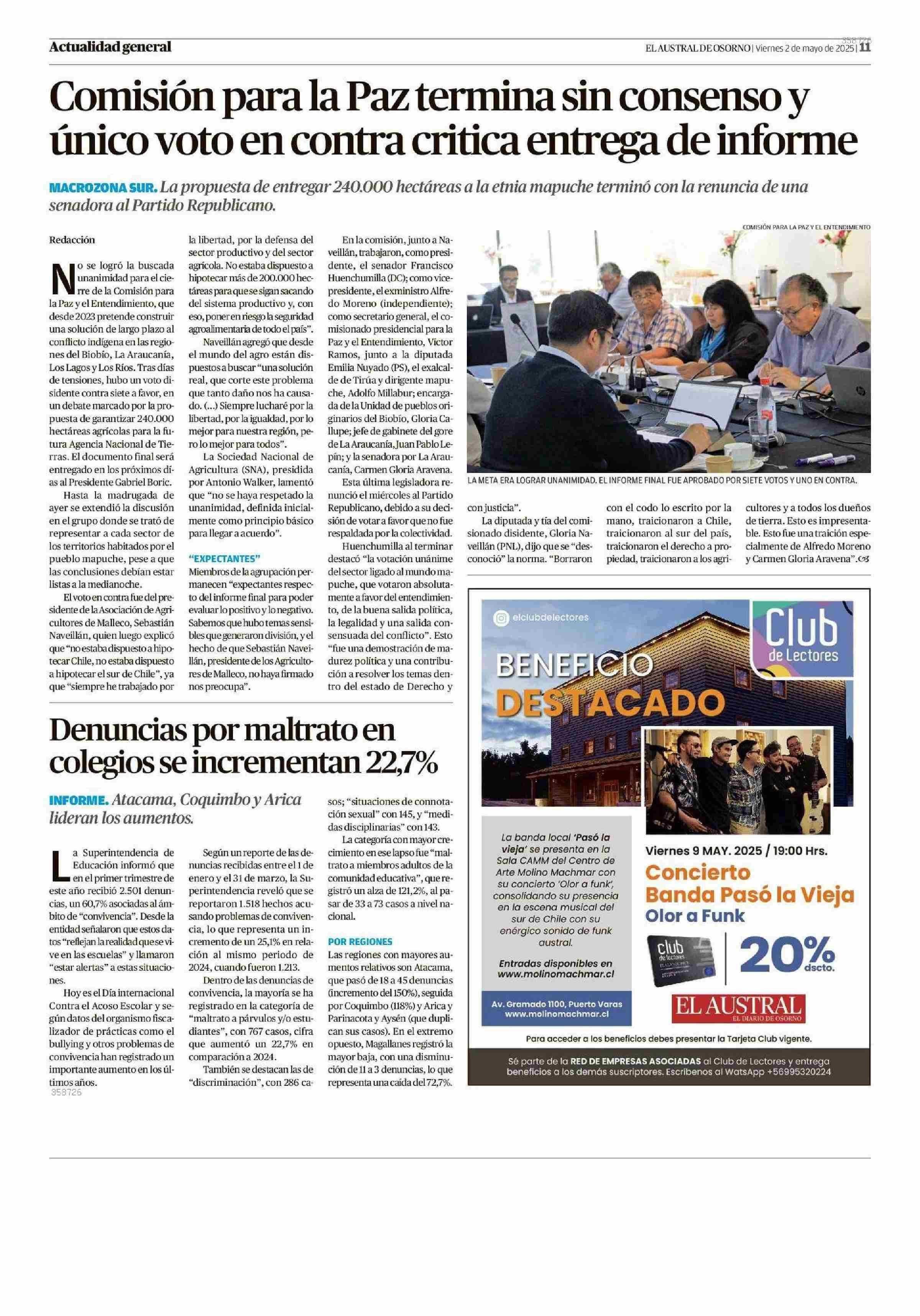Denuncias por maltrato en colegios se incrementan 22,7% 02-05-2025 El Austral de Osorno |