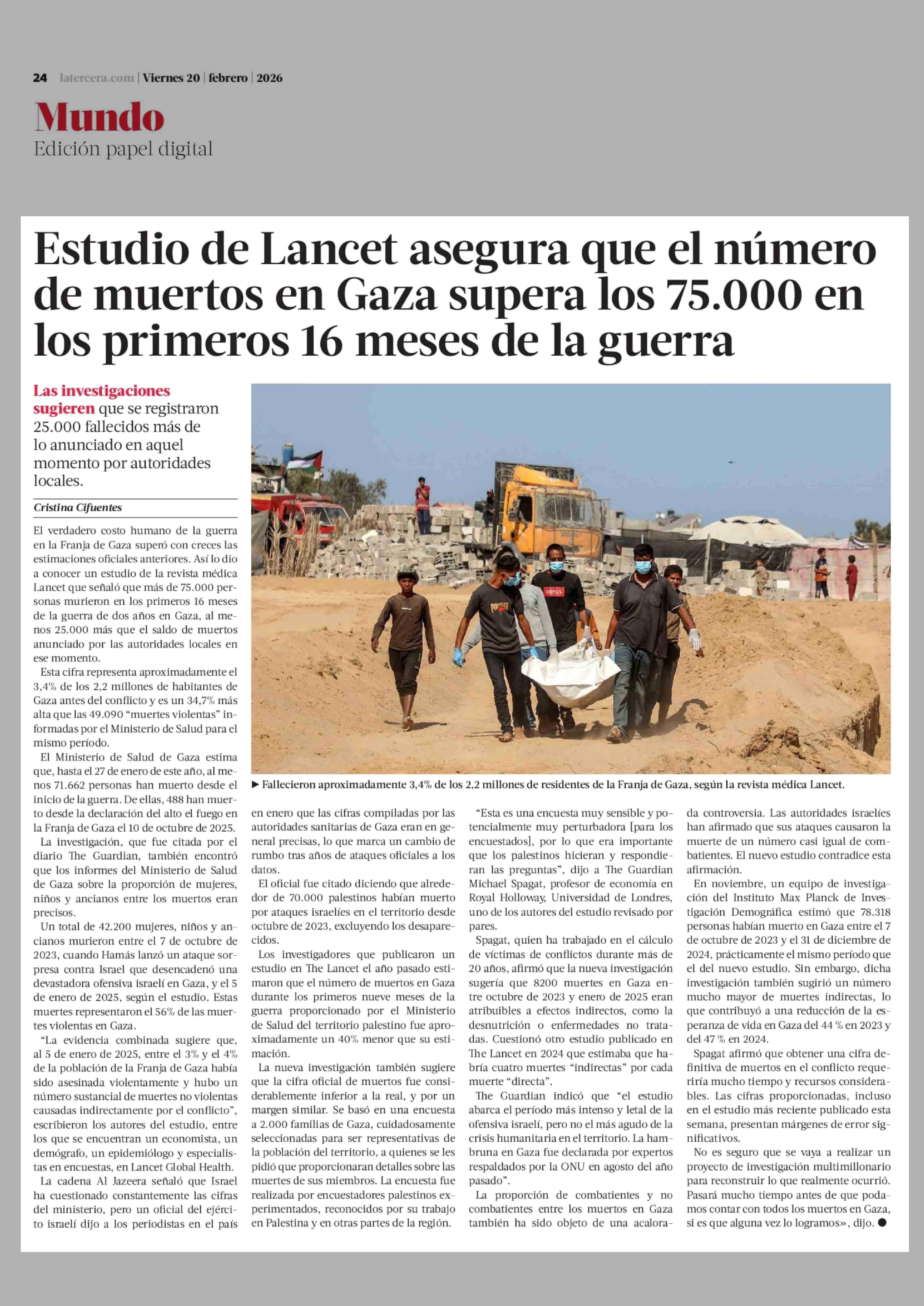Título: Estudio de Lancet asegura que el número de muertos en Gaza supera los 75.000 en los primeros 16 meses de la guerra