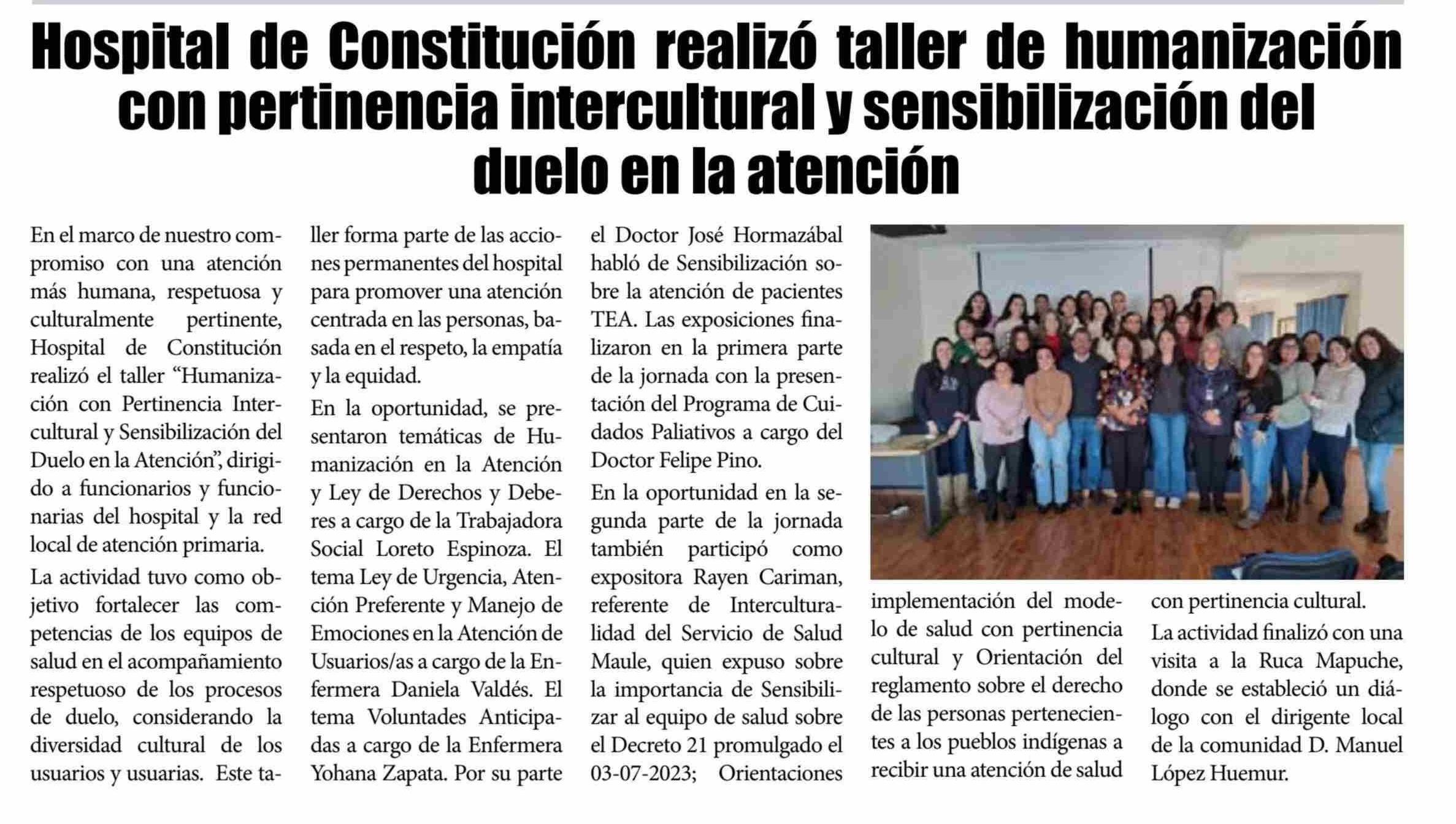 | Título: | Hospital de Constitución realizó taller de humanización con pertinencia intercultural y sensibilización del duelo en la atención |