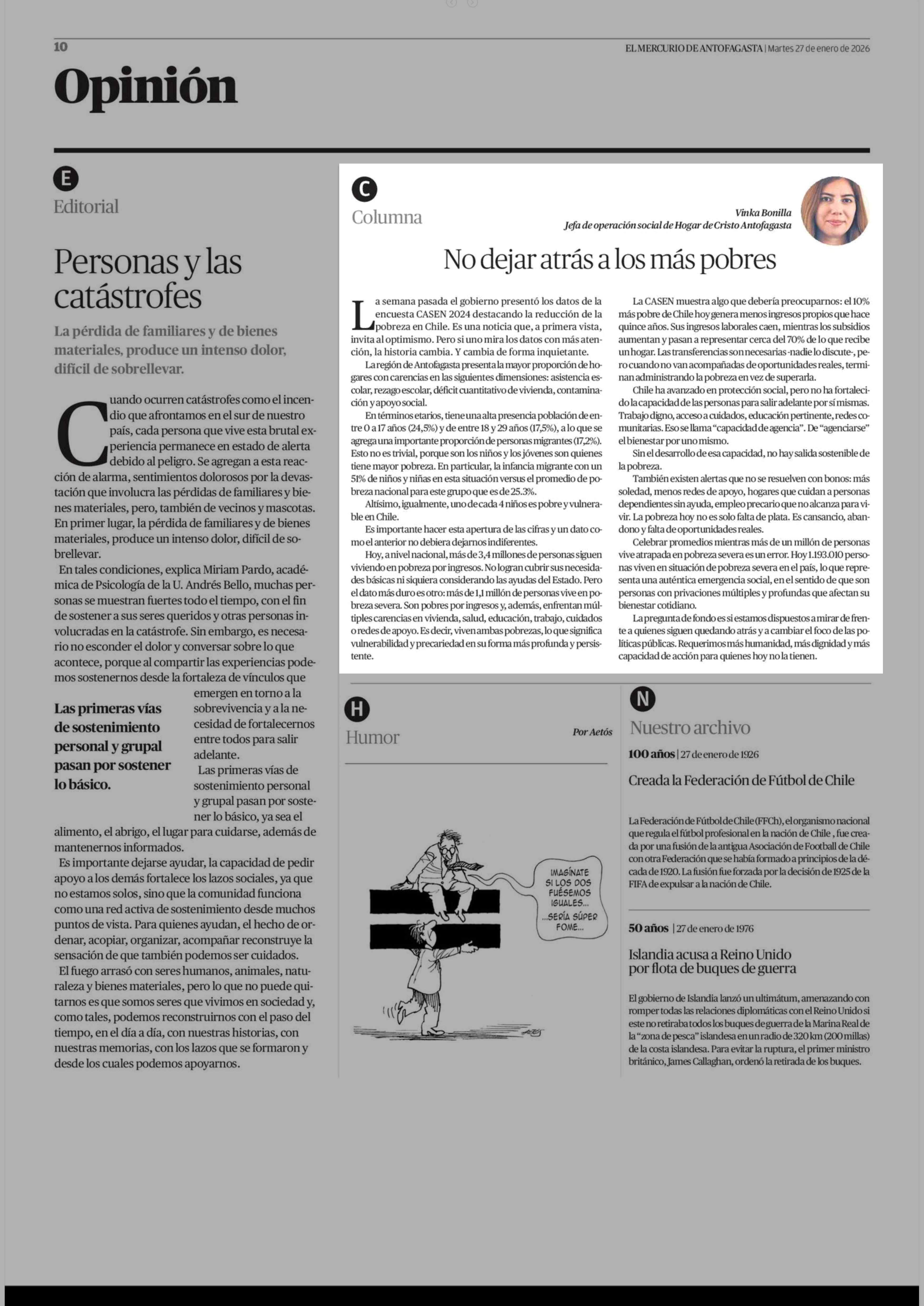 Columnas de Opinión: No dejar atrás a los más pobres 27-01-2026 El Mercurio de Antofagasta |