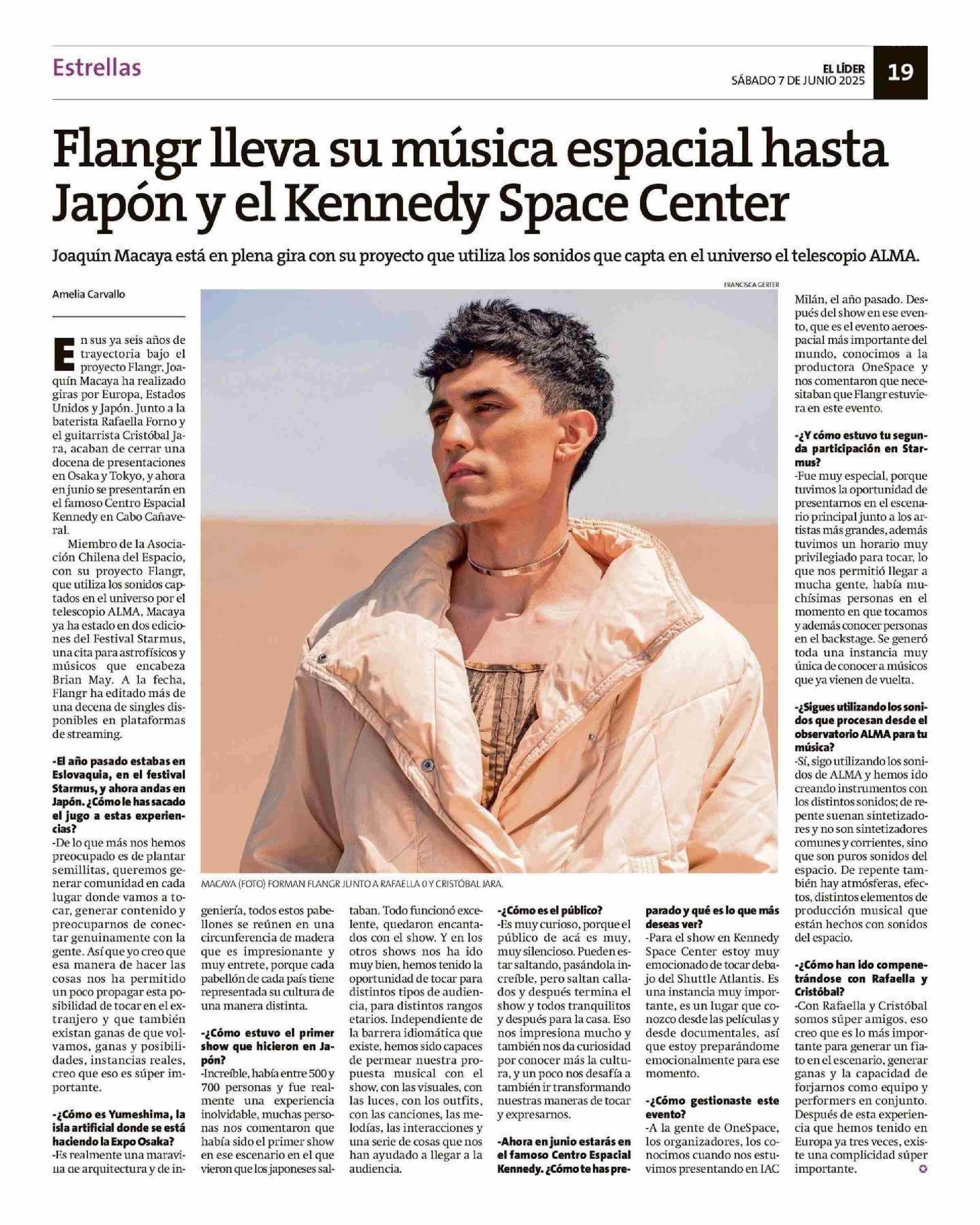 Flangr lleva su música espacial hasta Japón y el Kennedy Space Center 07-06-2025 El Líder |