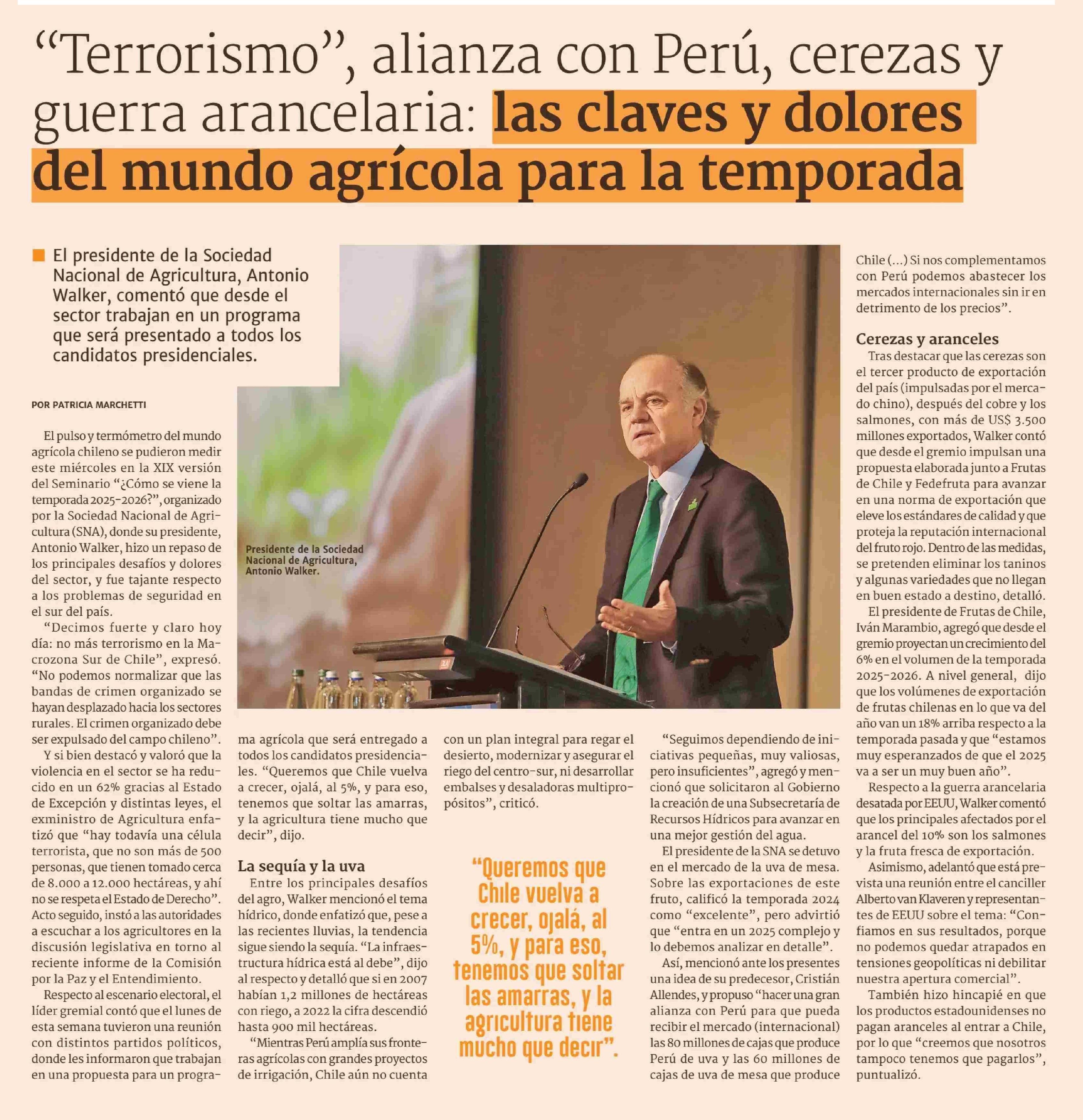 “Terrorismo”, alianza con Perú, cerezas y guerra arancelaria: las claves y dolores del mundo agricola para la temporada 12-06-2025 Diario Financiero |