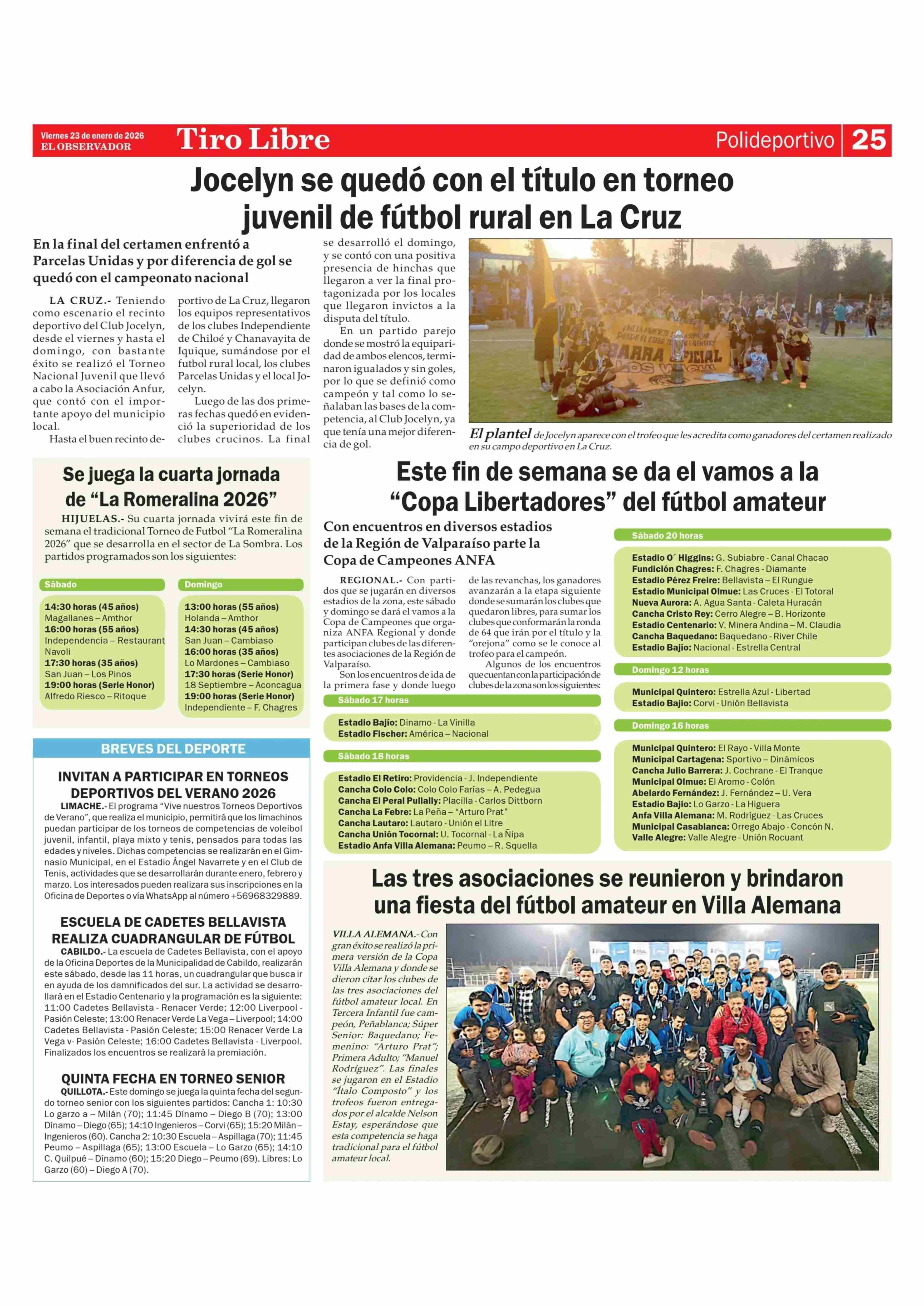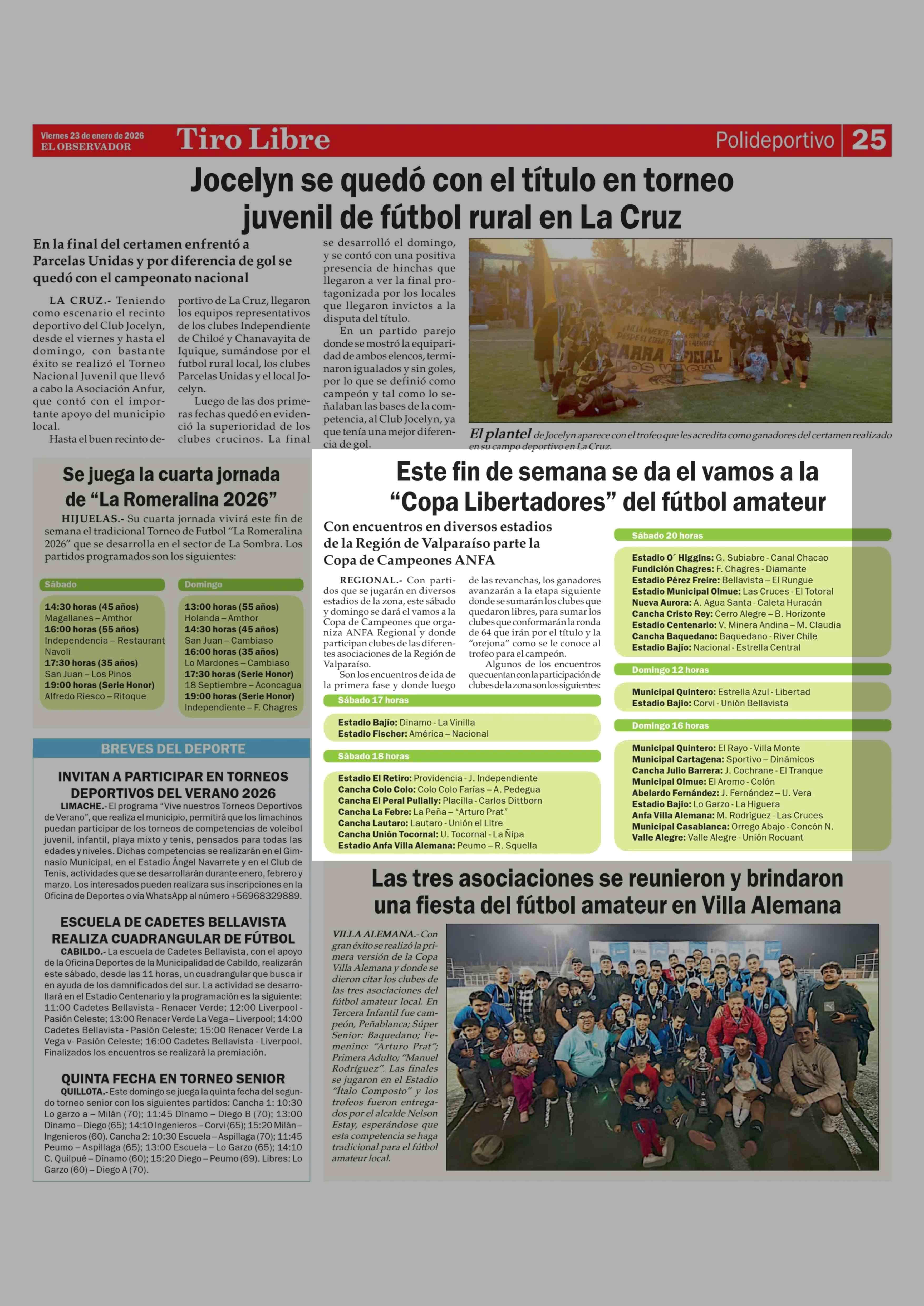 Este fin de semana se da el vamos a la "Copa Libertadores" del fútbol amateur 23-01-2026 El Observador |