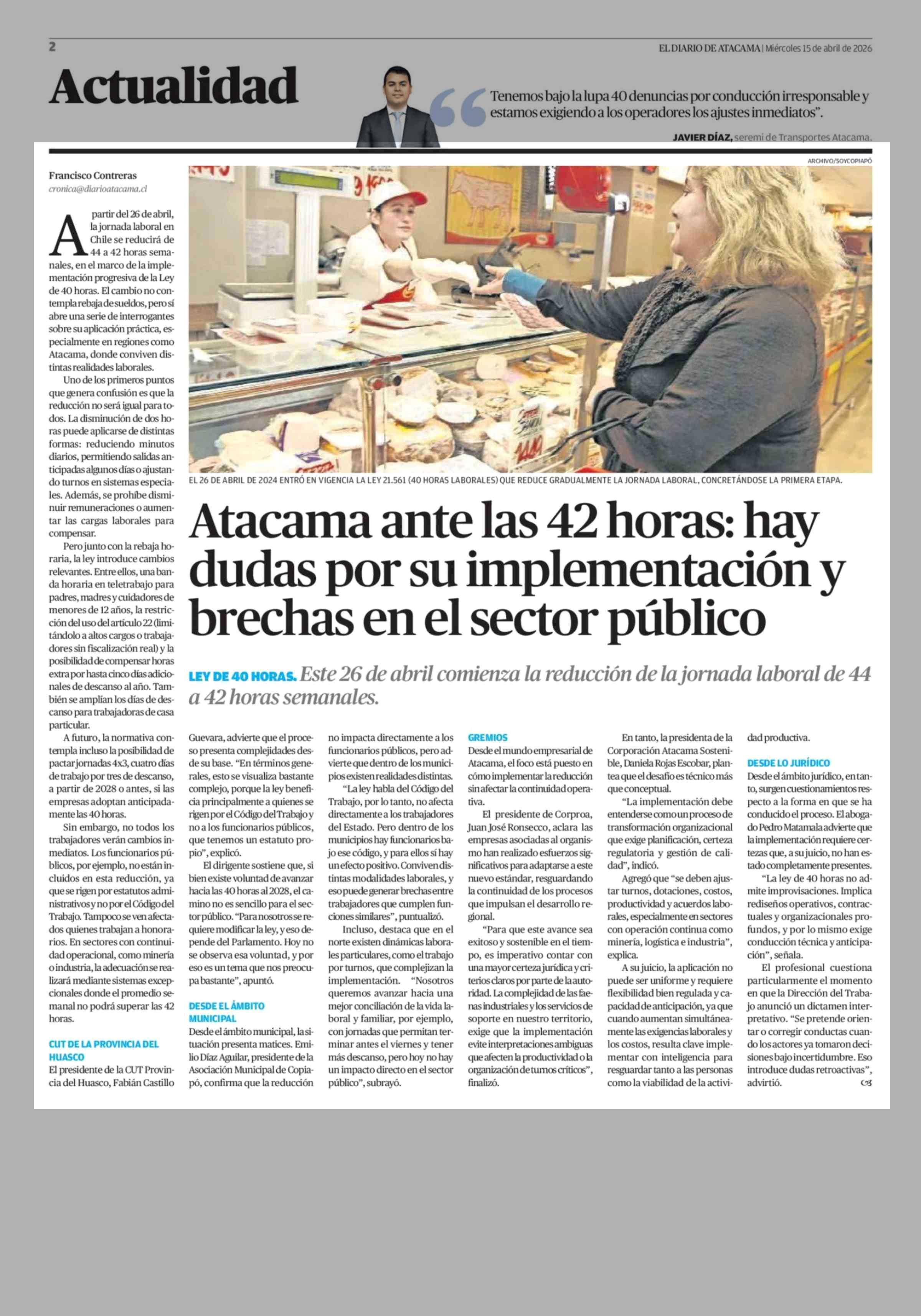 Atacama ante las 42 horas: hay dudas por su implementación y brechas en el sector público 15-04-2026 El Diario de Atacama |