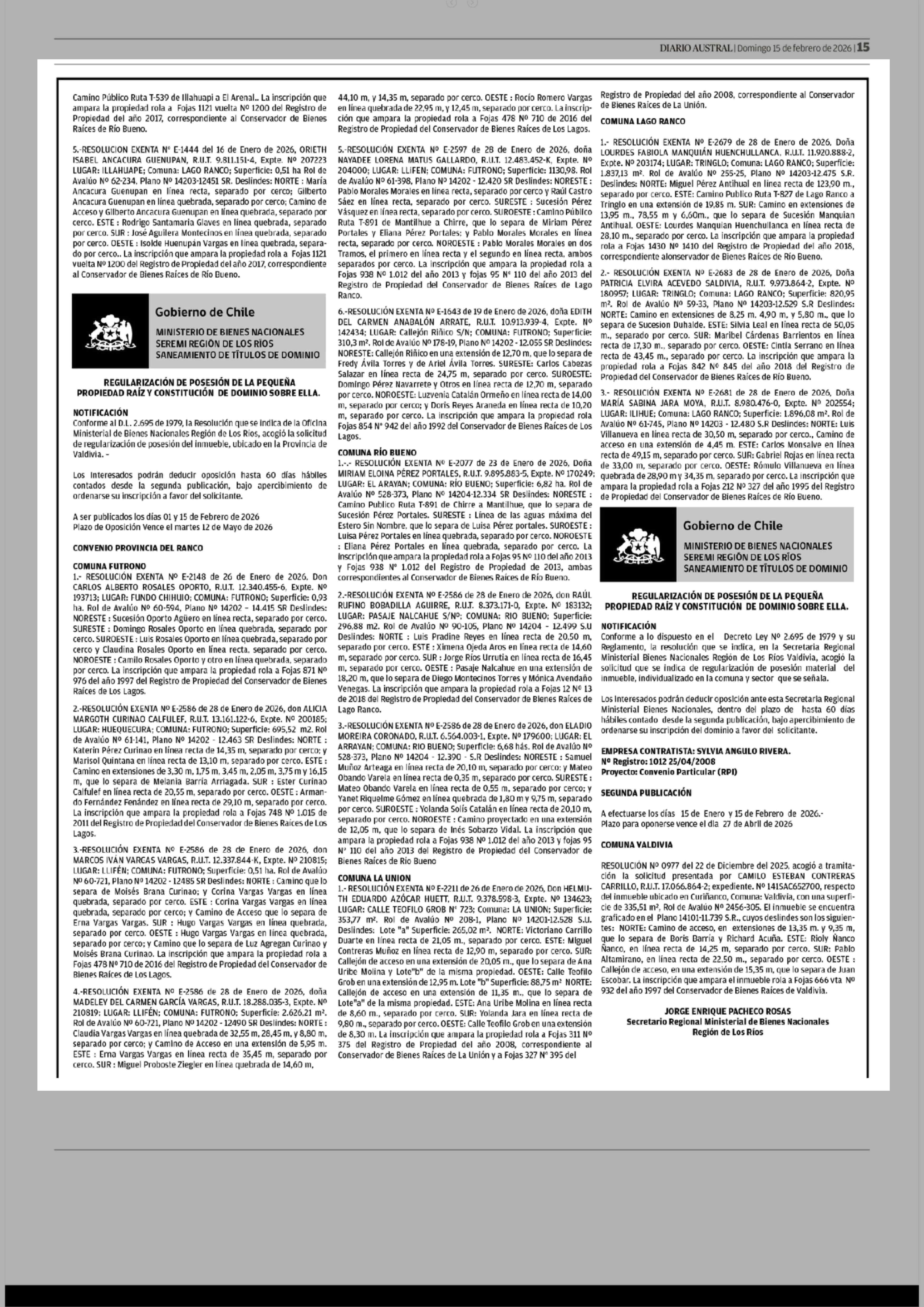 PUBLICIDAD 15-02-2026 Diario Austral Región de Los Ríos |