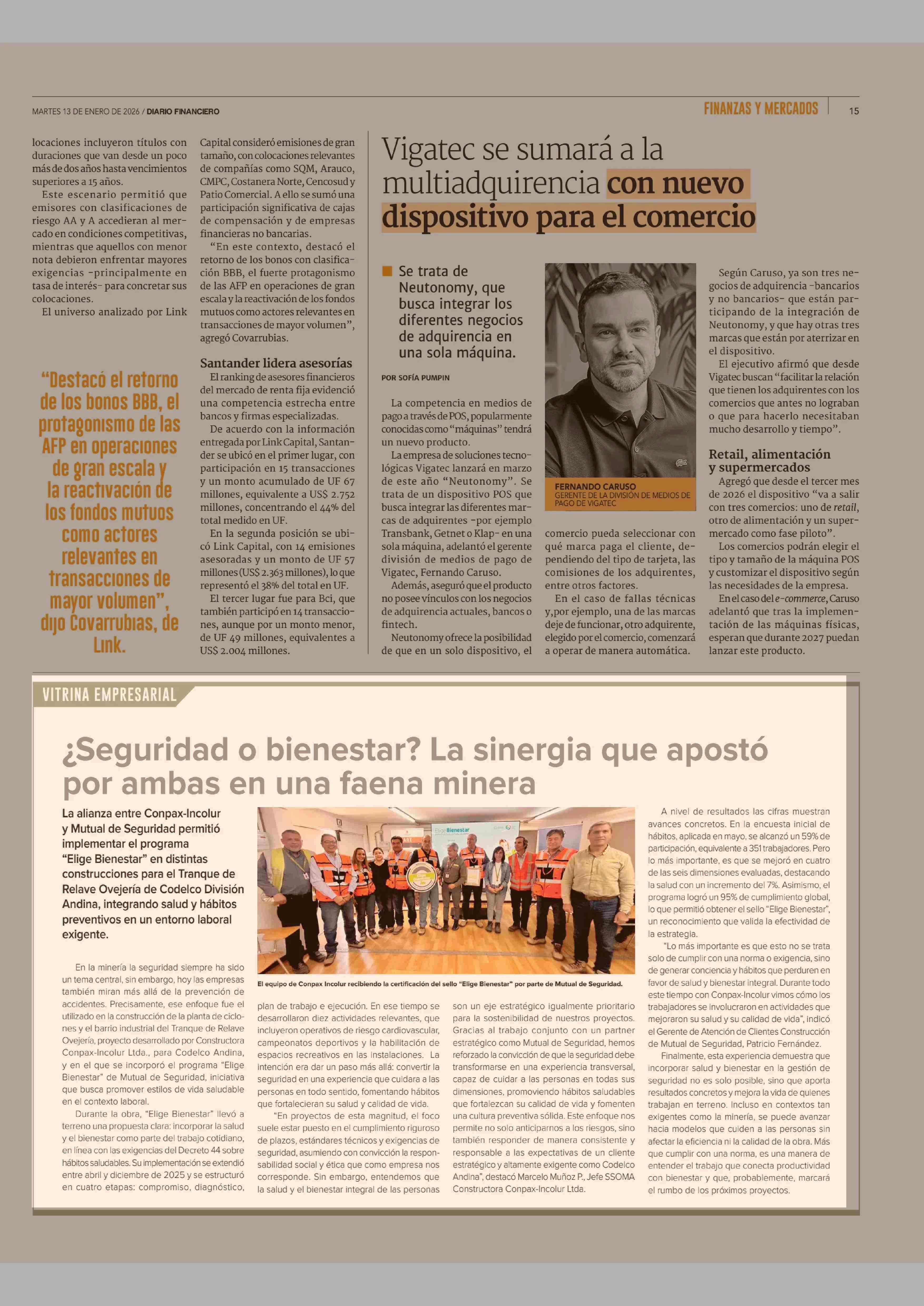 ¿Seguridad o bienestar? La sinergia que apostó por ambas en una faena minera 13-01-2026 Diario Financiero |