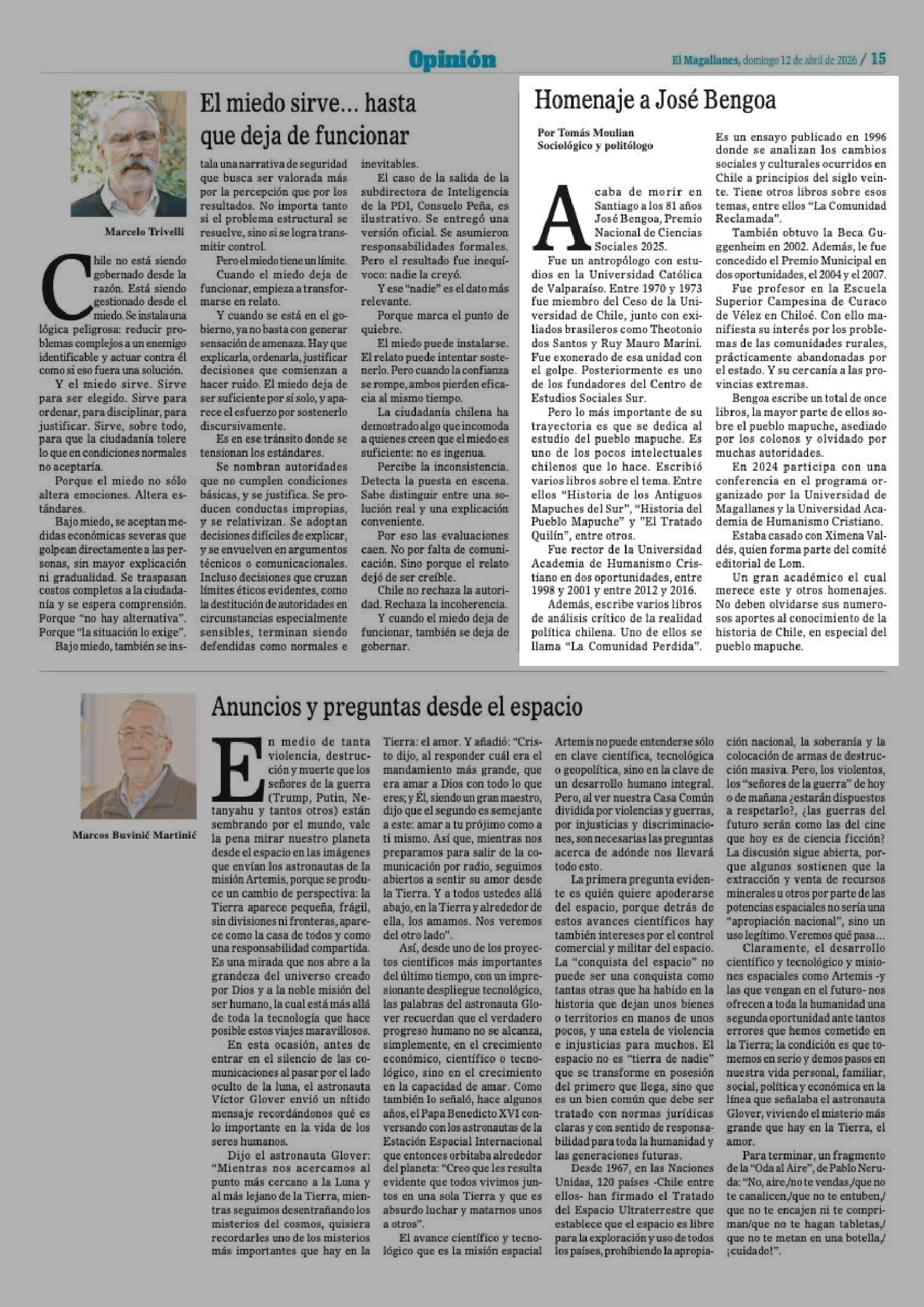 Fecha: 12-04-2026 Sector: Columnas de Opinión Región: Región de Magallanes y de la Antártica Chilena