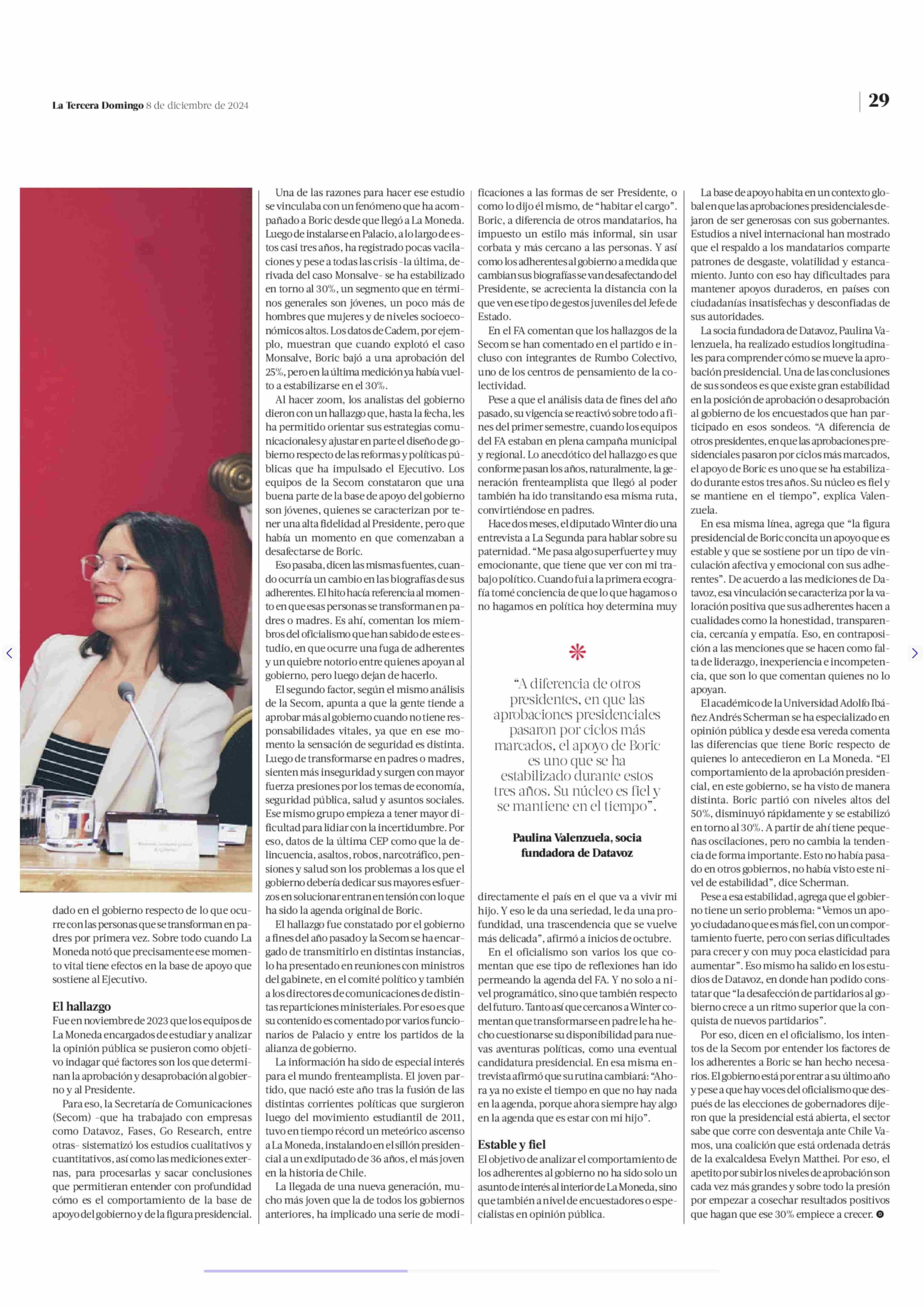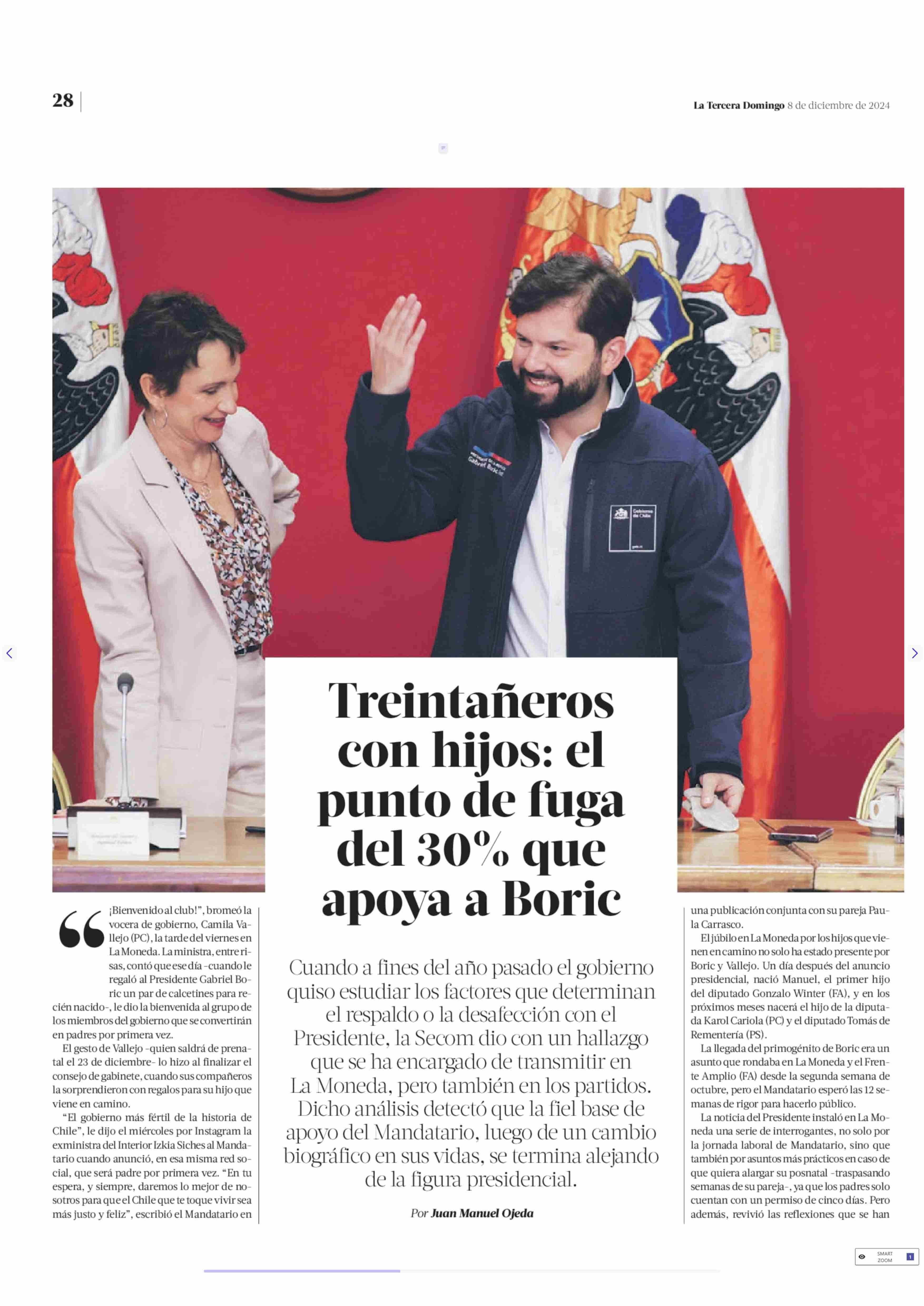 Treintañeros con hijos: el punto de fuga del 30% que apoya a Boric 08-12-2024 La Tercera |